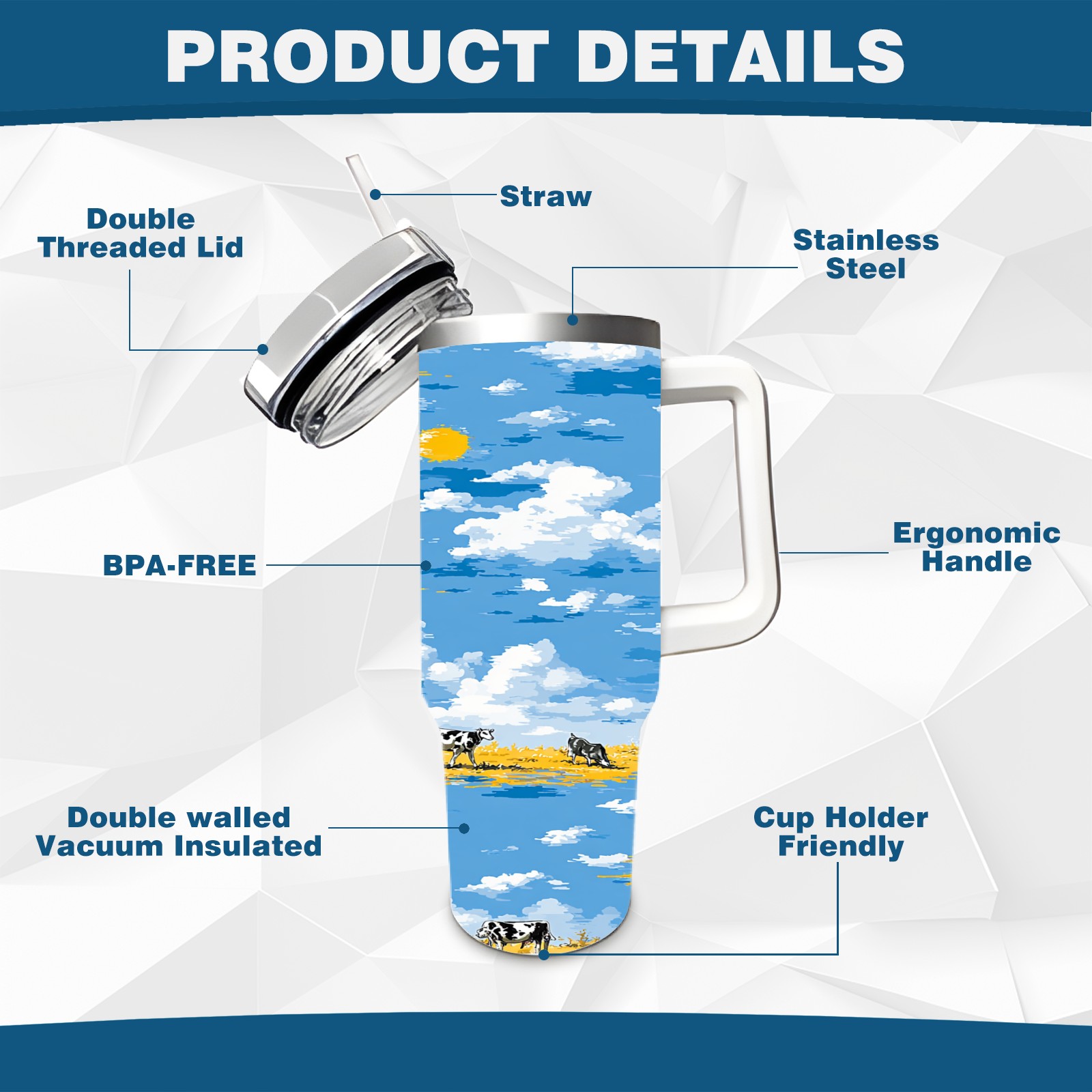 40 унций полностью напечатанный автомобильный стакан Blue Sky Boat