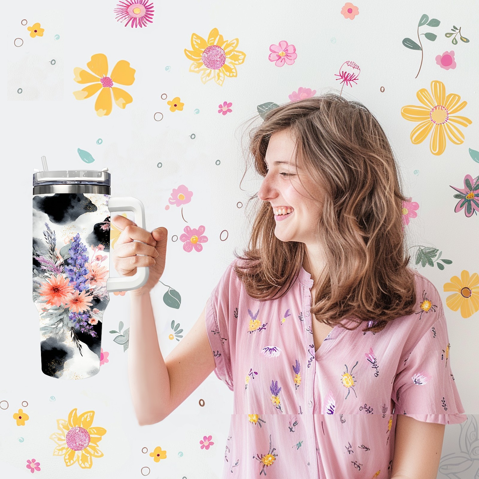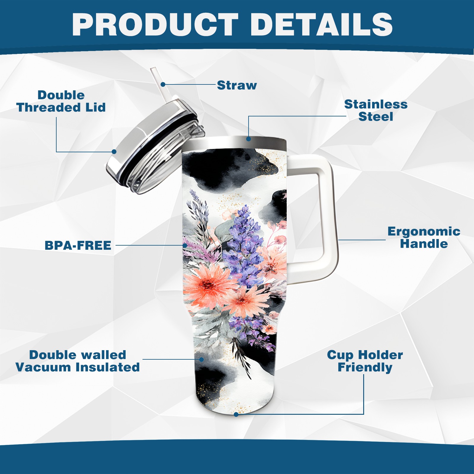 40 унций полностью напечатанный автомобильный стакан CatFlower Black