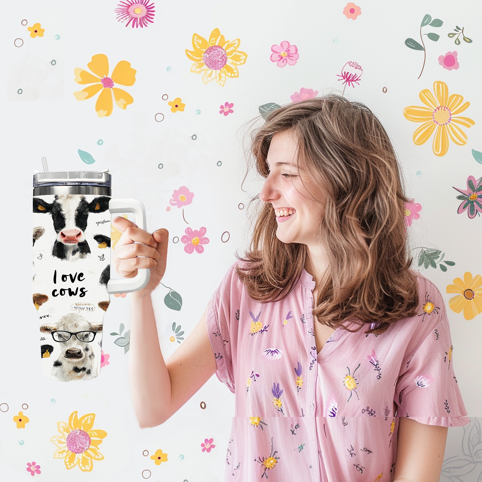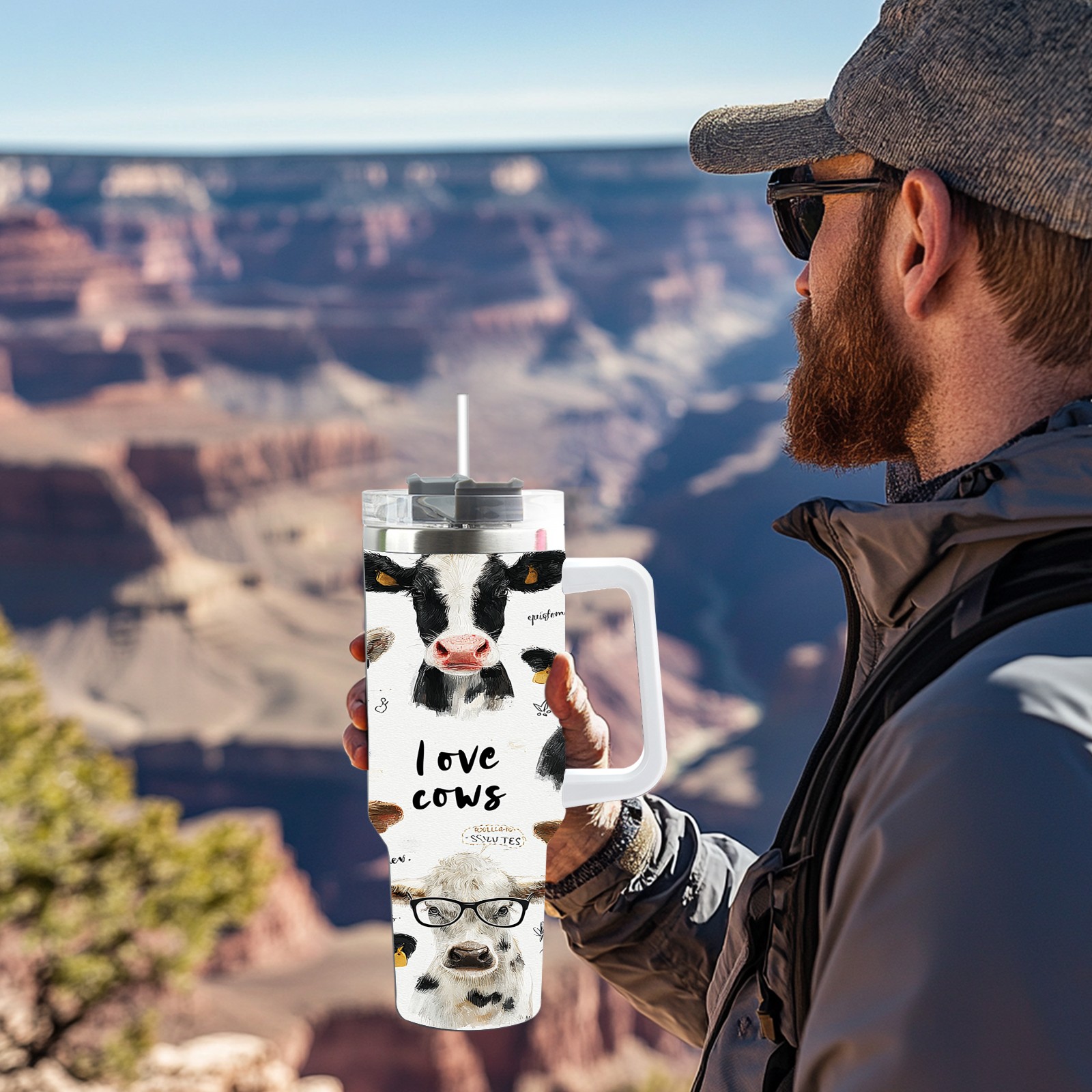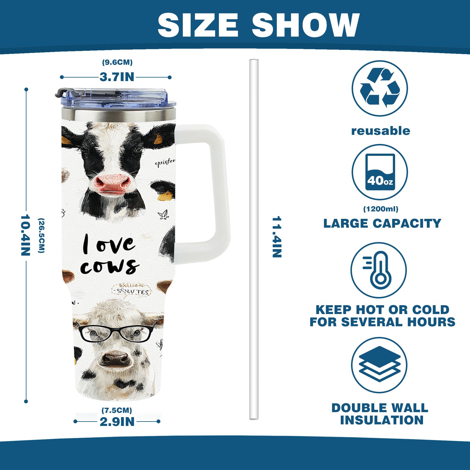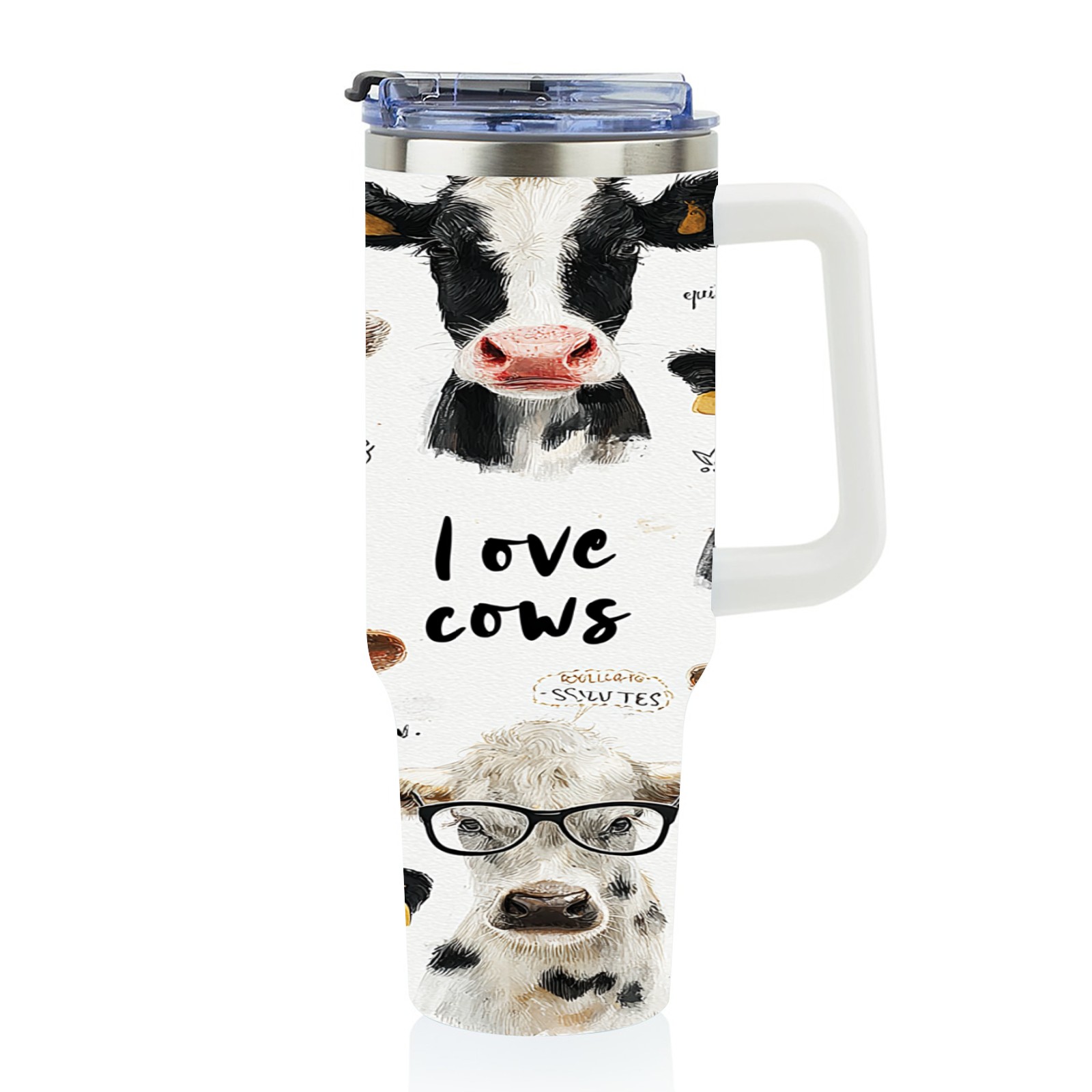40 унций полностью напечатанный автомобильный стакан Cute Cow White