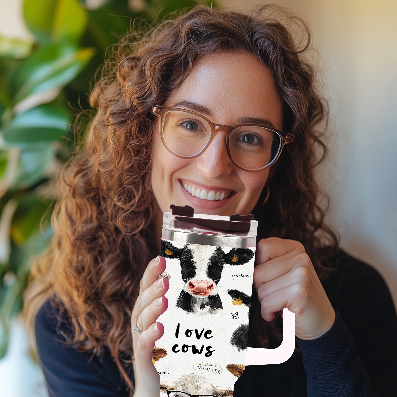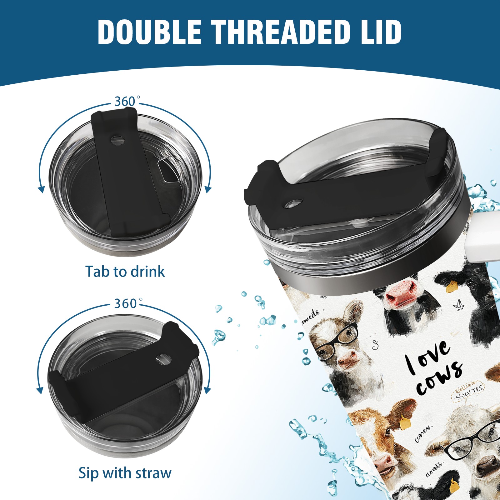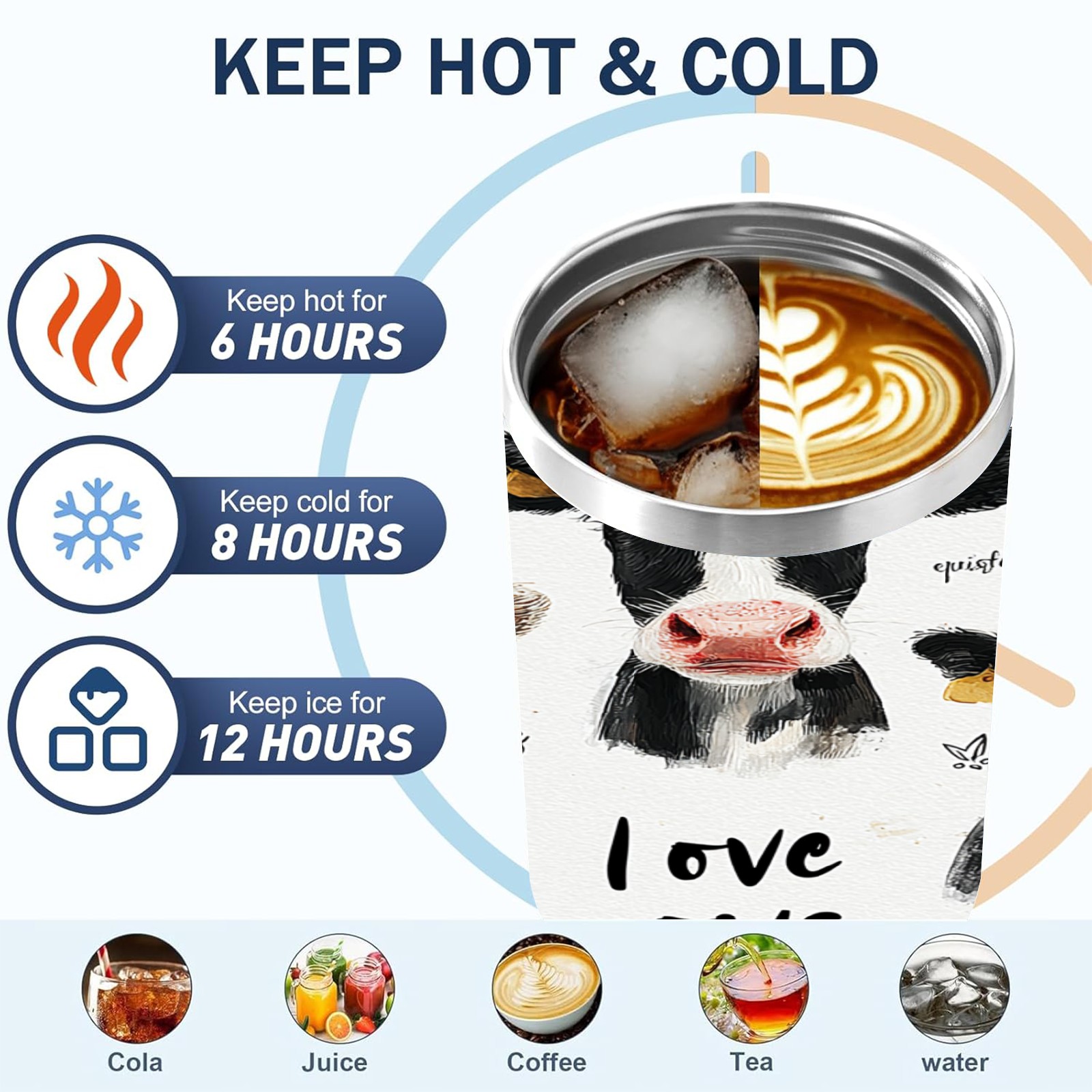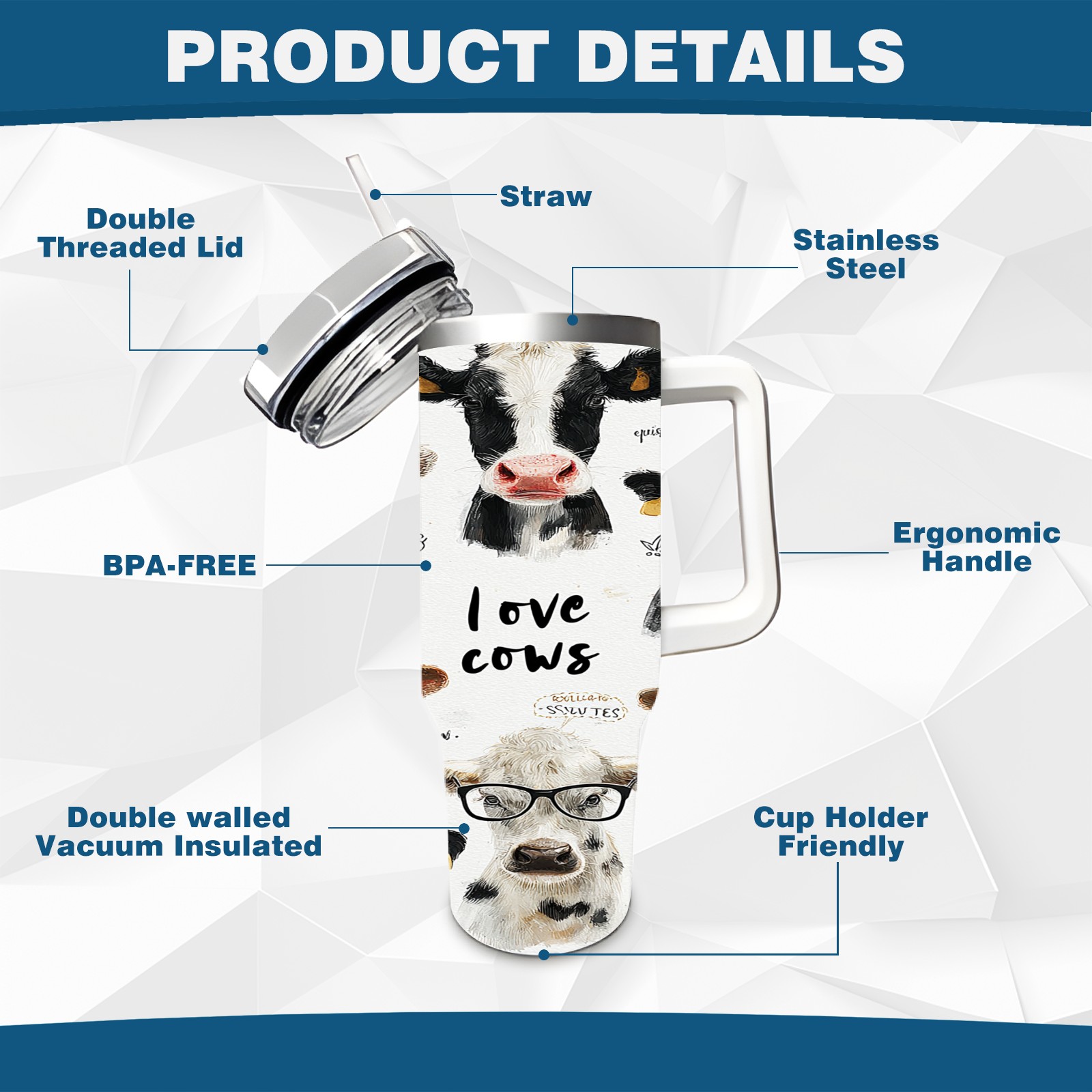 40 унций полностью напечатанный автомобильный стакан Cute Cow White