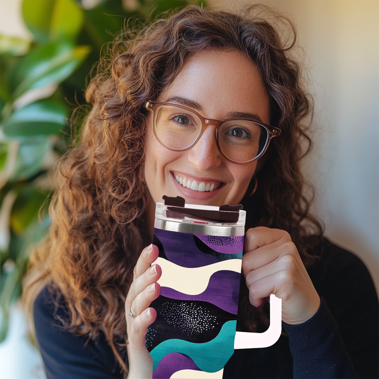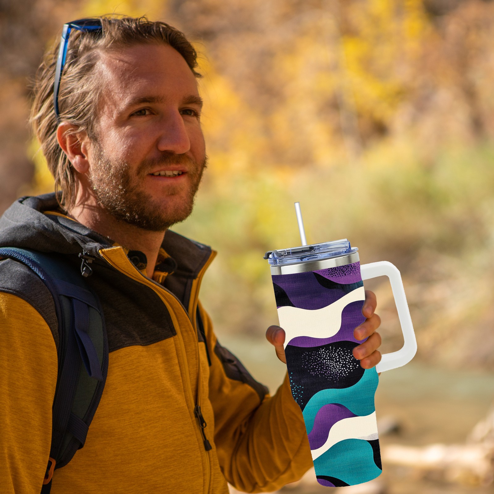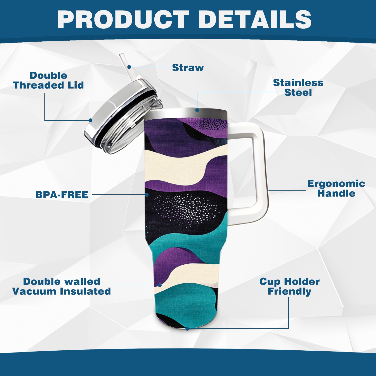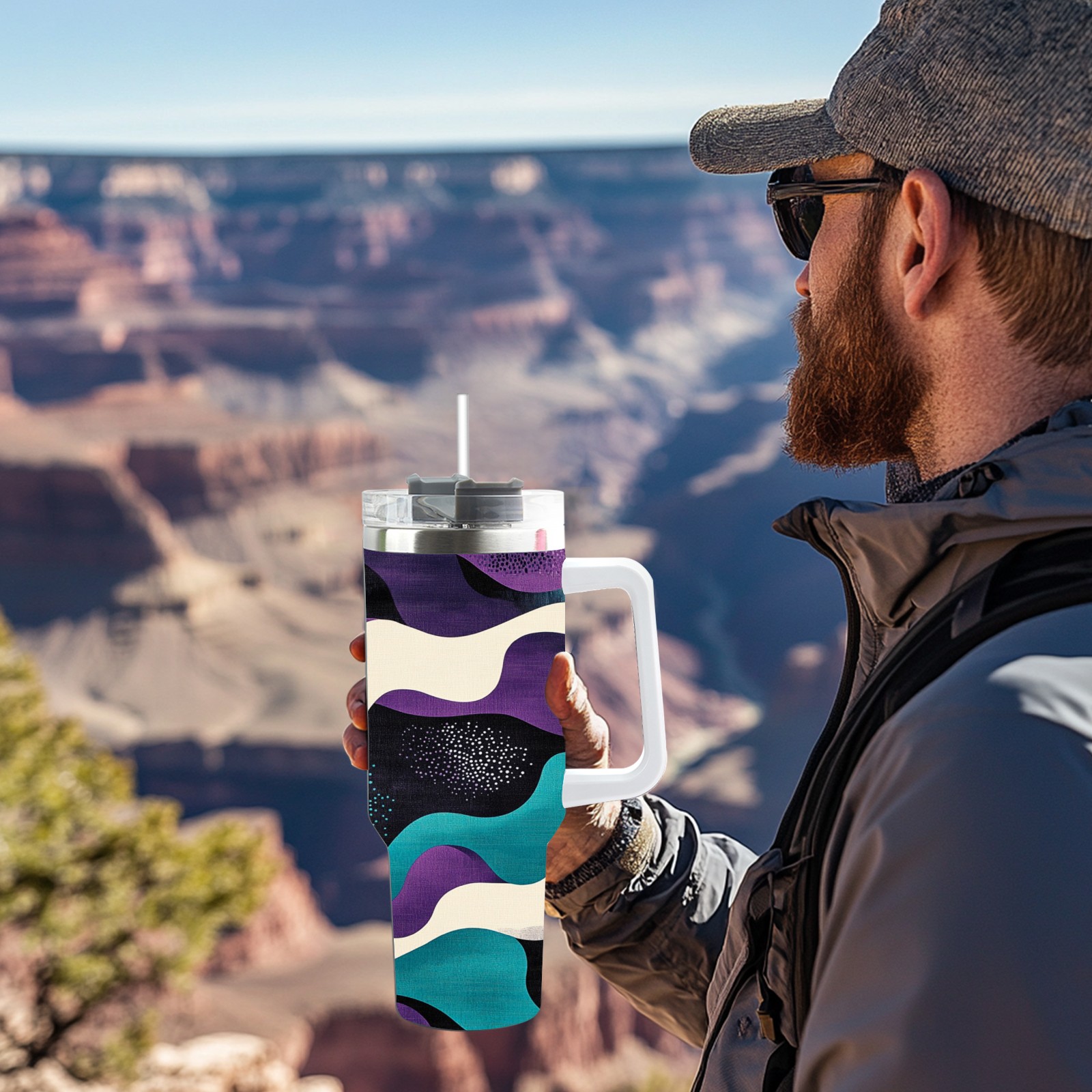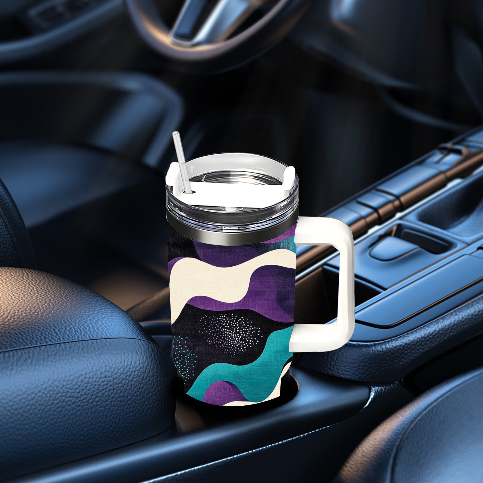 40 унций полностью напечатанный автомобильный стакан Purple Wave Pattern