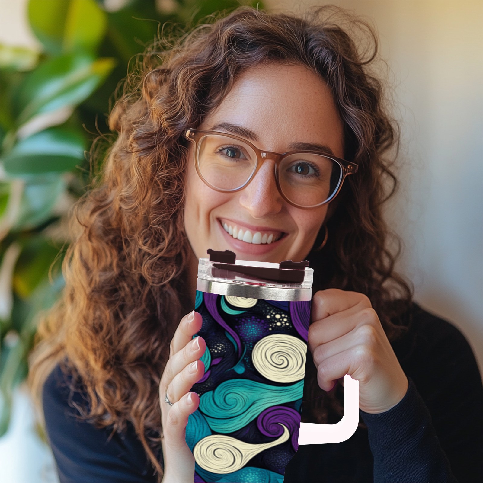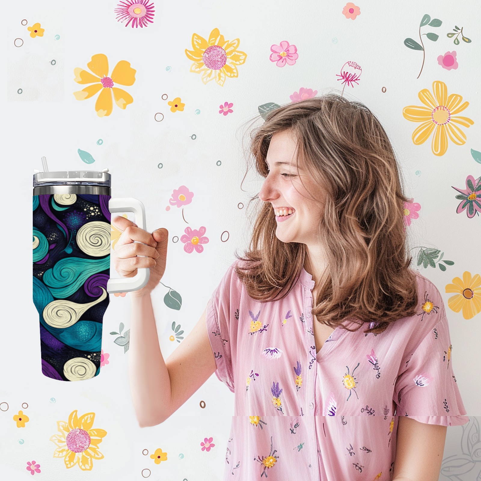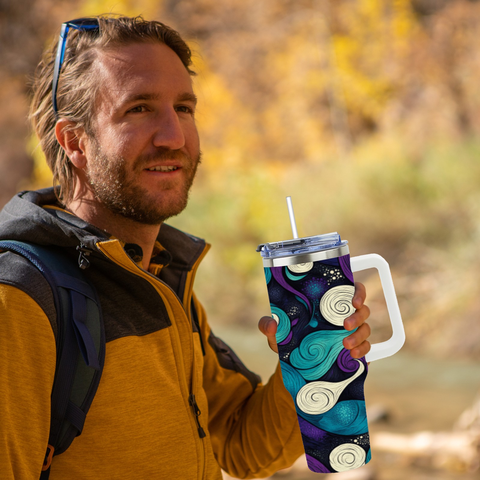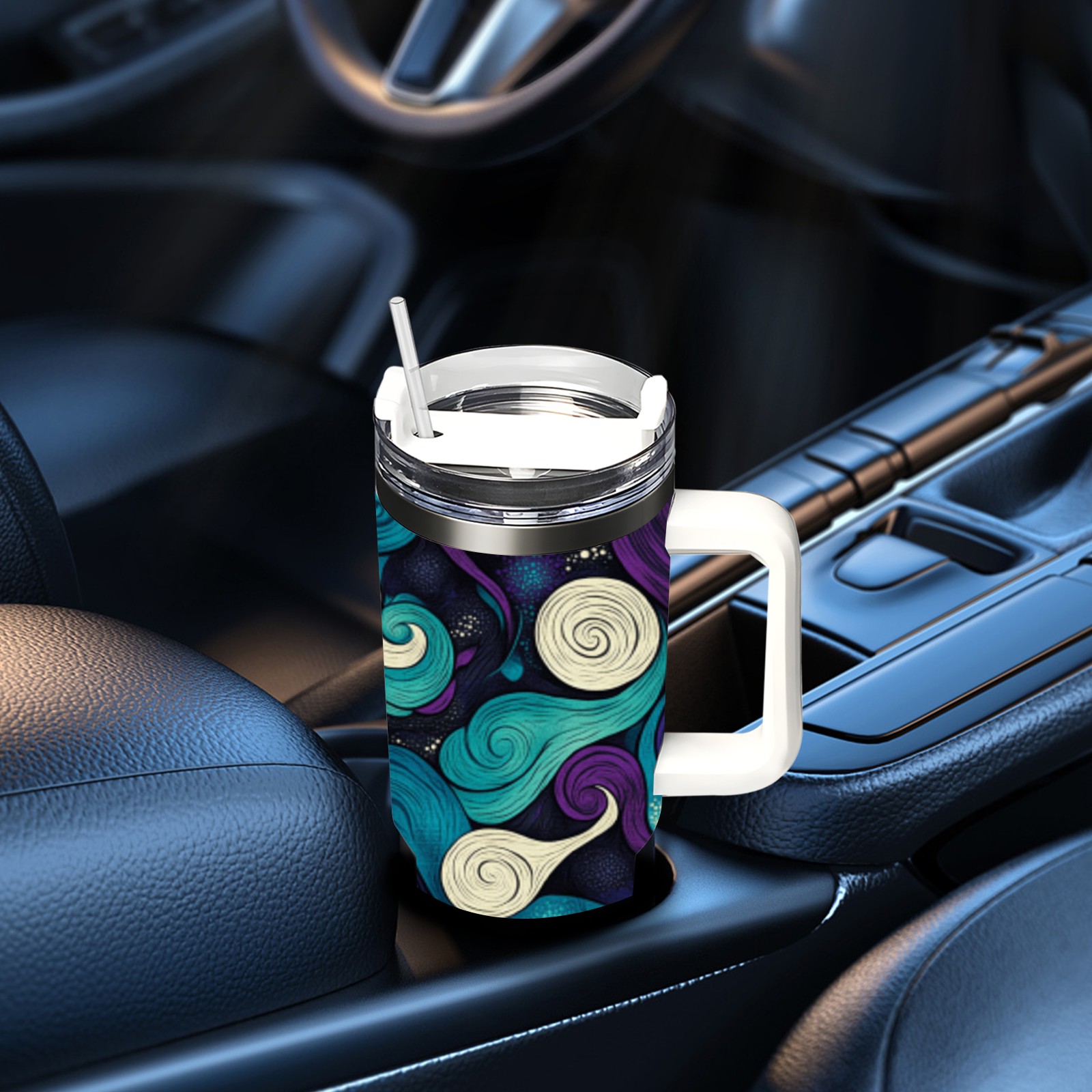40 унций полностью напечатанный автомобильный стакан Purple Cloud Pattern