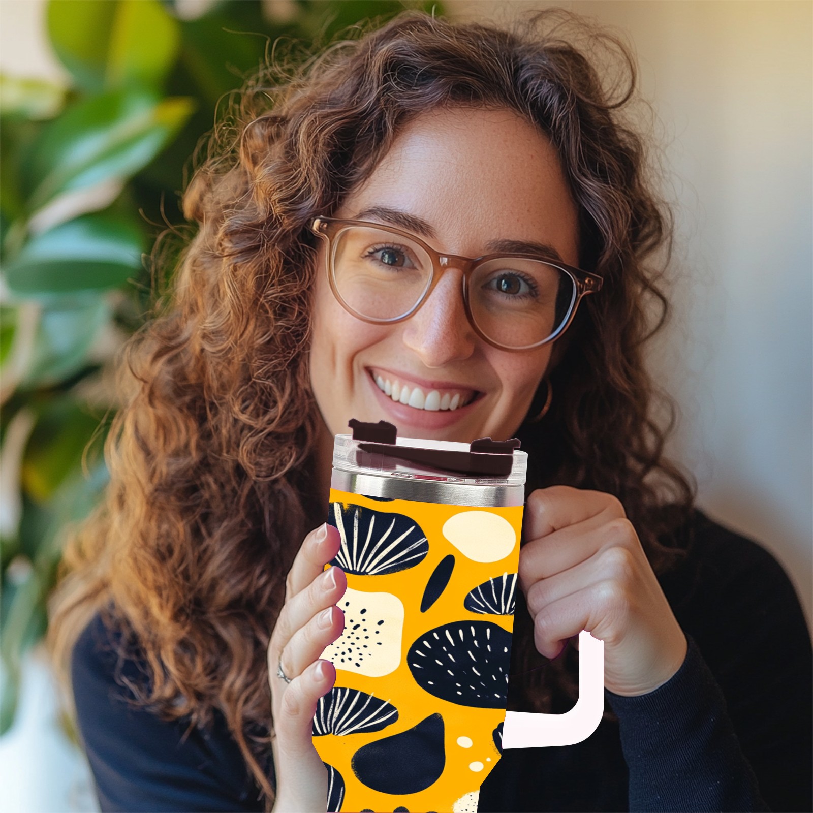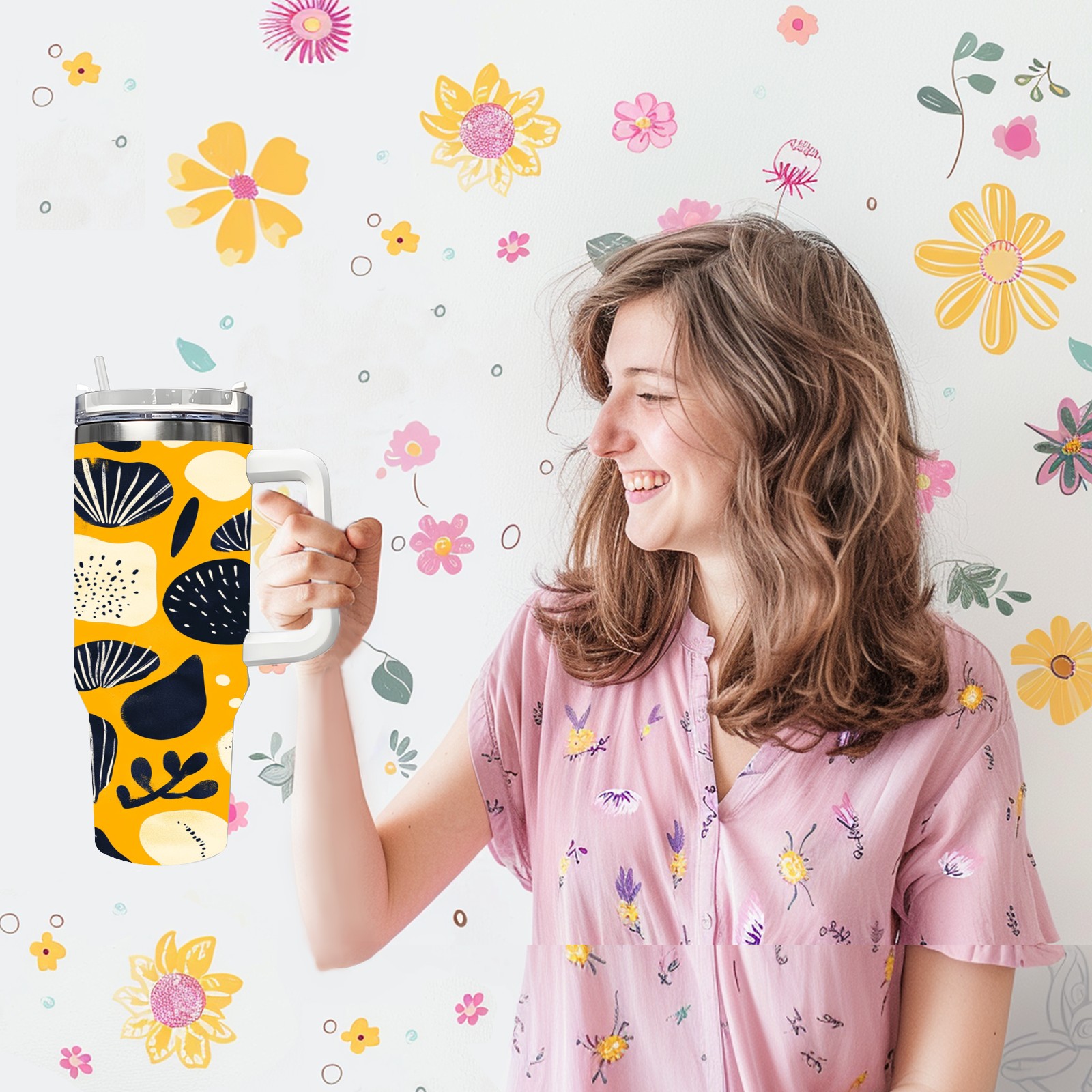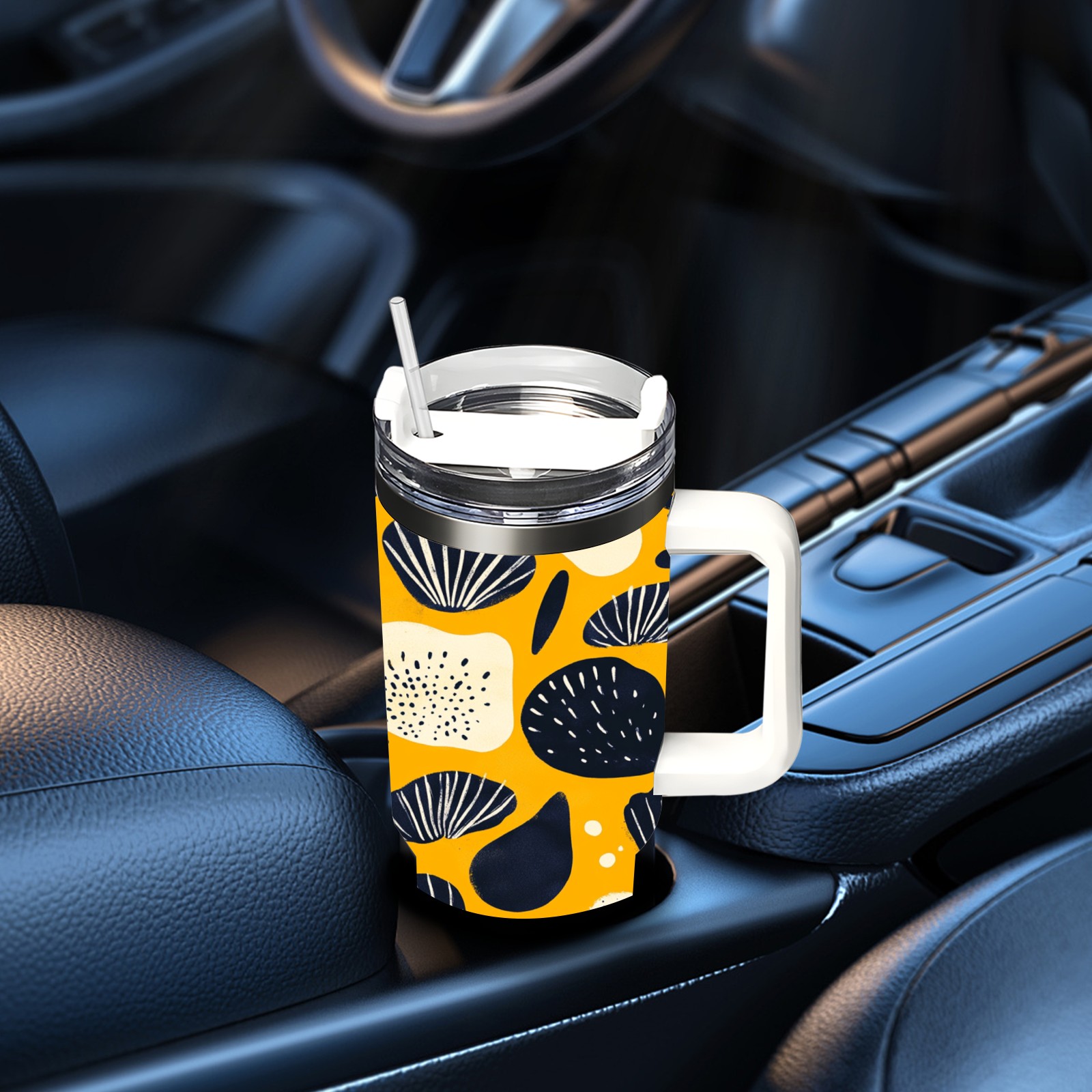 40 унций полностью напечатанный автомобильный стакан Yellow Seashell Pattern