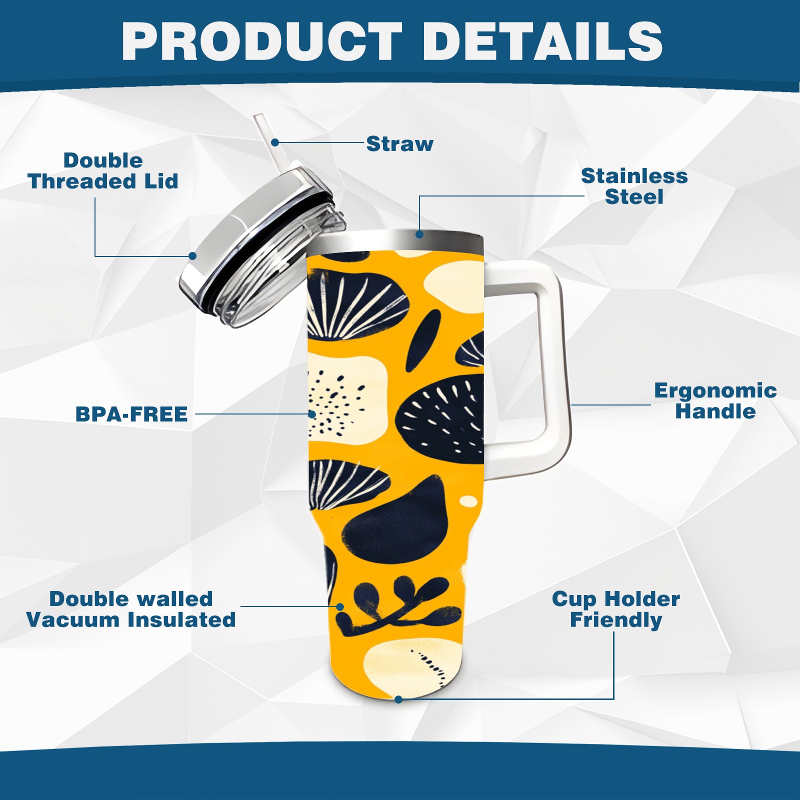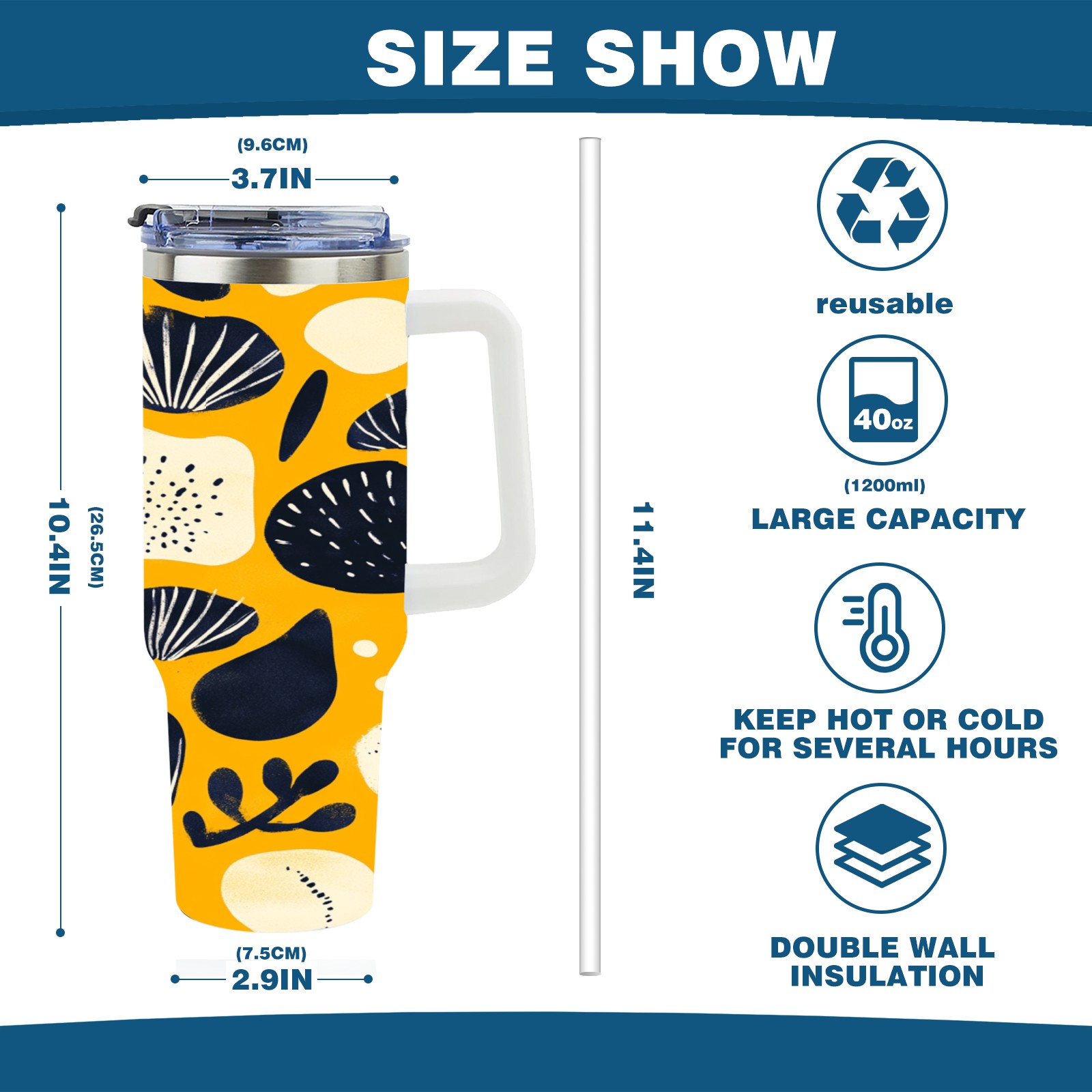 • С большой емкостью 40 унций, он обеспечивает вас гидратацией в течение всего дня, идеально подходит для воды, кофе, сока или других напитков. Эргономичный дизайн идеально вписывается в автомобильные держатели для бутылок, а прочный, герметичный колпачок предотвращает утечки во время передвижения. Путешествие. Антискользящее основание обеспечивает устойчивость, а гладкие поверхности делают уборку легкой — просто мойте вручную или кладите в посудомоечную машину (рекомендуется верхний поддон).