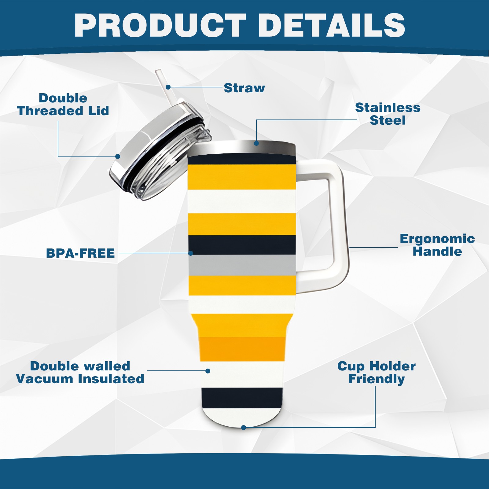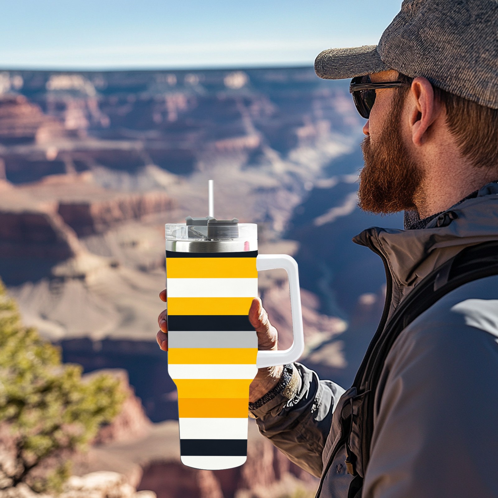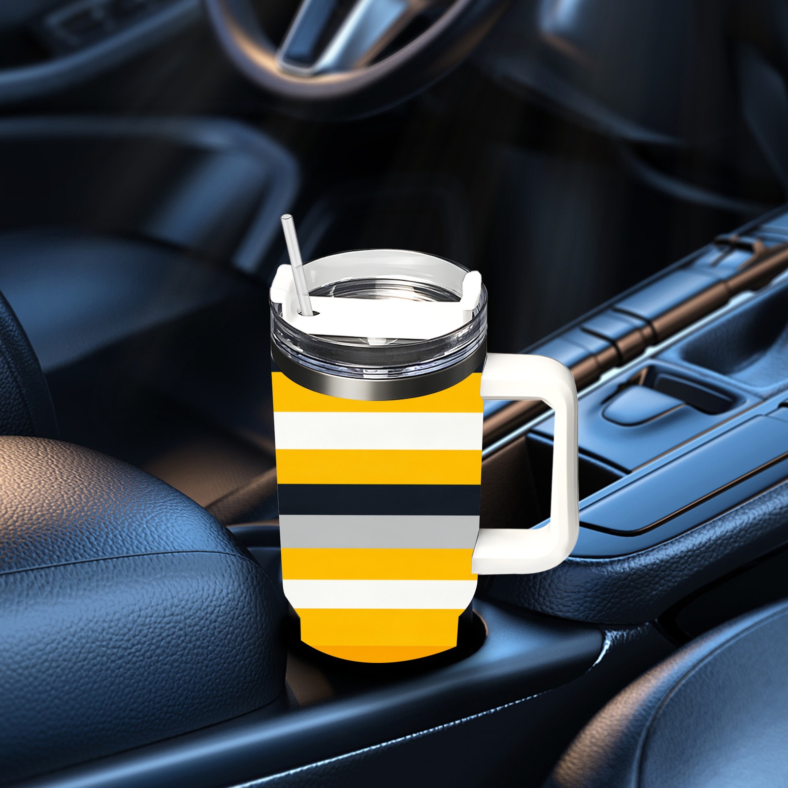 40 унций полностью напечатанный автомобильный стакан Yellow Black Striped Pattern