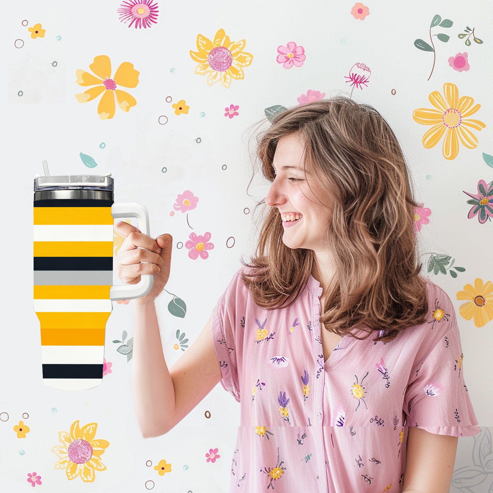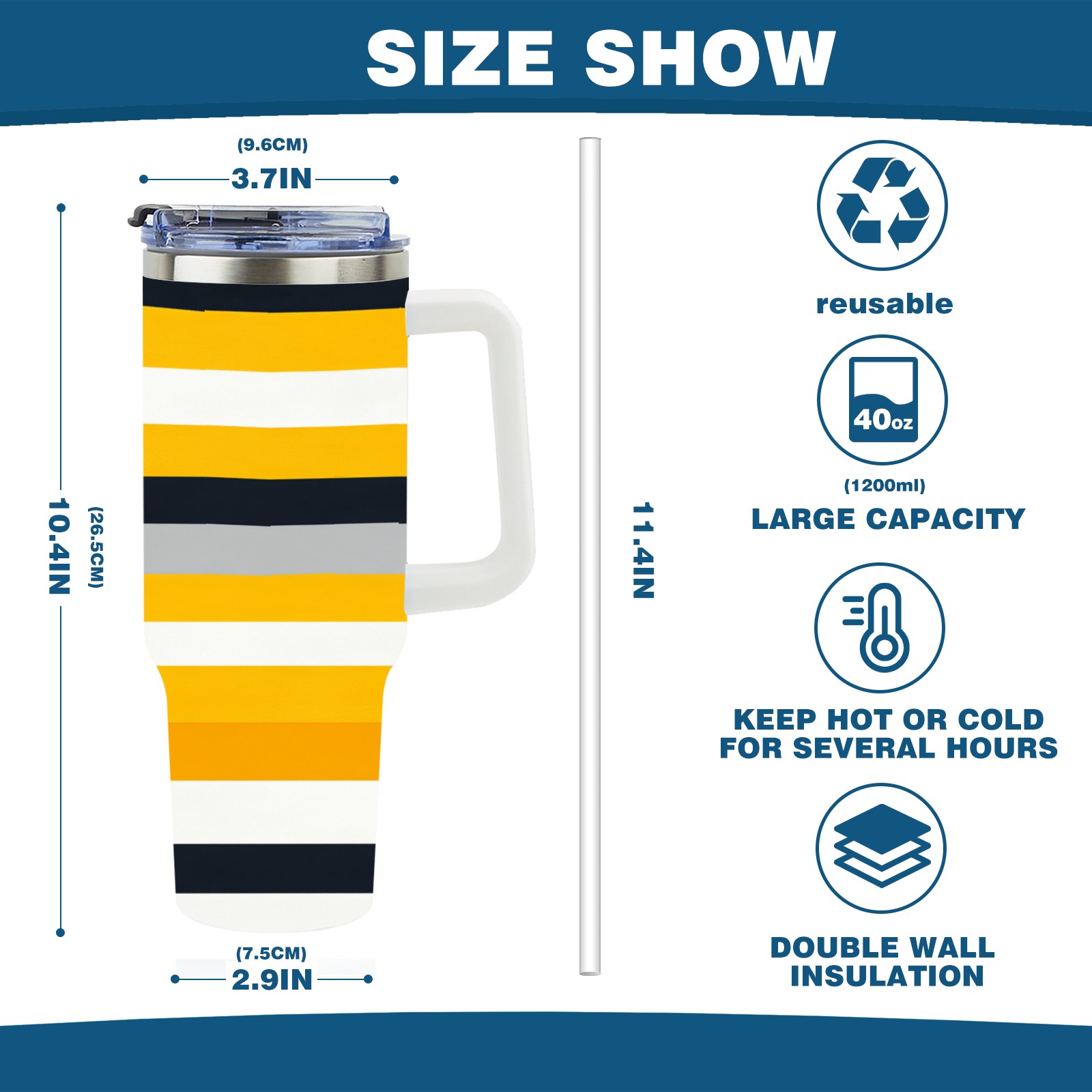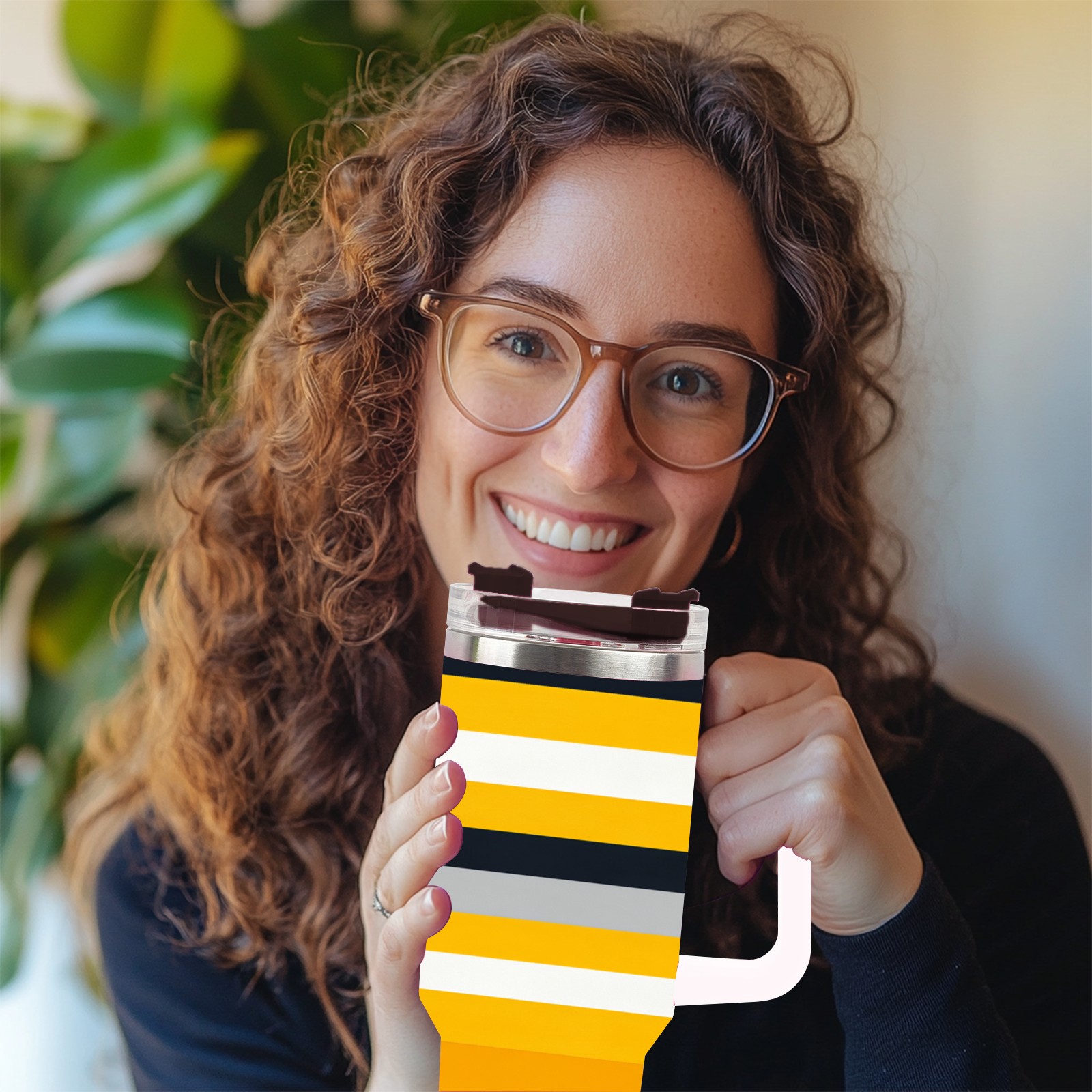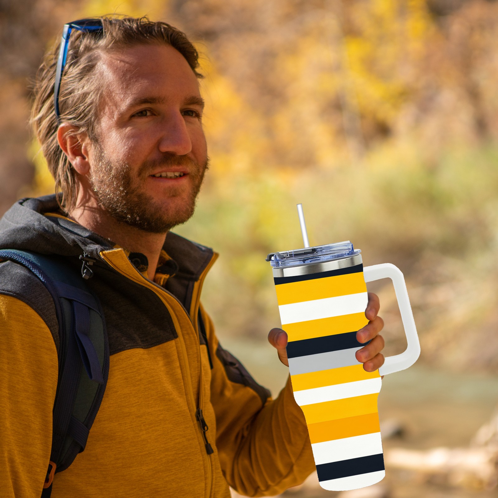 40 унций полностью напечатанный автомобильный стакан Yellow Black Striped Pattern