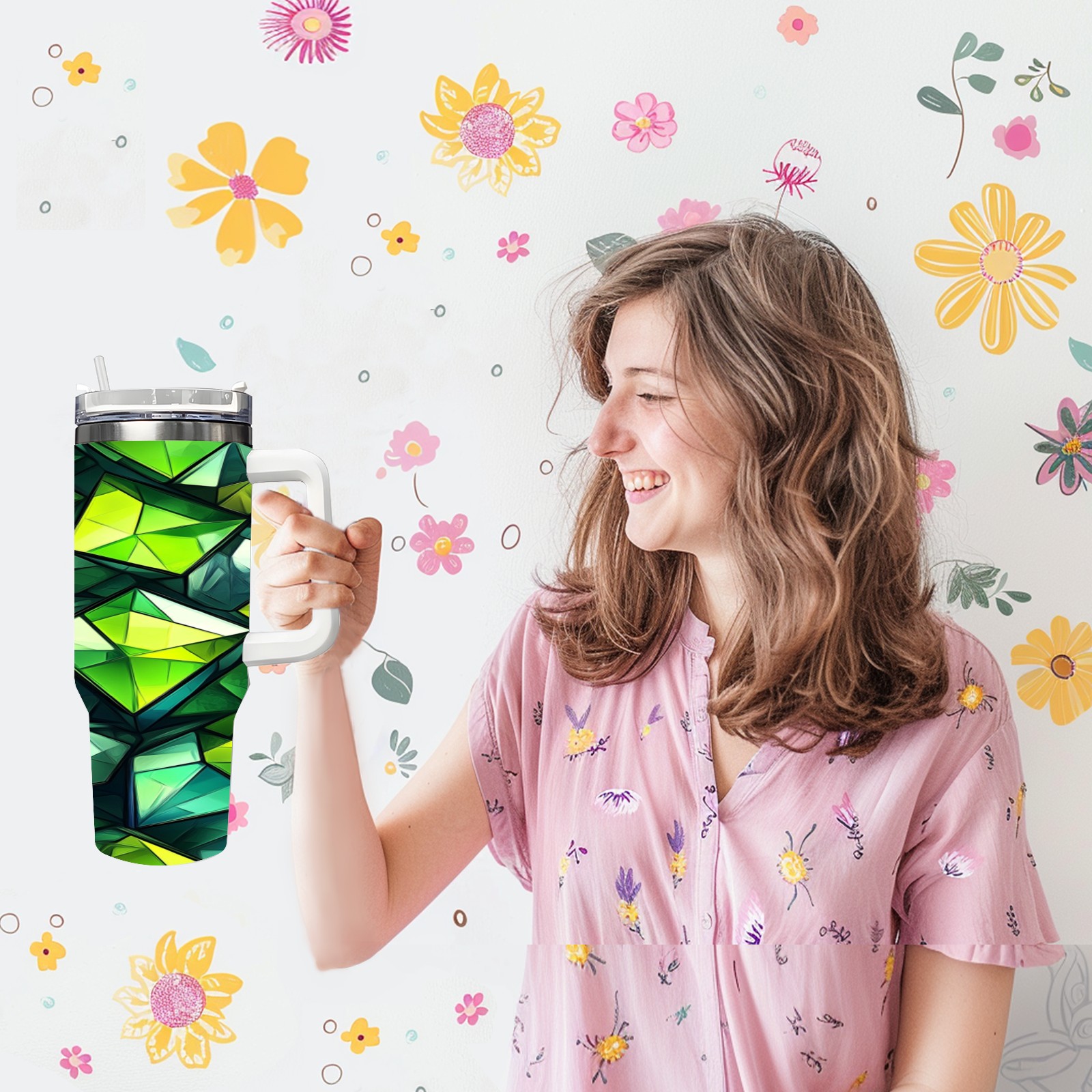 40 унций полностью напечатанный автомобильный стакан Green Glass Pattern