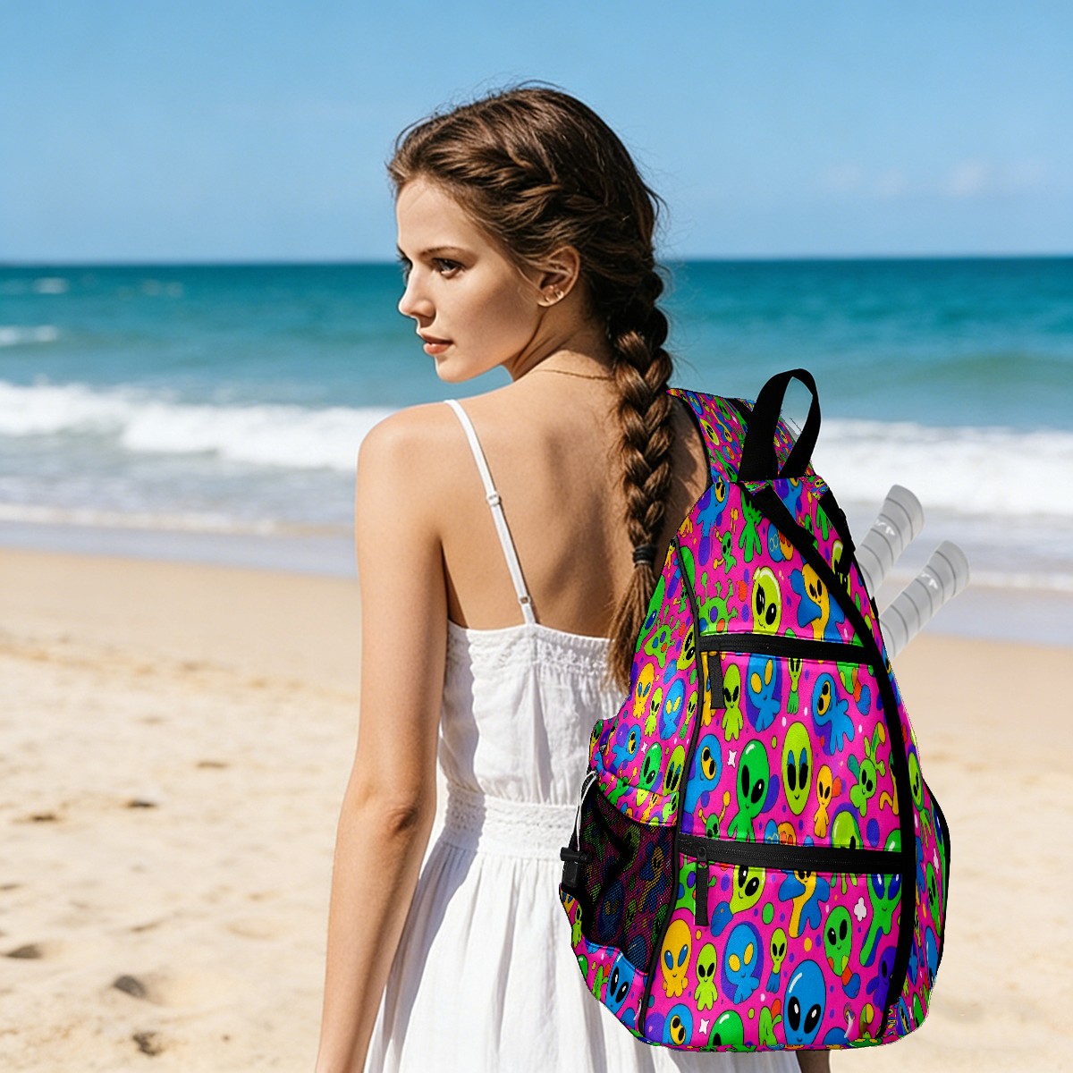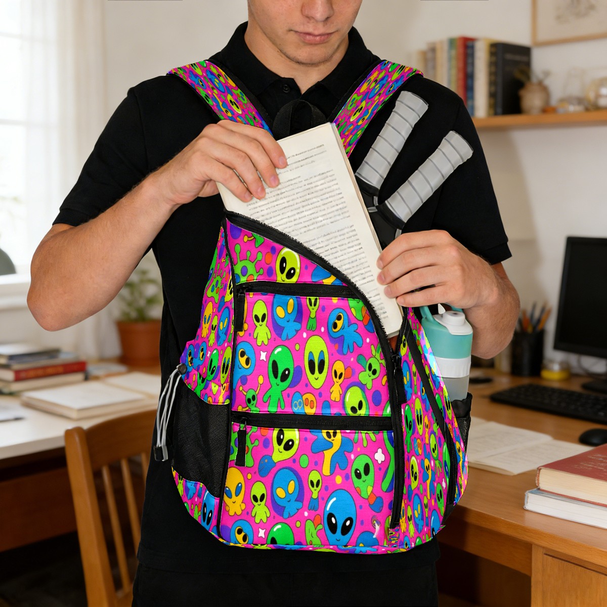 Материал: Прочная нейлоновая ткань + усиленные тканые лямки + дышащий сетчатый карман Размеры: 15×35×45 см / 6×13,8×17,7 дюймов Большая вместимость с множеством отделений – в одной сумке поместится все ваше снаряжение для пикбола: ракетки, мячи, защитная экипировка и бутылка с водой! Разработана для комфортной переноски – утолщенная мягкая спинка в сочетании с регулируемыми дышащими сетчатыми плечевыми ремнями эффективно распределяет вес, снимая боль в плечах и спине, а также мышечное напряжение. Ткань сумки гладкая и приятная на ощупь, деликатная и мягкая, что делает ежедневное использование более комфортным. Гибкие варианты переноски: плечевые лямки имеют съемную молнию, позволяющую свободно регулировать стиль ношения. Идеально подходит в качестве портативной сумки через плечо для ежедневных поездок на работу, отдыха на природе и спортивных мероприятий, а также в качестве практичного и продуманного подарка для друзей, семьи и других игроков в пикбол.