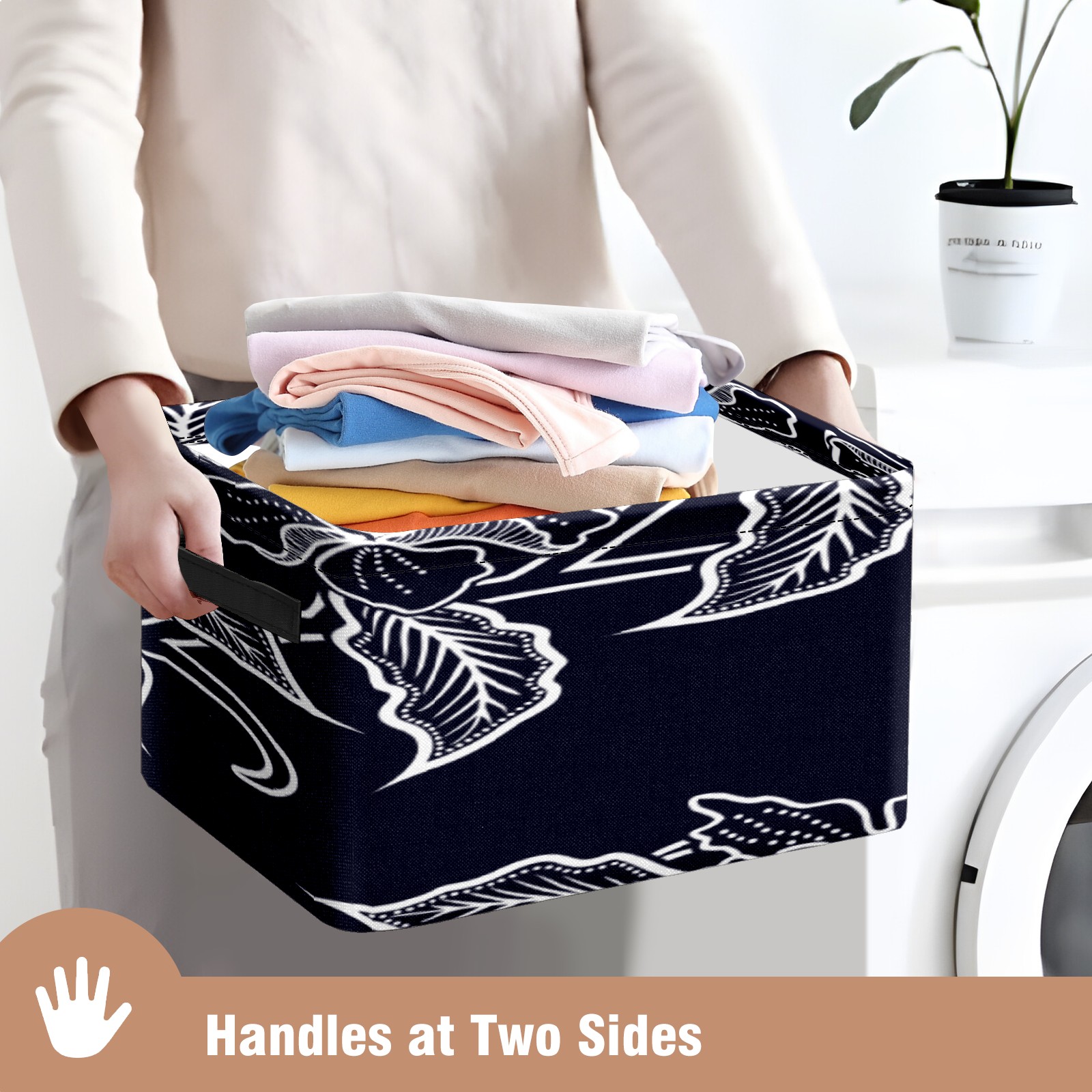 • 【Материал】Оксфордская ткань из полиэстера 600D; ручки изготовлены из полиэстера. 【Описание материала】Внешняя ткань: Оксфордская ткань полотняного переплетения высокой плотности 300D (ПВХ); Подкладка: белая ткань 750D; Ручки: черная композитная ткань 290T. 【Размер】26x35x21 см (10x14x8 дюймов) 【Описание продукта】Эта корзина для хранения с ручками с обеих сторон предлагает достаточно места для хранения предметов разных размеров, что делает ее подходящей для различных случаев, таких как дом, офис и школа. Ручки с обеих сторон закреплены гвоздями для долговечности. Прочный металлический каркас окружает корзину, поддерживая ее форму. Складная корзина для хранения: Наши корзины для хранения легко складываются, когда не используются. Эти ящики для хранения изготовлены из легко моющейся оксфордской ткани и при необходимости могут быть аккуратно протерты мягким мылом и водой. Из-за внутреннего металлического каркаса и жесткого дна машинная стирка не рекомендуется. 【Подходящие сценарии использования】Дом, офис и школа 【Инструкции по стирке】Рекомендуется ручная стирка; избегайте длительного воздействия прямых солнечных лучей.