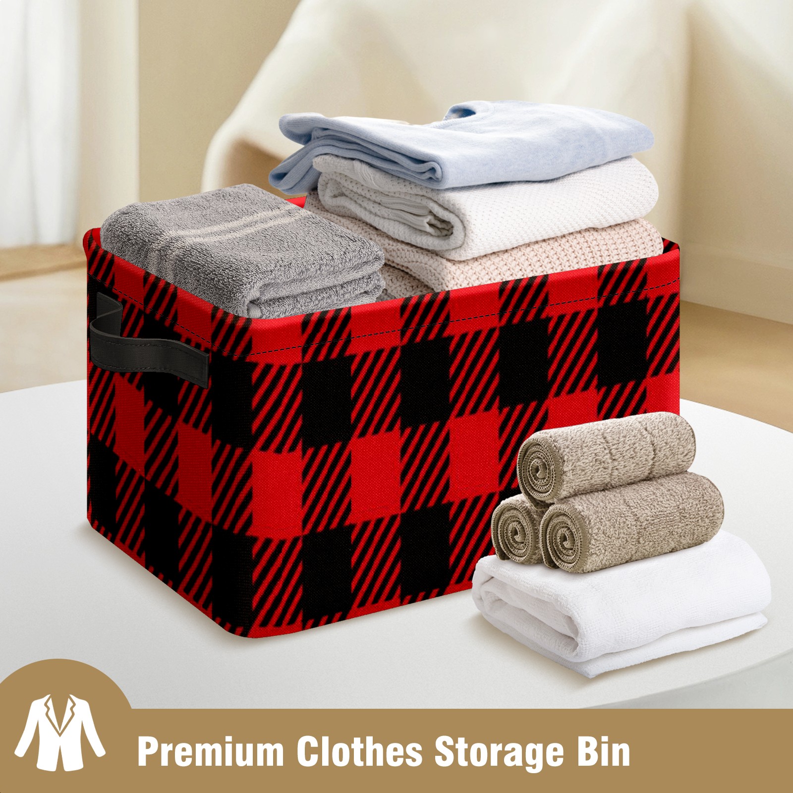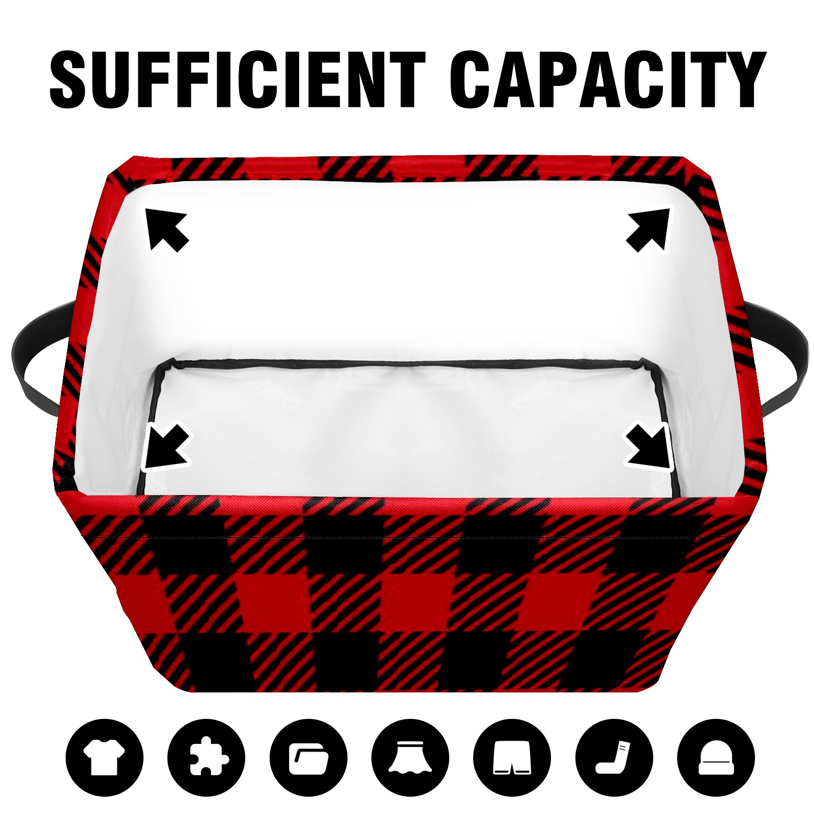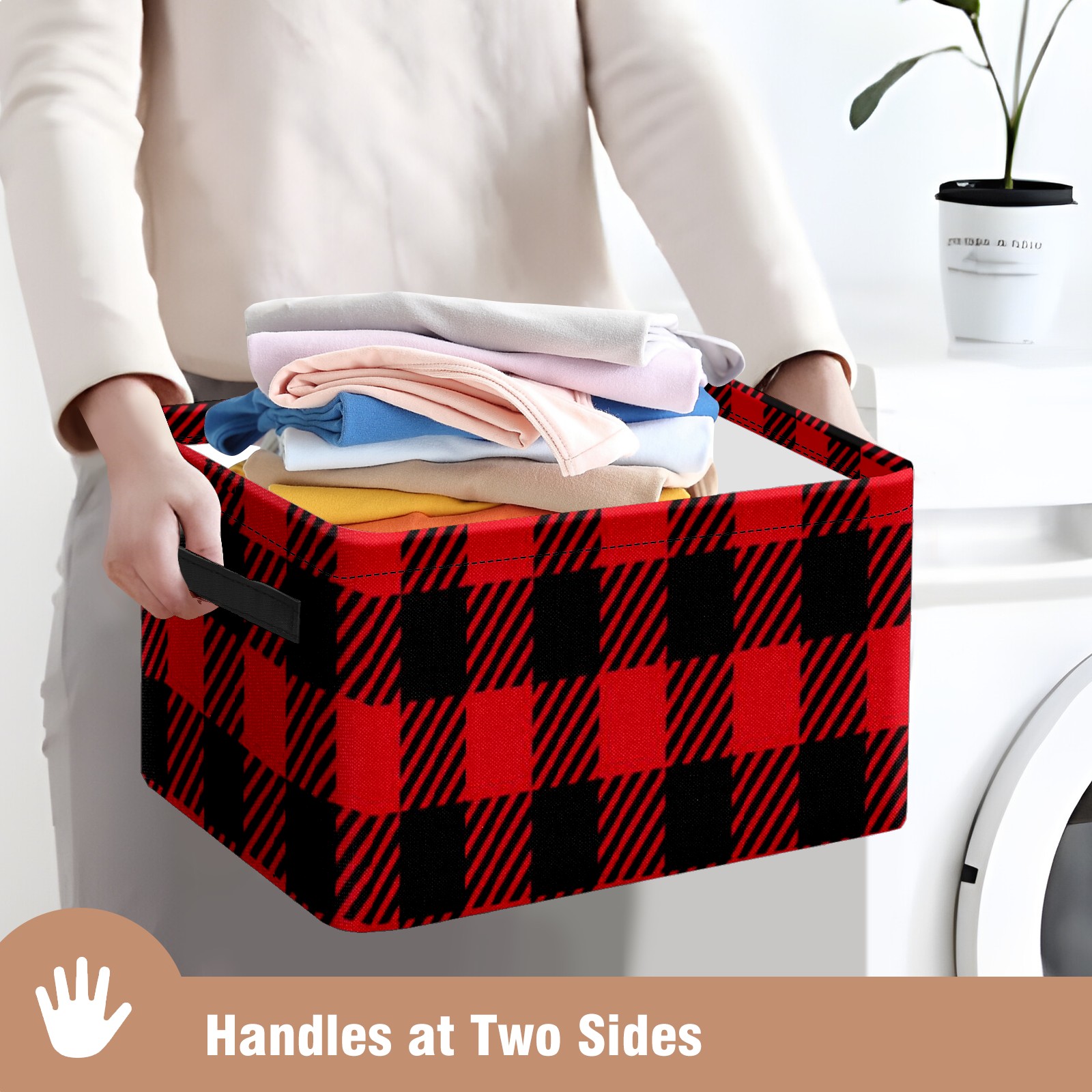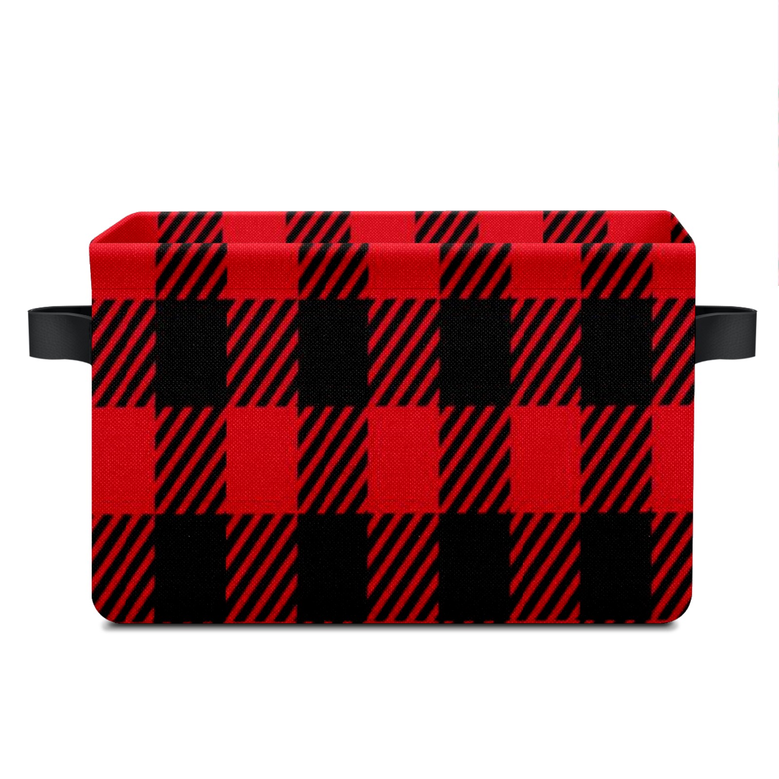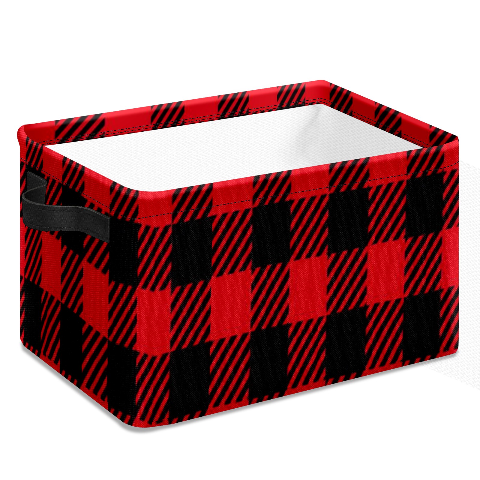 Collapsible 600D Oxford Storage Basket with Buffalo Plaid - Metal Frame 10"x14"x8" Reinforced Handles, Multi-Purpose Organizer