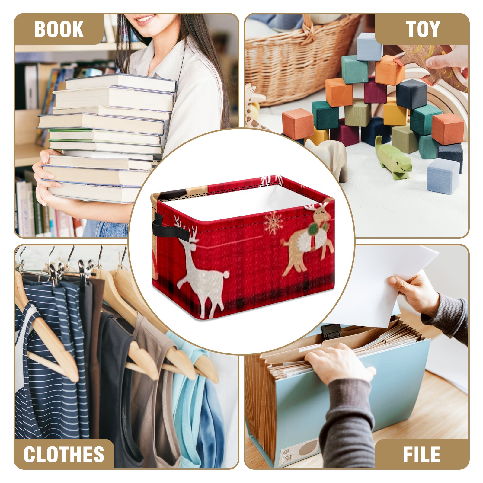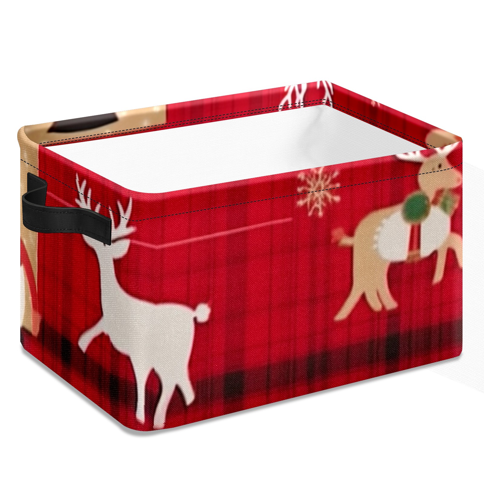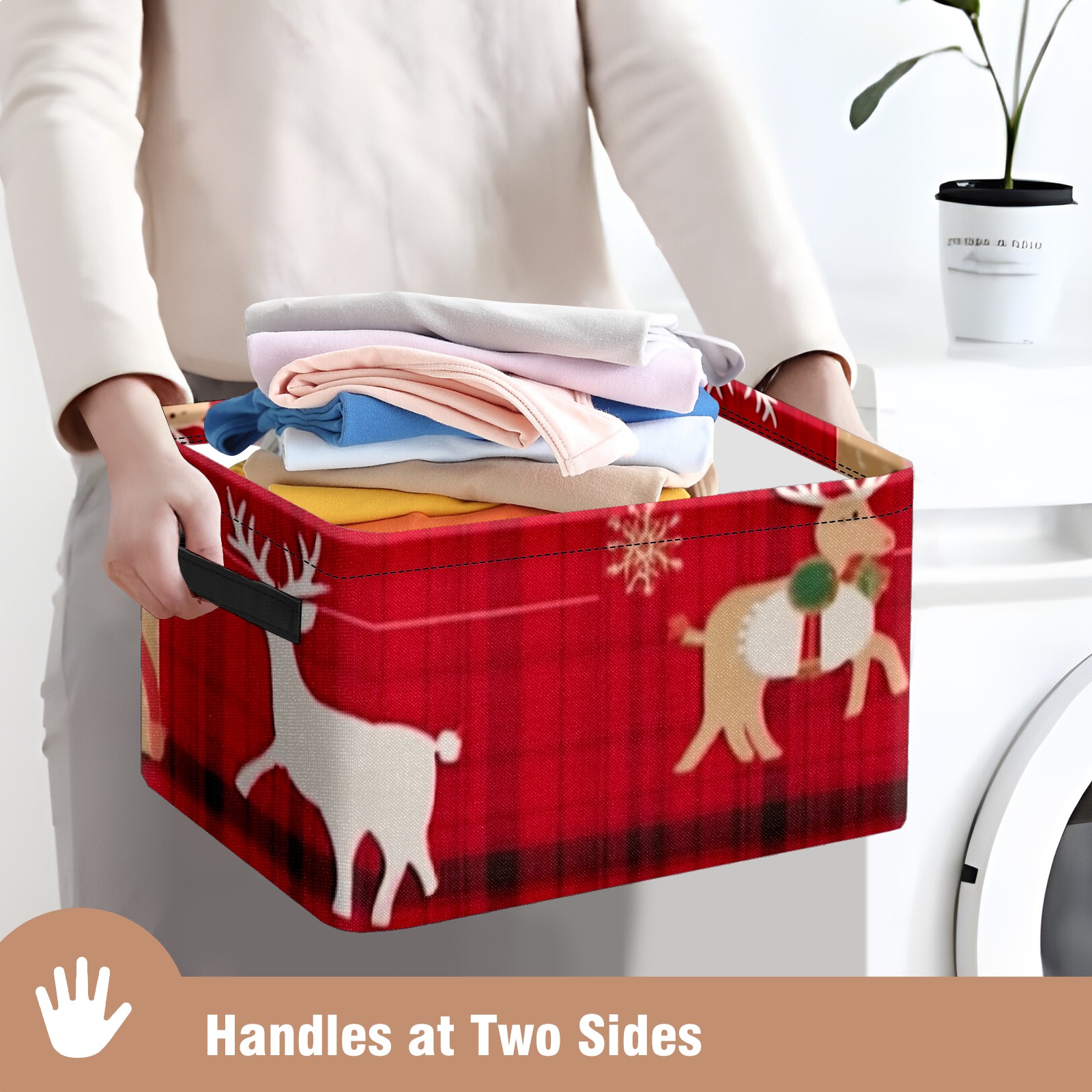 Collapsible 600D Oxford Storage Basket with Brave_piglet_11954_holiday_pattern_patchwork_fabric_in_plaid_wi_9ea7ad2a-0f09-4492-86ad-32c7b13cb8e8 - Metal Frame 10"x14"x8" Reinforced Handles, Multi-Purpose Organizer