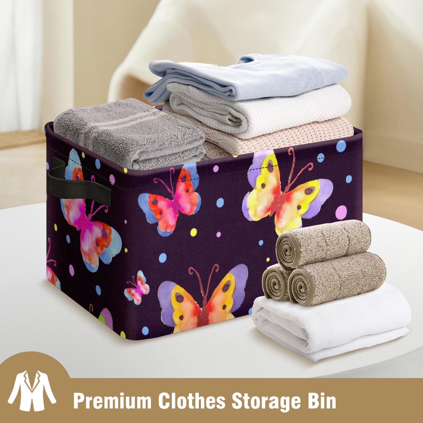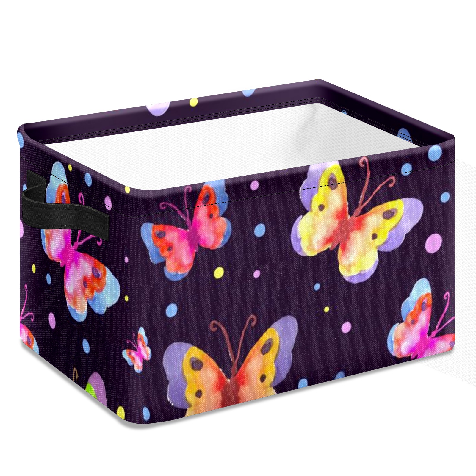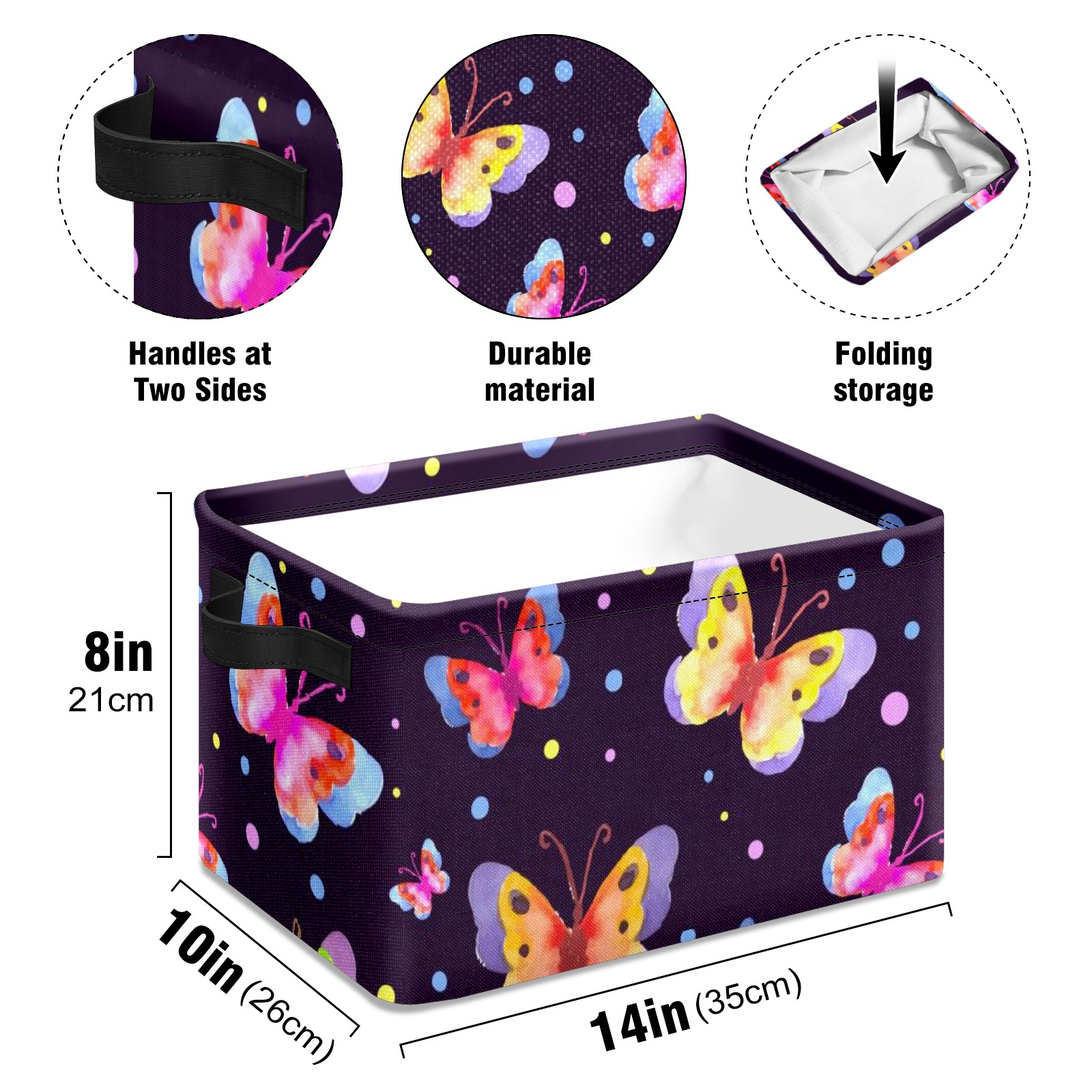 Collapsible 600D Oxford Storage Basket with Watercolor Spring Butterfly Pattern - Metal Frame 10"x14"x8" Reinforced Handles, Multi-Purpose Organizer