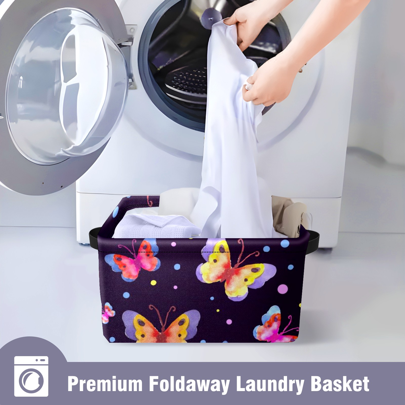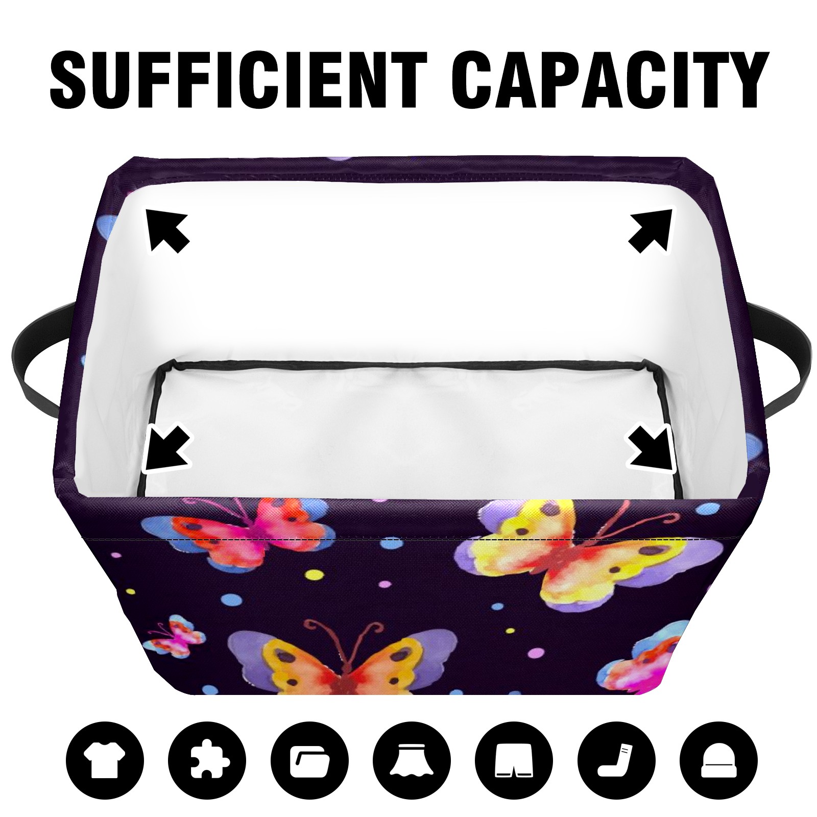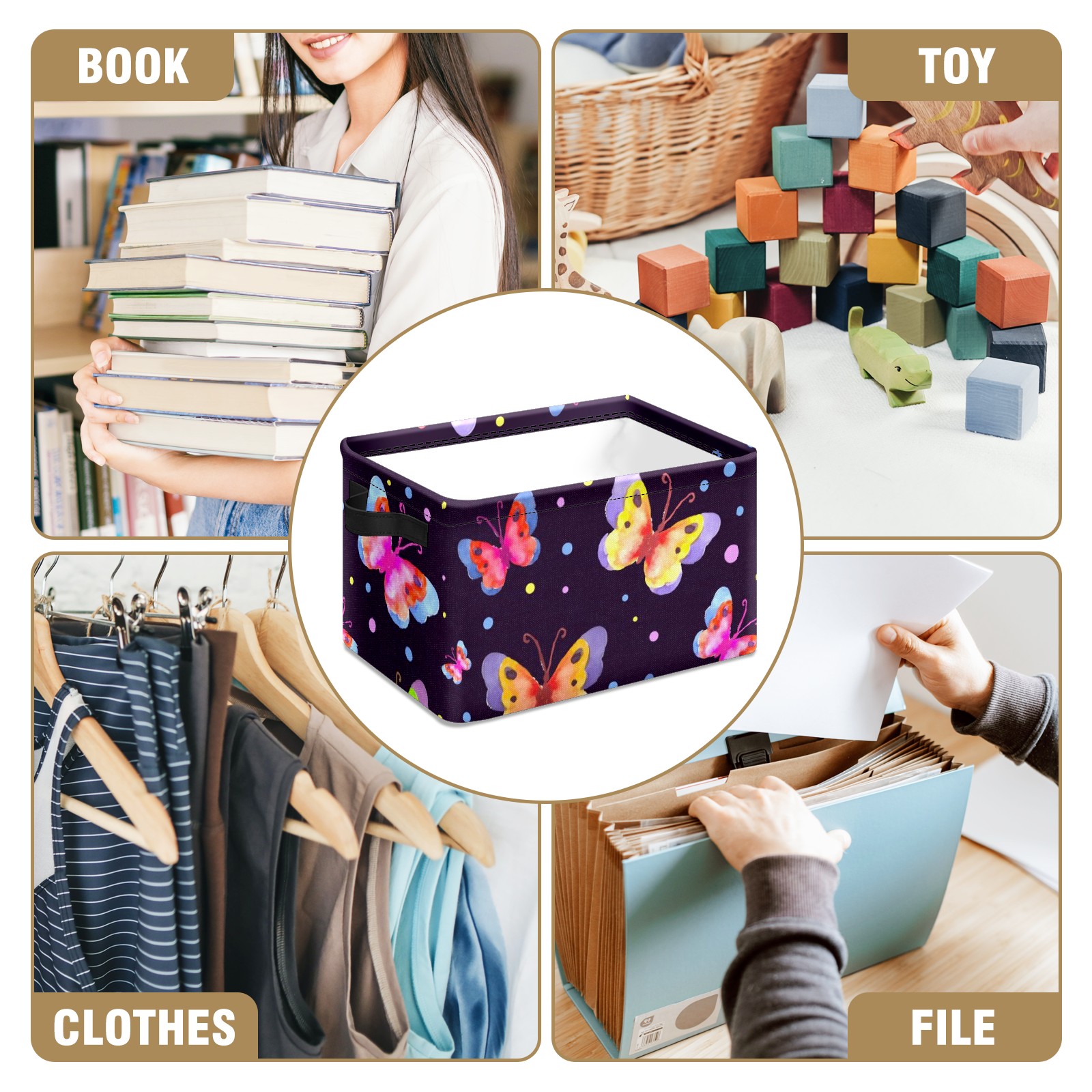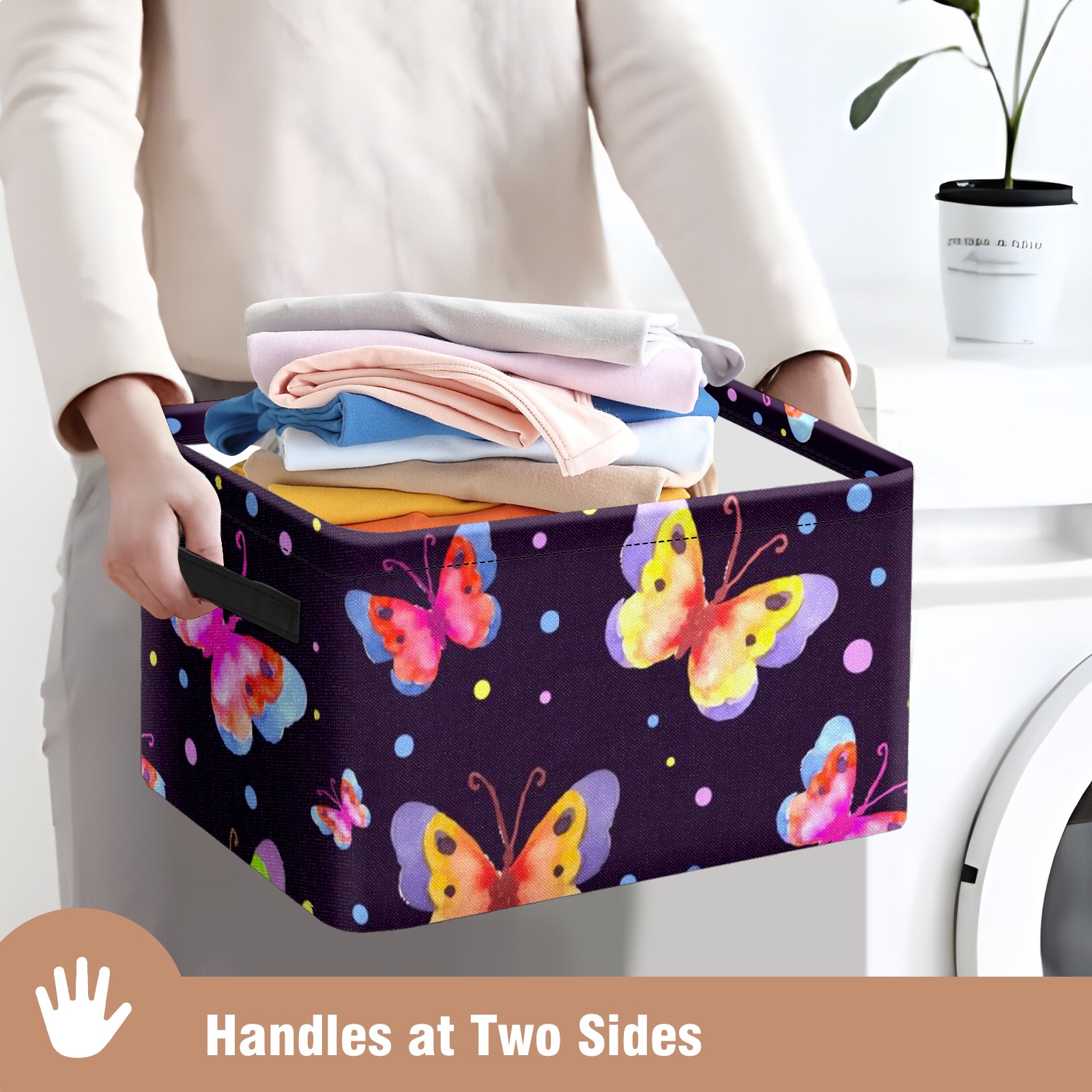Collapsible 600D Oxford Storage Basket with Watercolor Spring Butterfly Pattern - Metal Frame 10"x14"x8" Reinforced Handles, Multi-Purpose Organizer