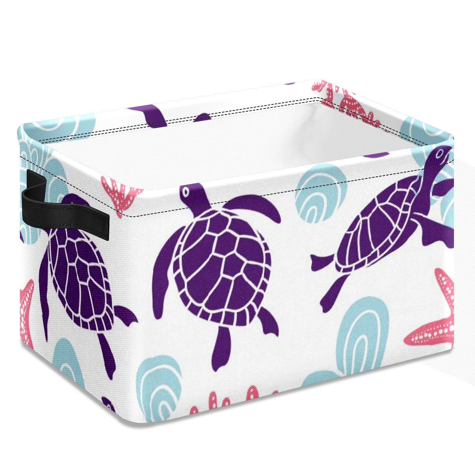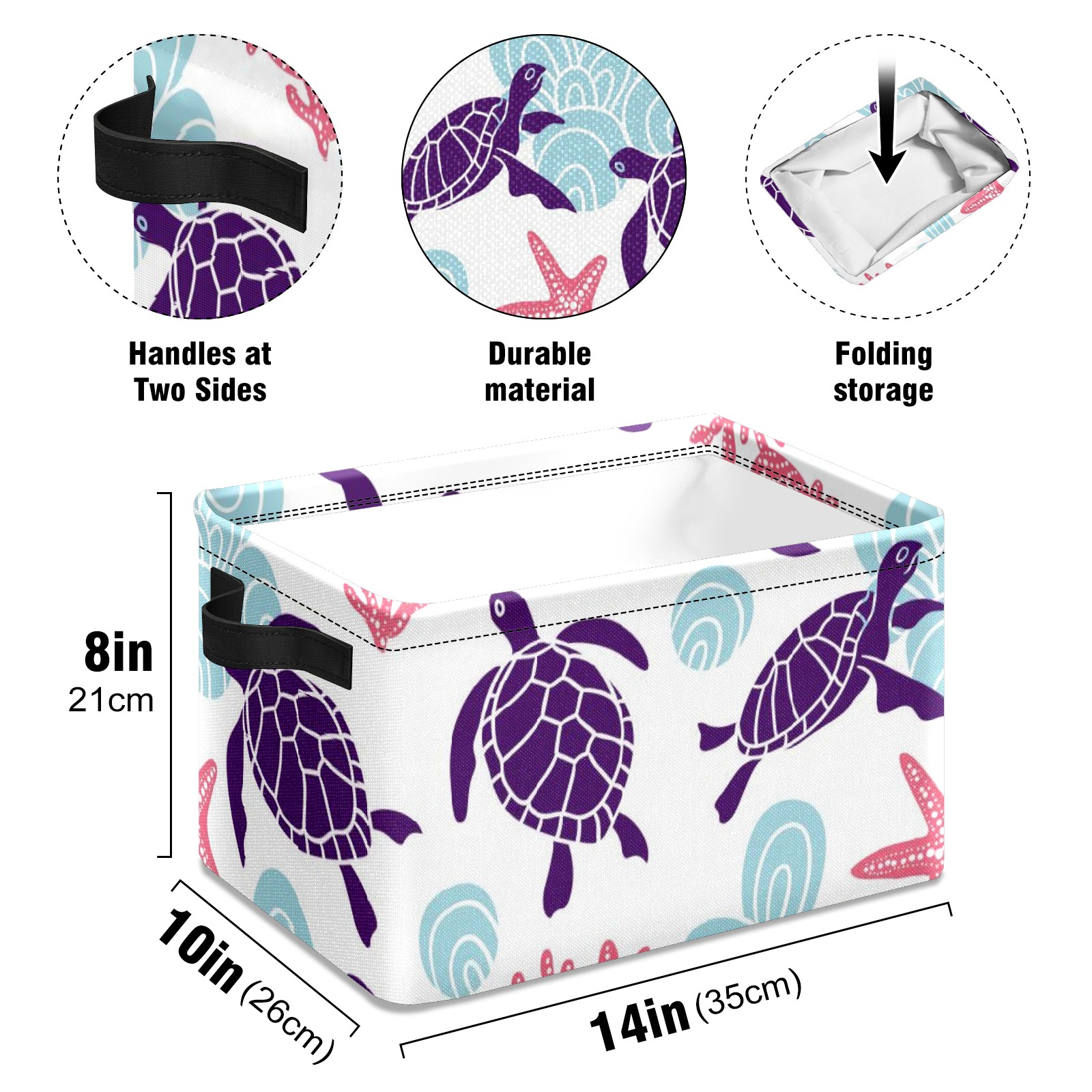 Collapsible 600D Oxford Storage Basket with Purple Turtle Starfish - Metal Frame 10"x14"x8" Reinforced Handles, Multi-Purpose Organizer