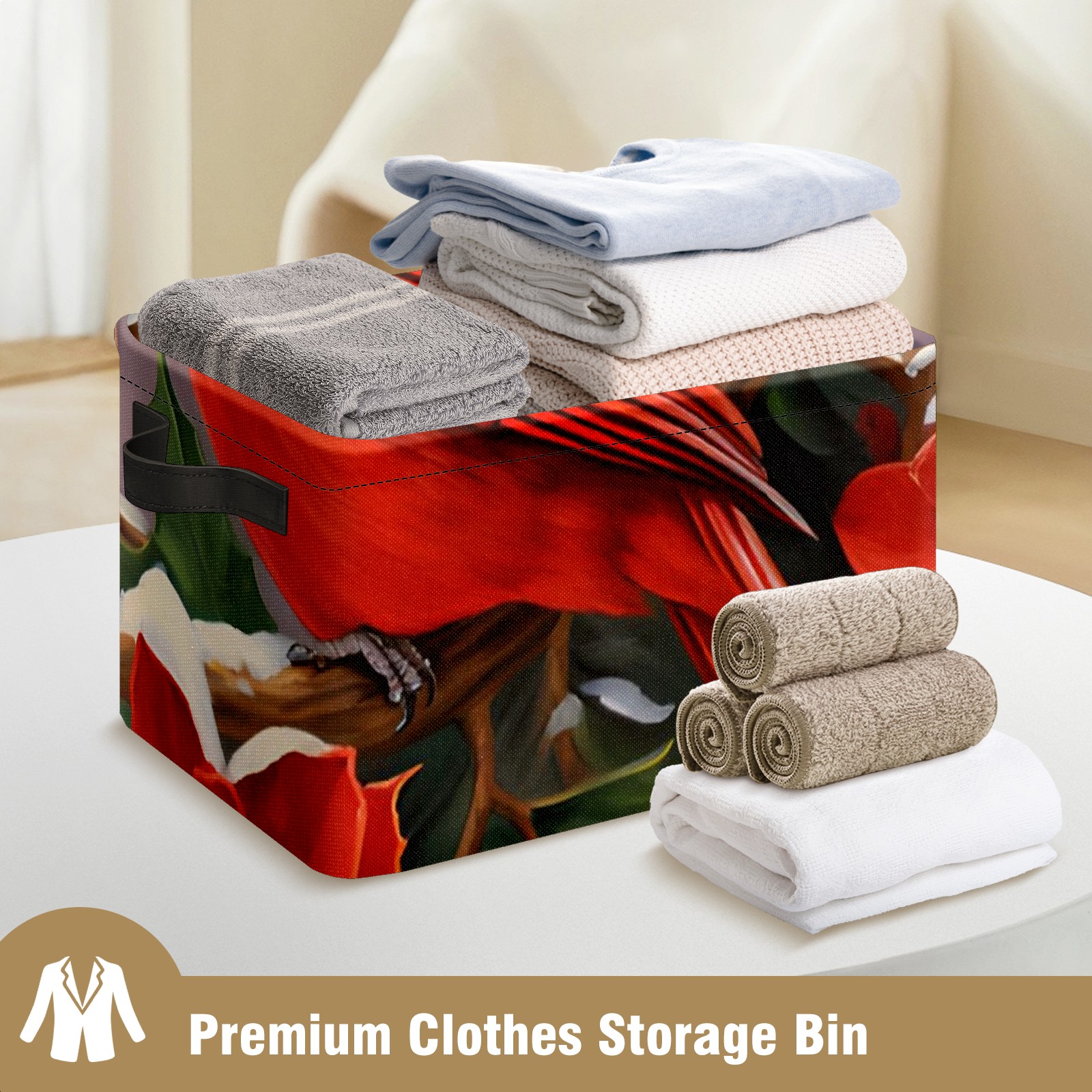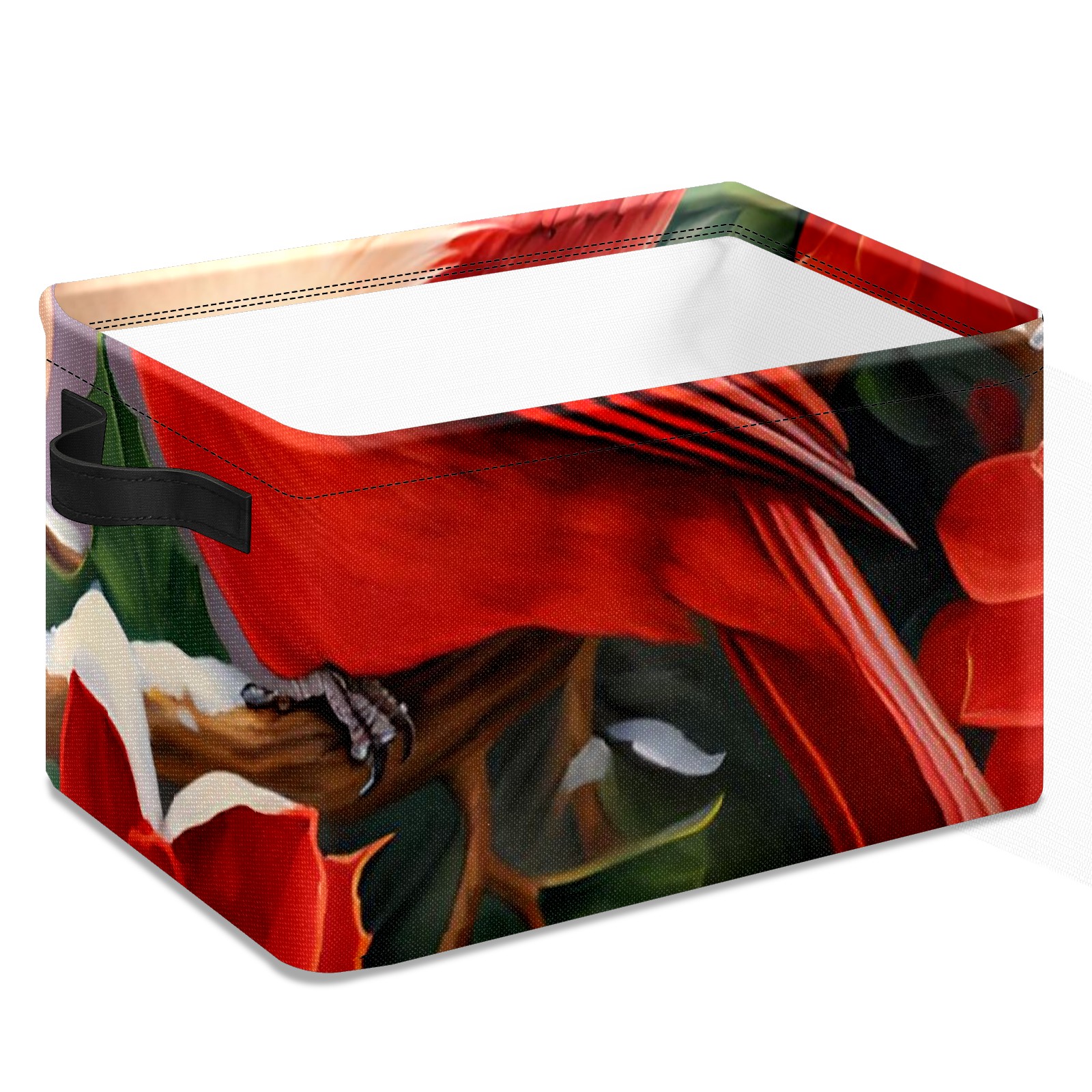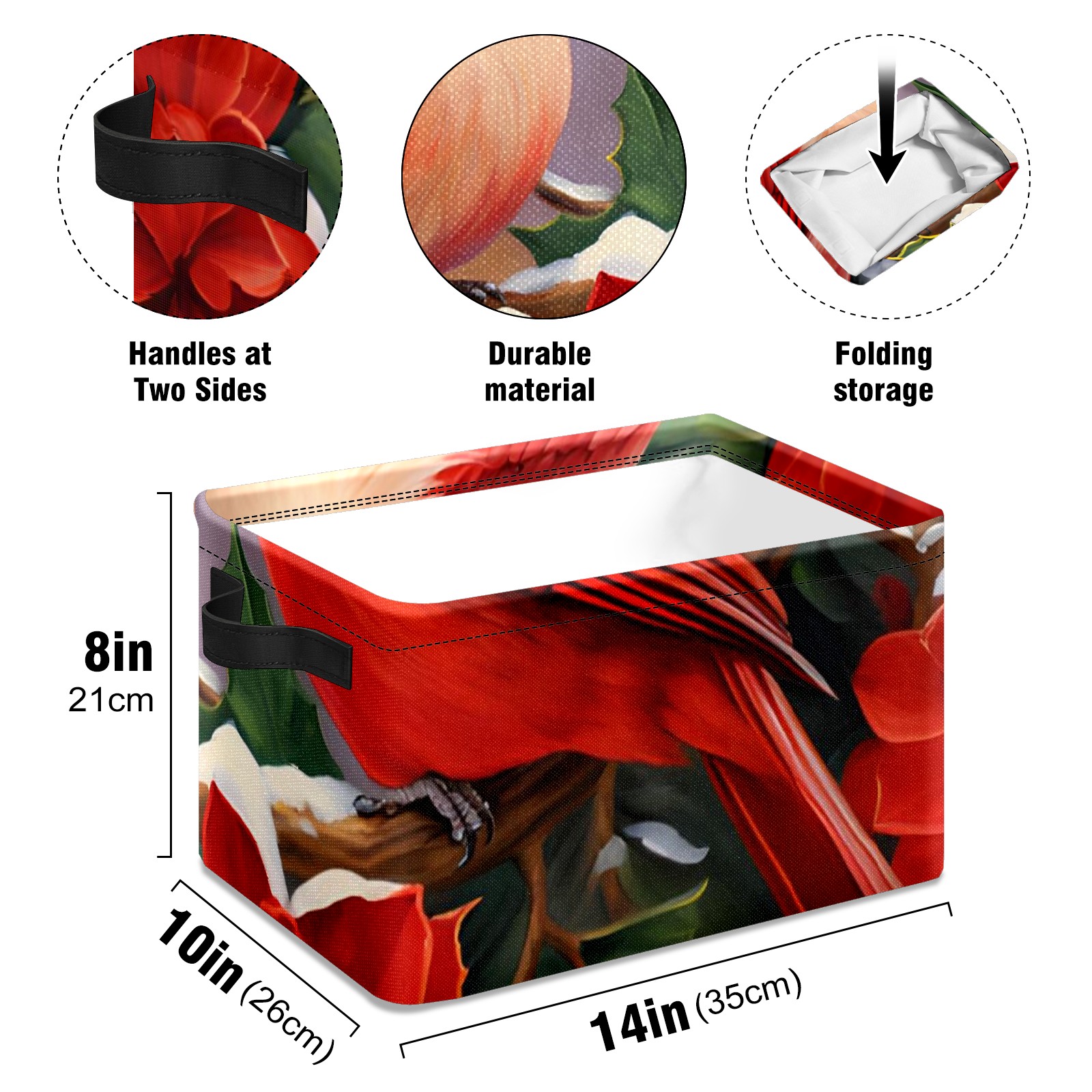 Collapsible 600D Oxford Storage Basket with Christmas Cardinal - Metal Frame 10"x14"x8" Reinforced Handles, Multi-Purpose Organizer