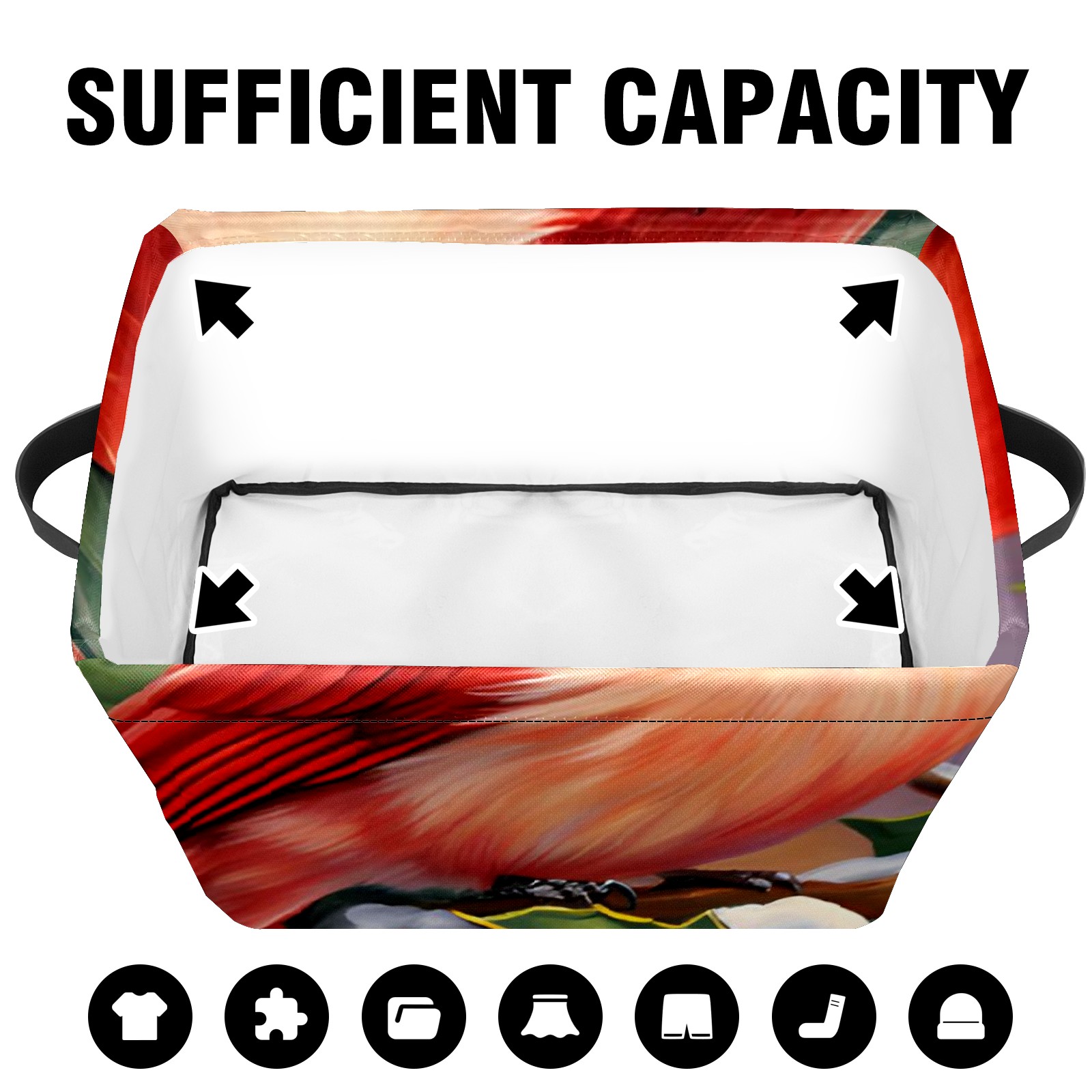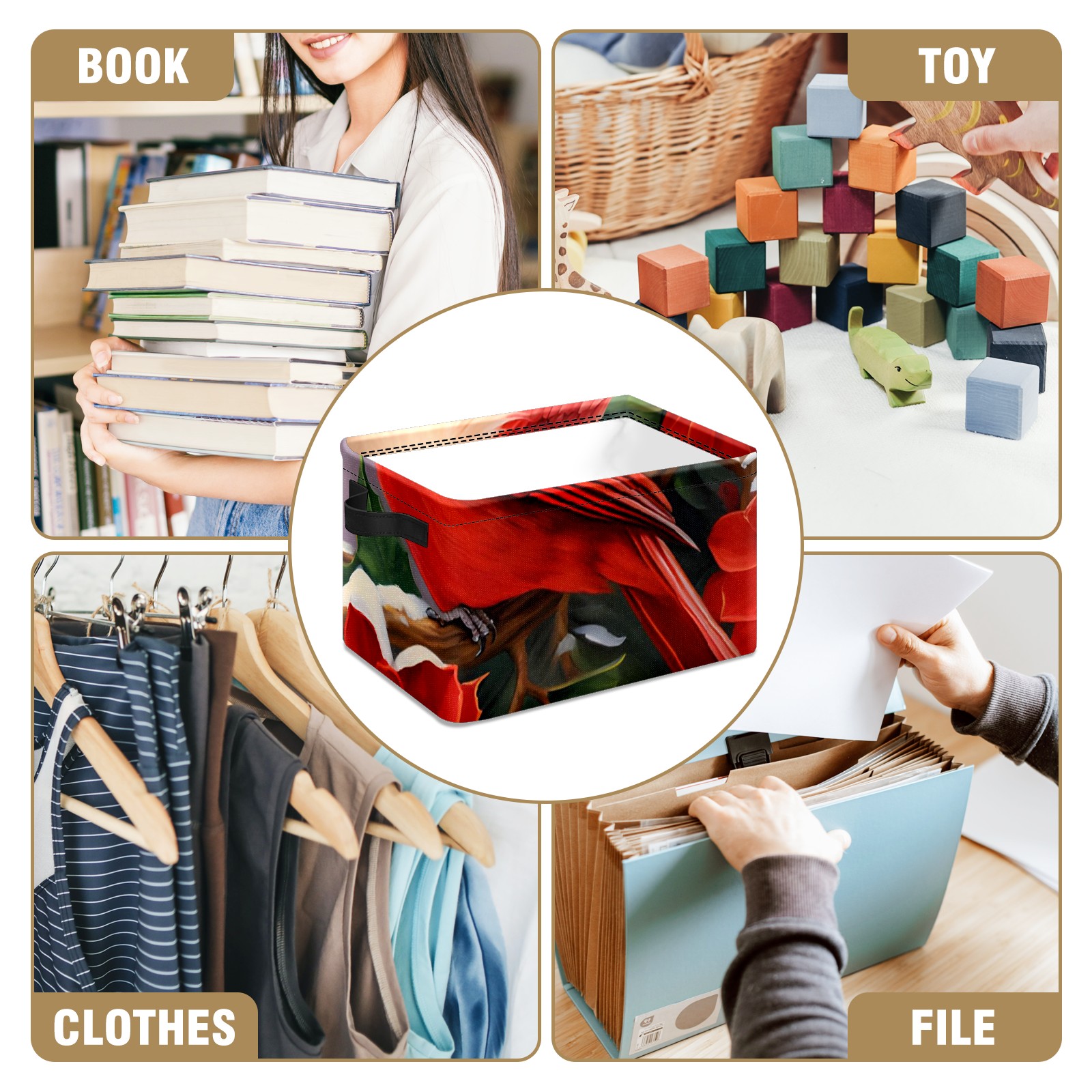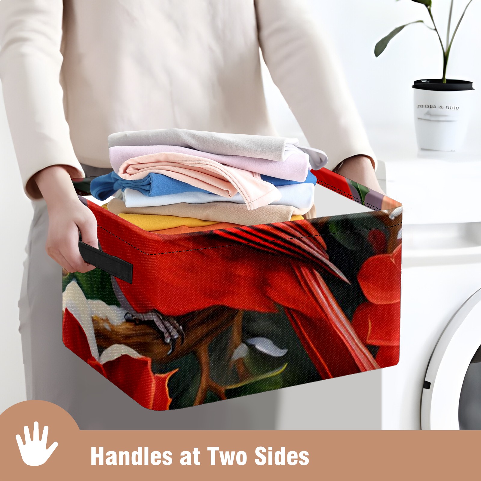 Collapsible 600D Oxford Storage Basket with Christmas Cardinal - Metal Frame 10"x14"x8" Reinforced Handles, Multi-Purpose Organizer