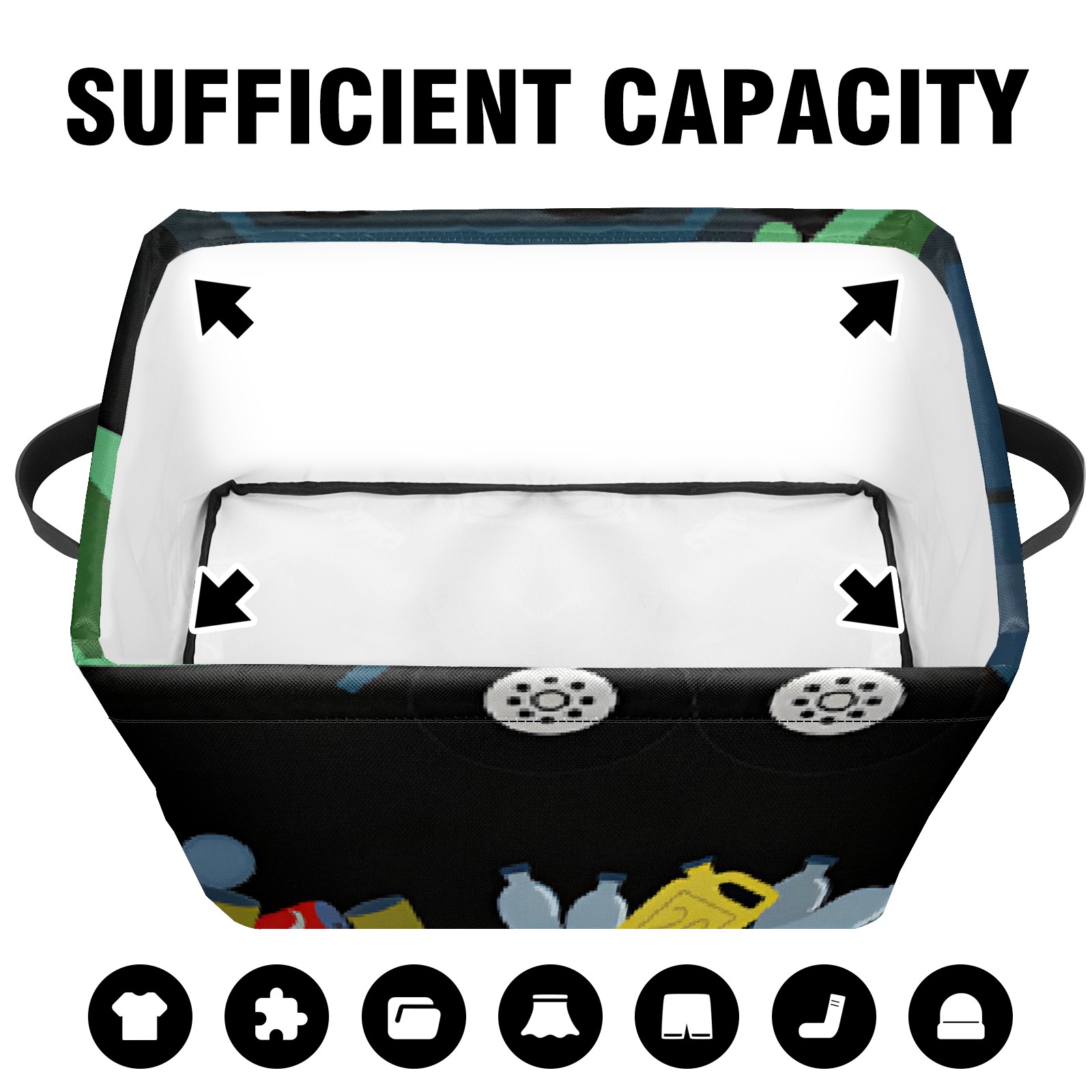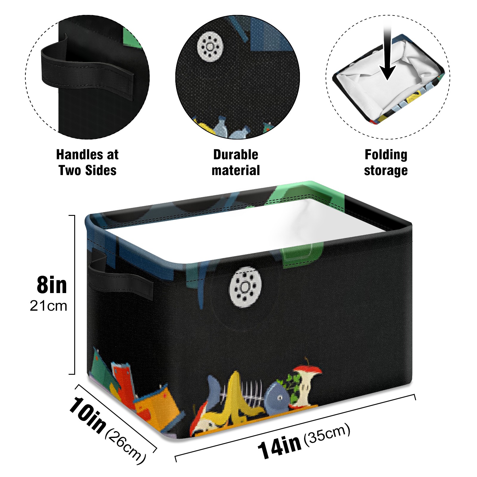 Collapsible 600D Oxford Storage Basket with Exported - Metal Frame 10"x14"x8" Reinforced Handles, Multi-Purpose Organizer
