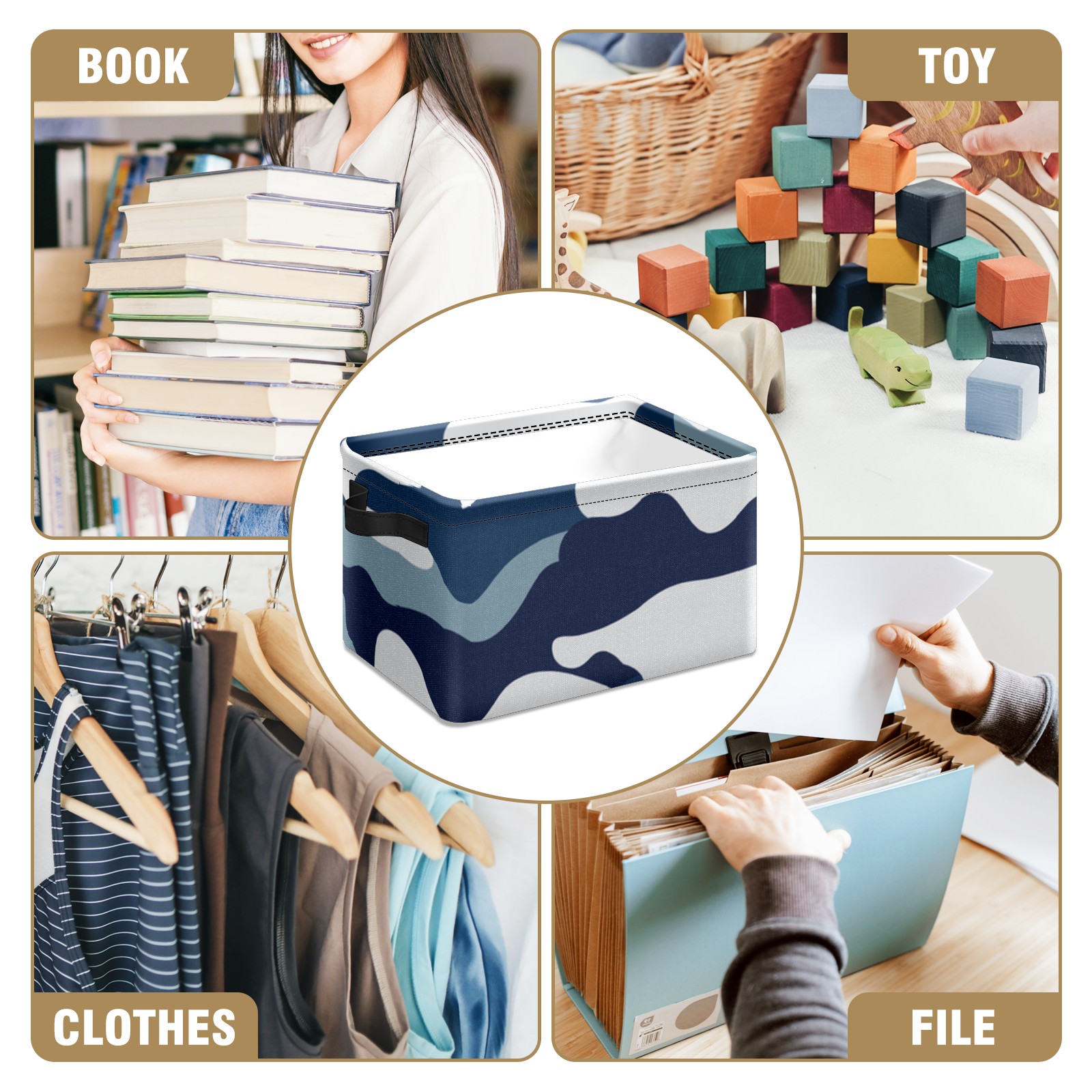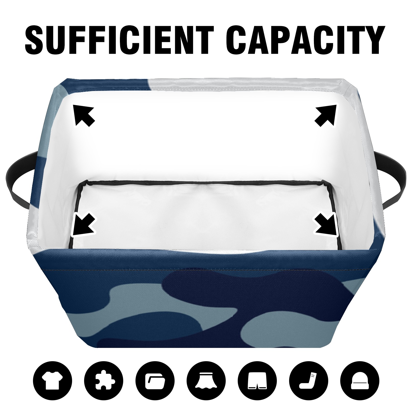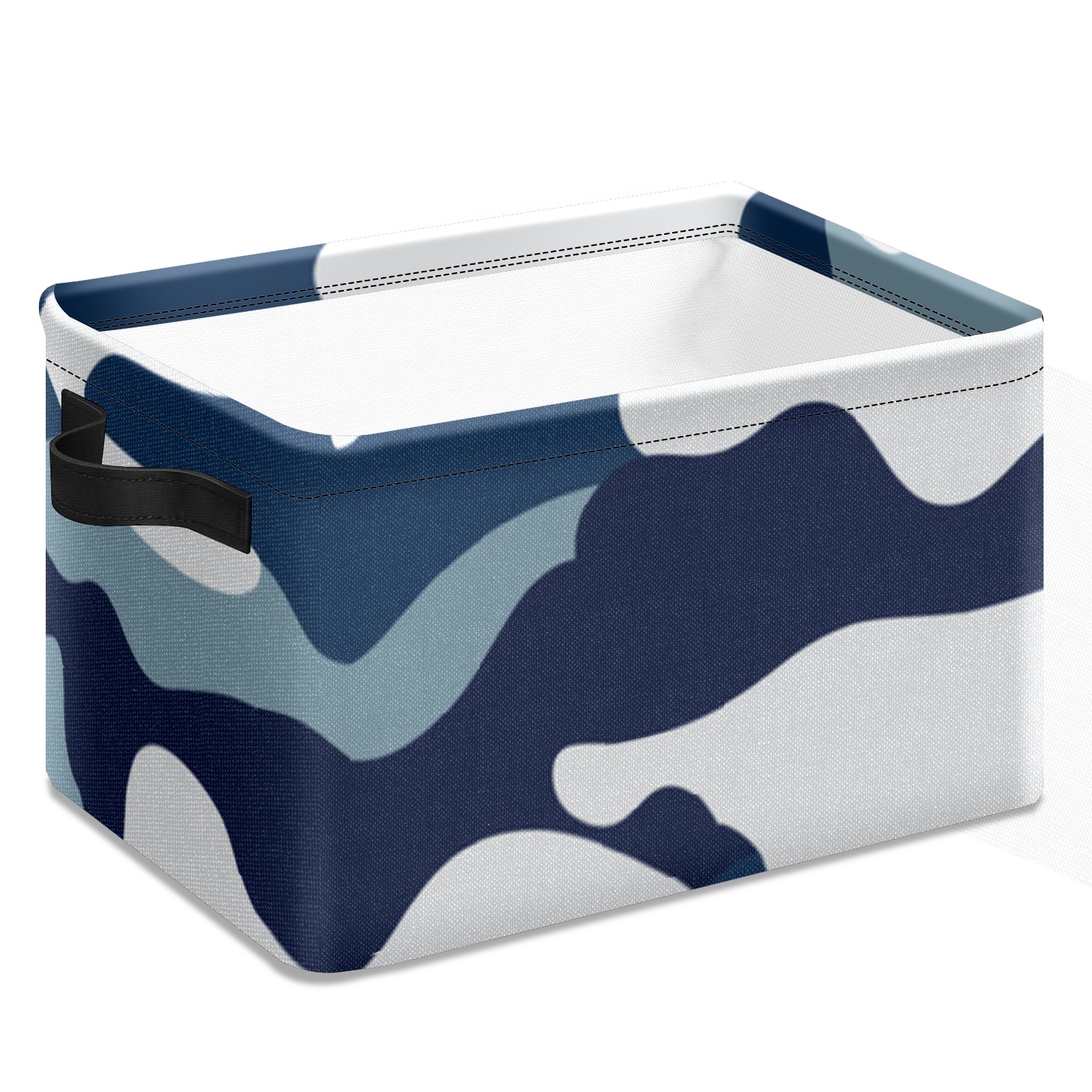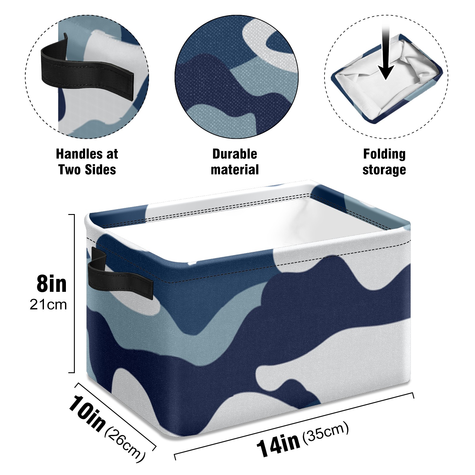 Collapsible 600D Oxford Storage Basket with Blue Camouflage - Metal Frame 10"x14"x8" Reinforced Handles, Multi-Purpose Organizer