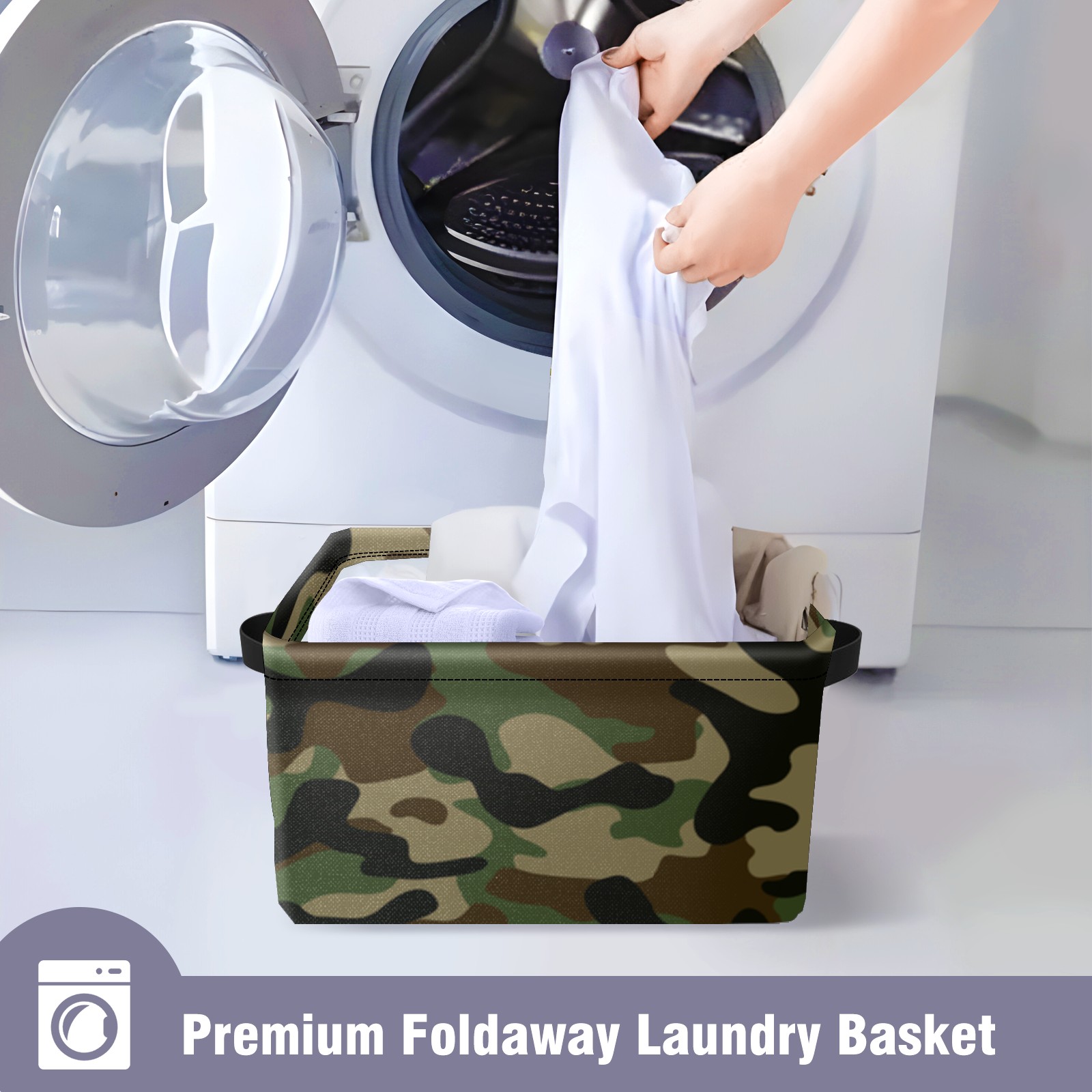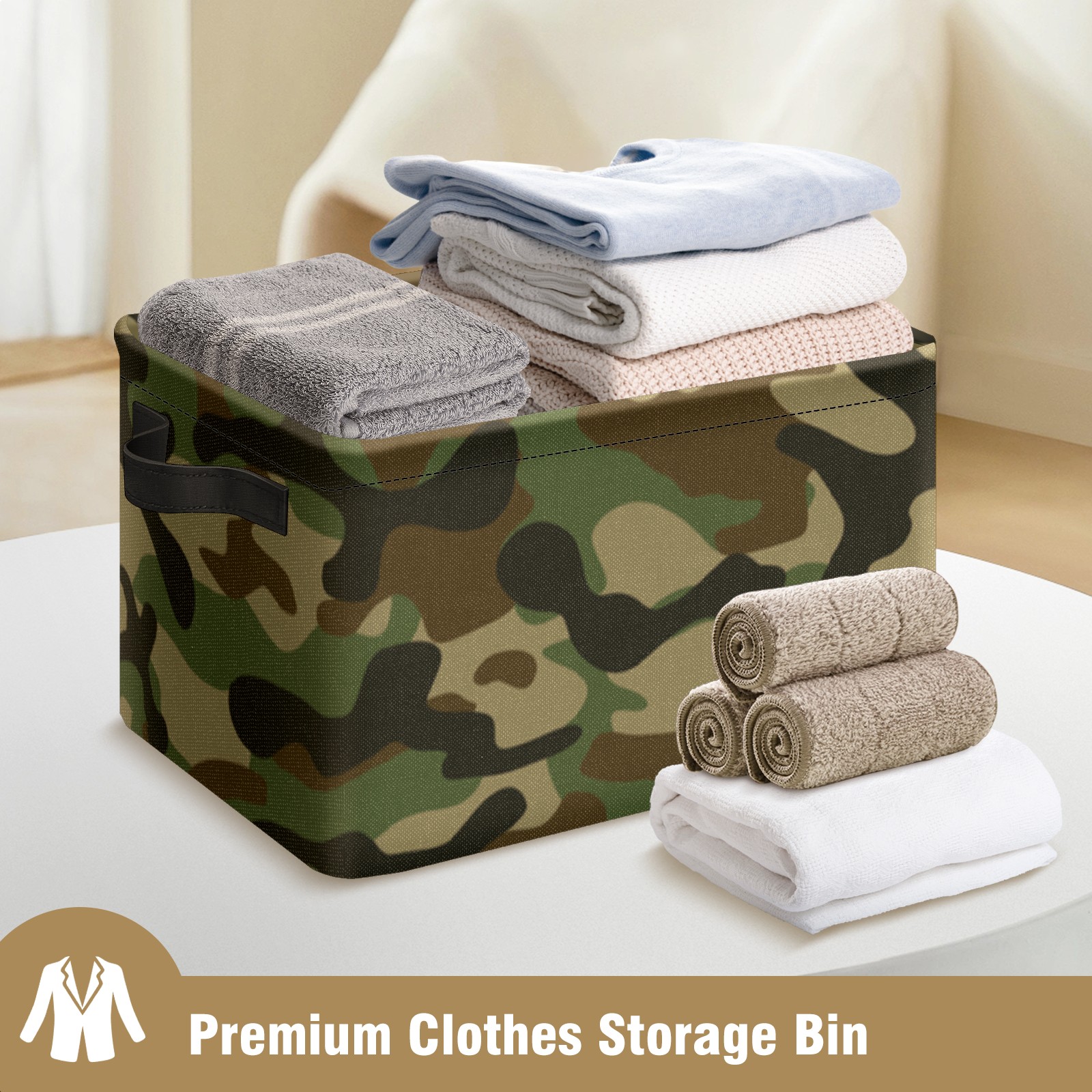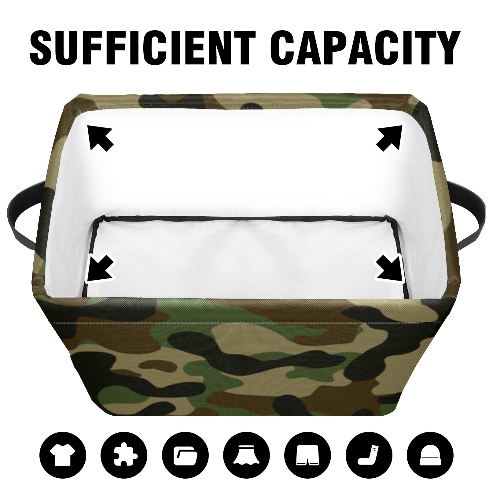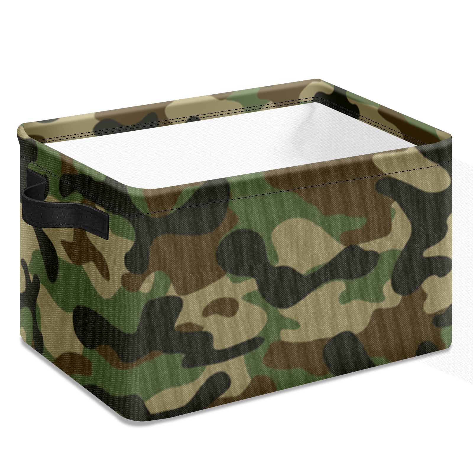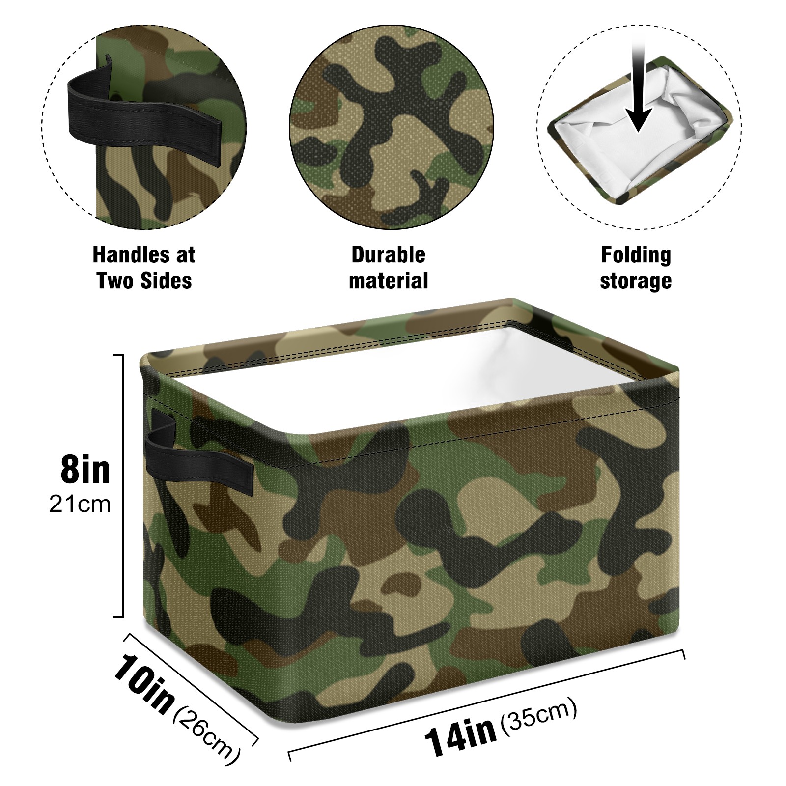 Collapsible 600D Oxford Storage Basket with Camouflage - Metal Frame 10"x14"x8" Reinforced Handles, Multi-Purpose Organizer
