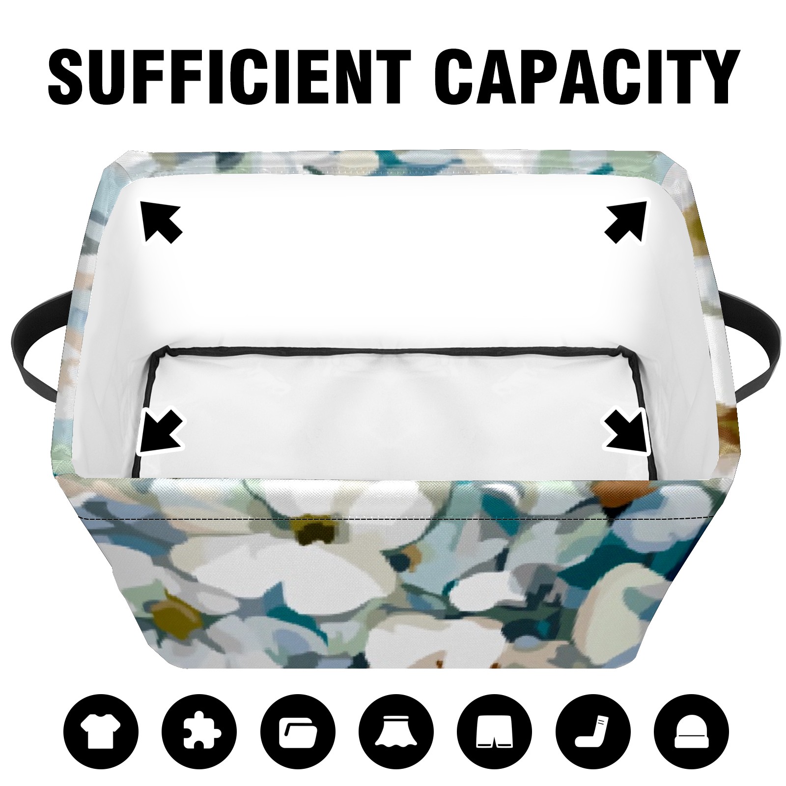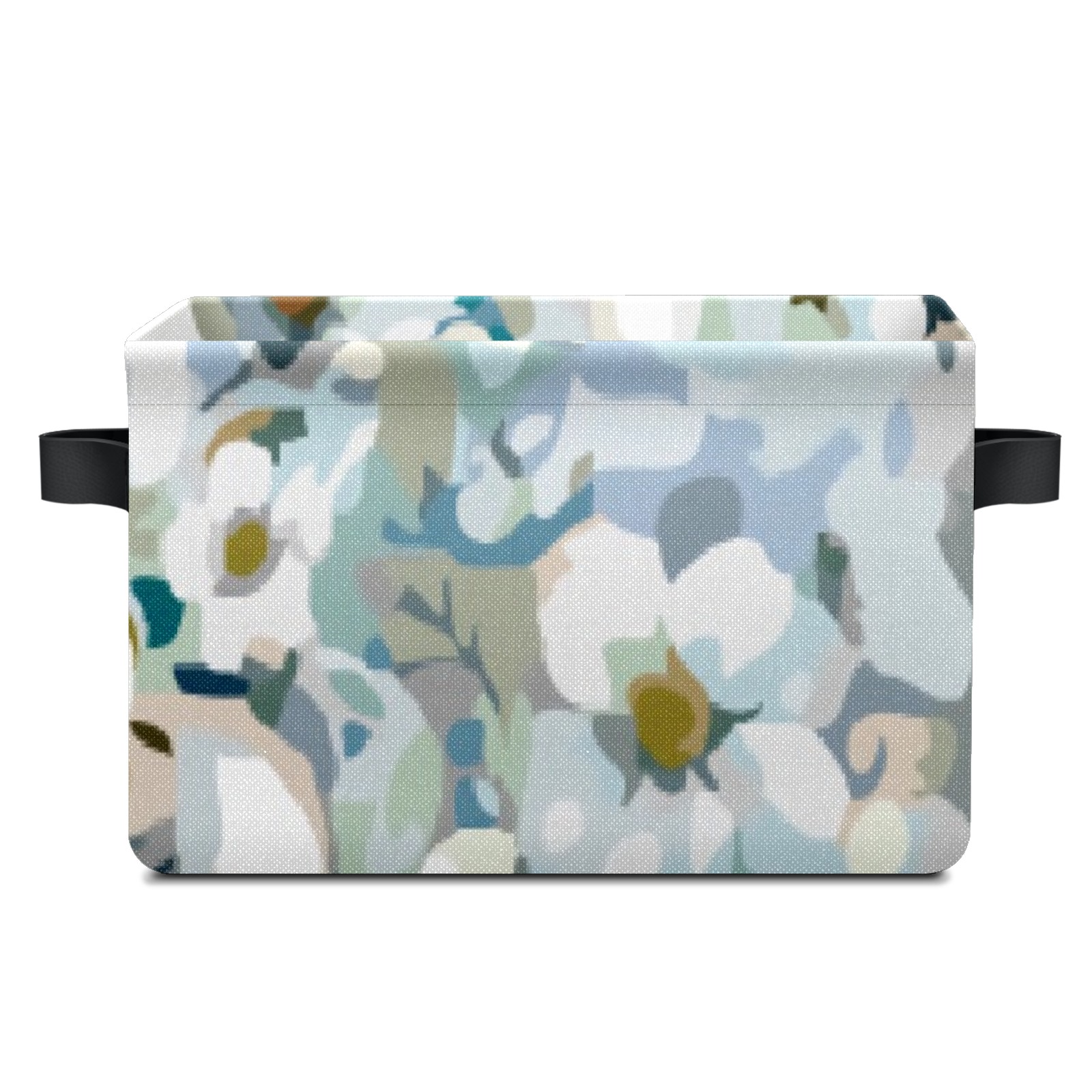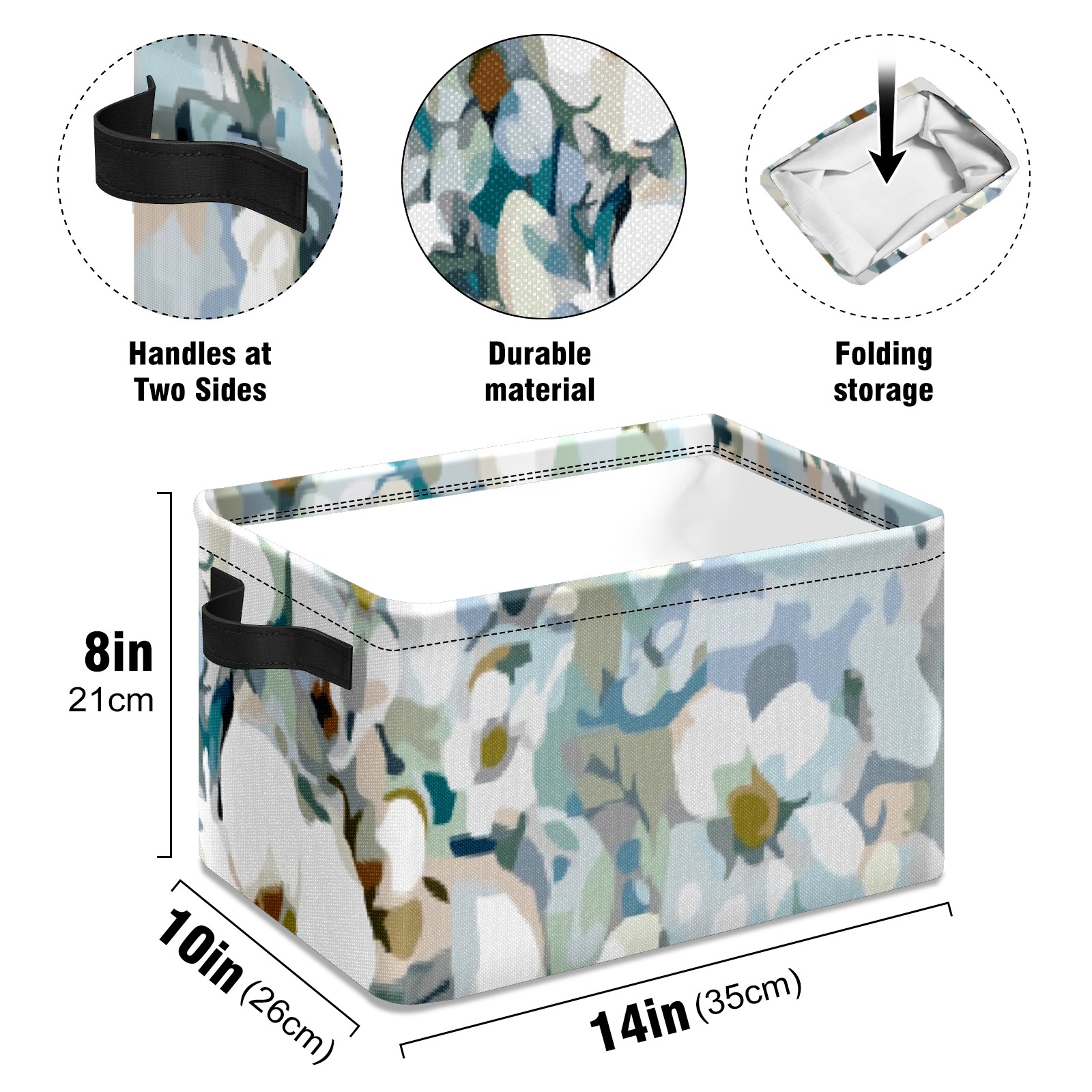 Collapsible 600D Oxford Storage Basket with Blue Vase Flowers - Metal Frame 10"x14"x8" Reinforced Handles, Multi-Purpose Organizer