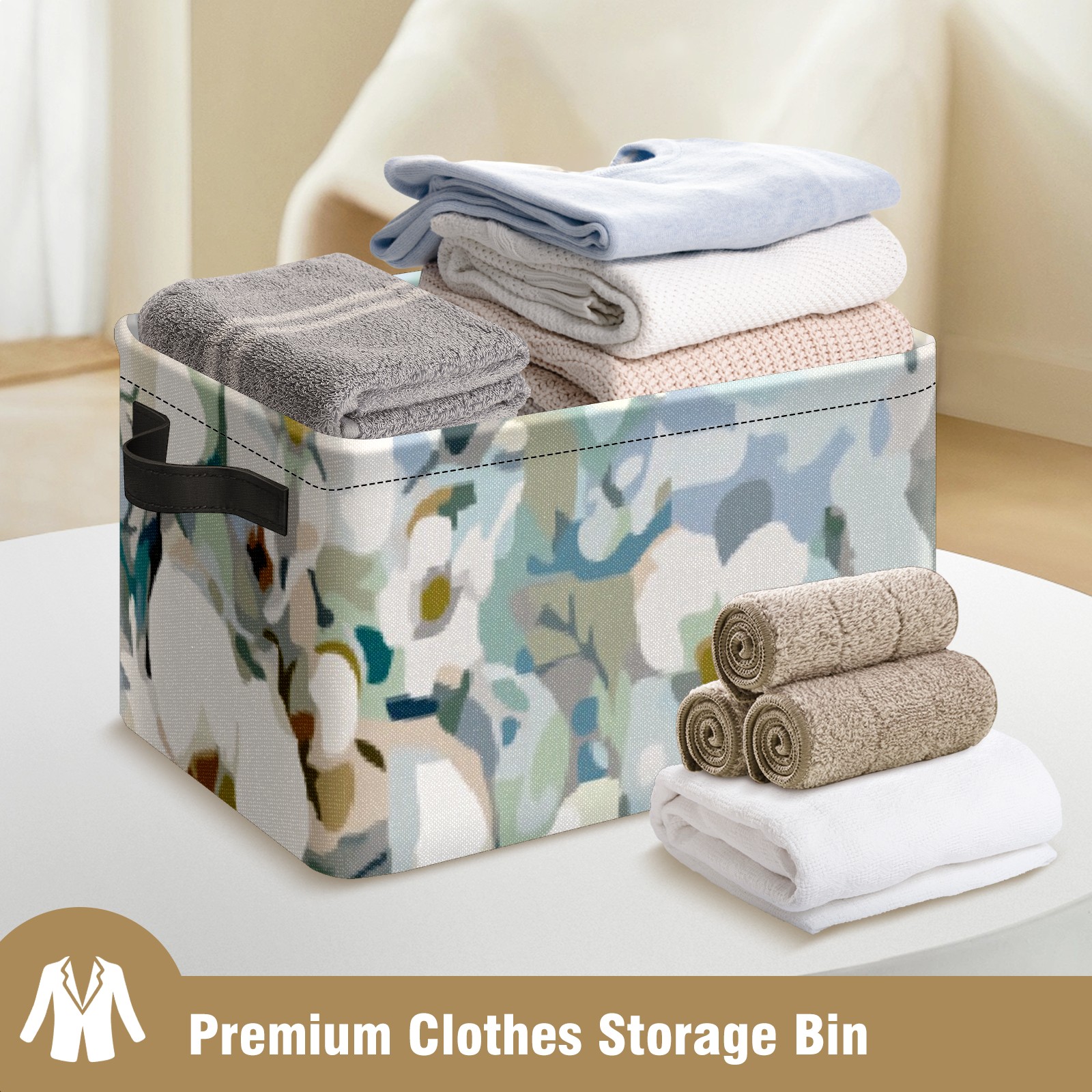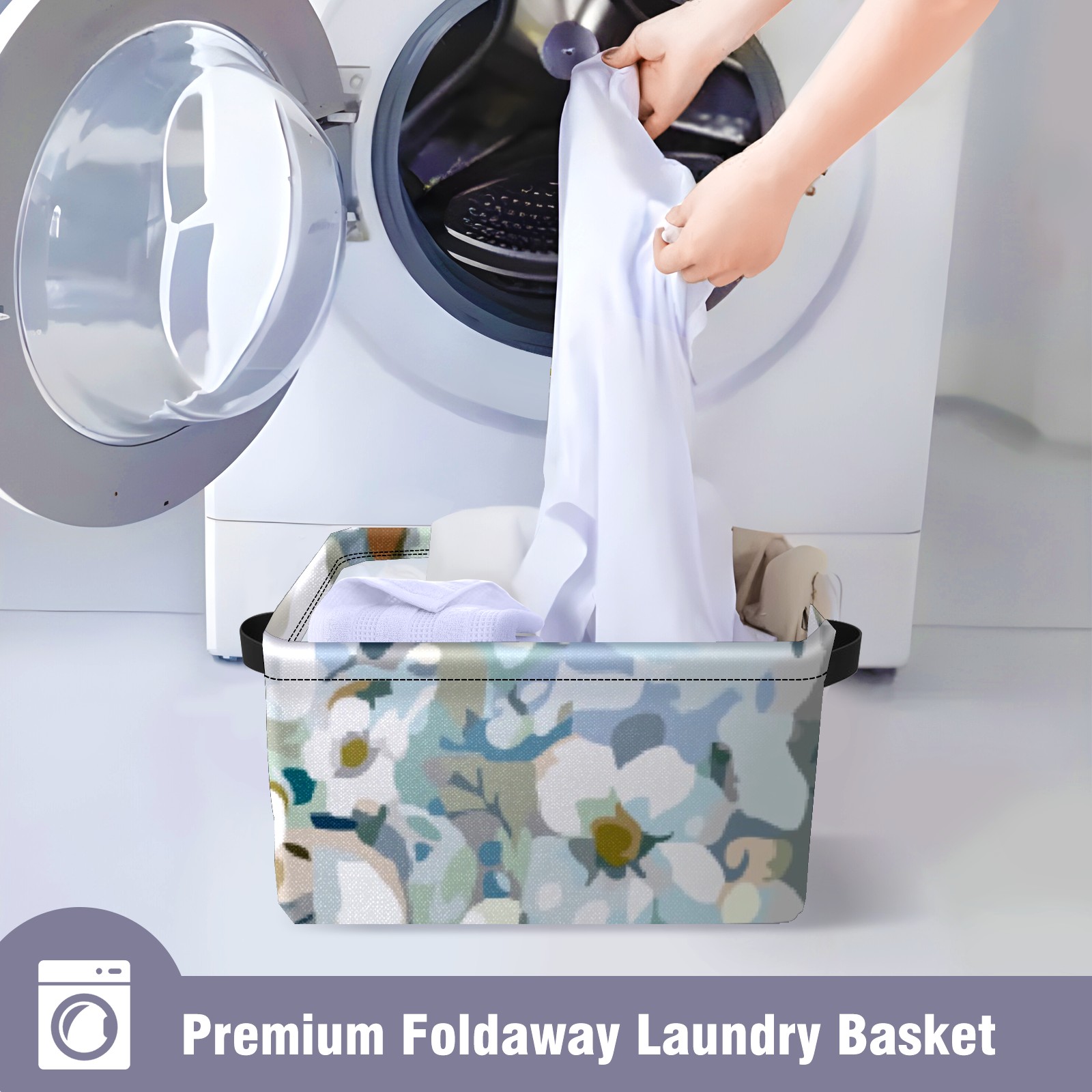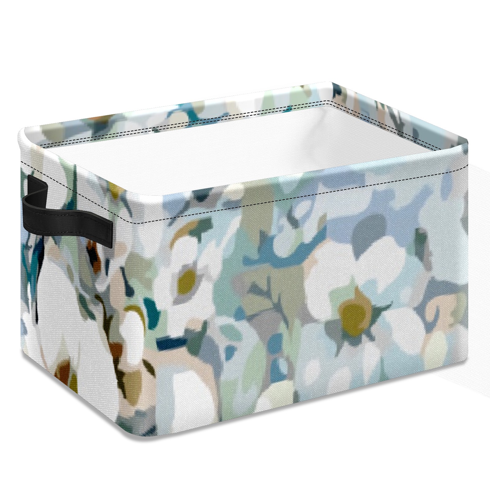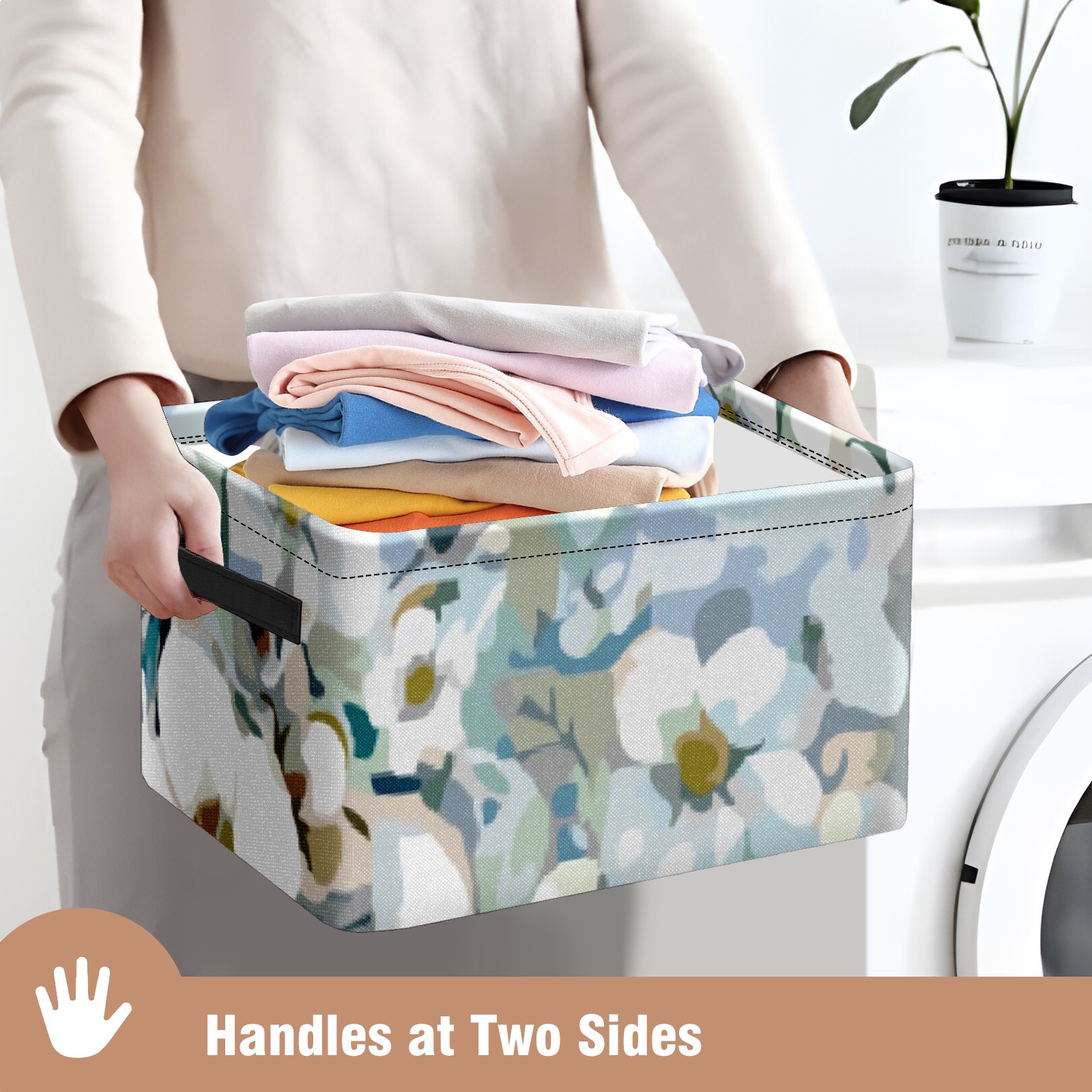 Collapsible 600D Oxford Storage Basket with Blue Vase Flowers - Metal Frame 10"x14"x8" Reinforced Handles, Multi-Purpose Organizer