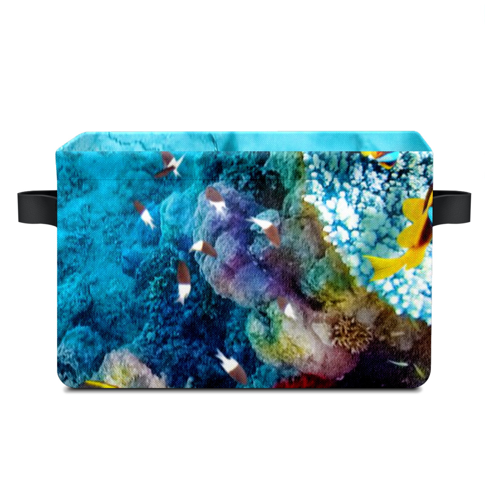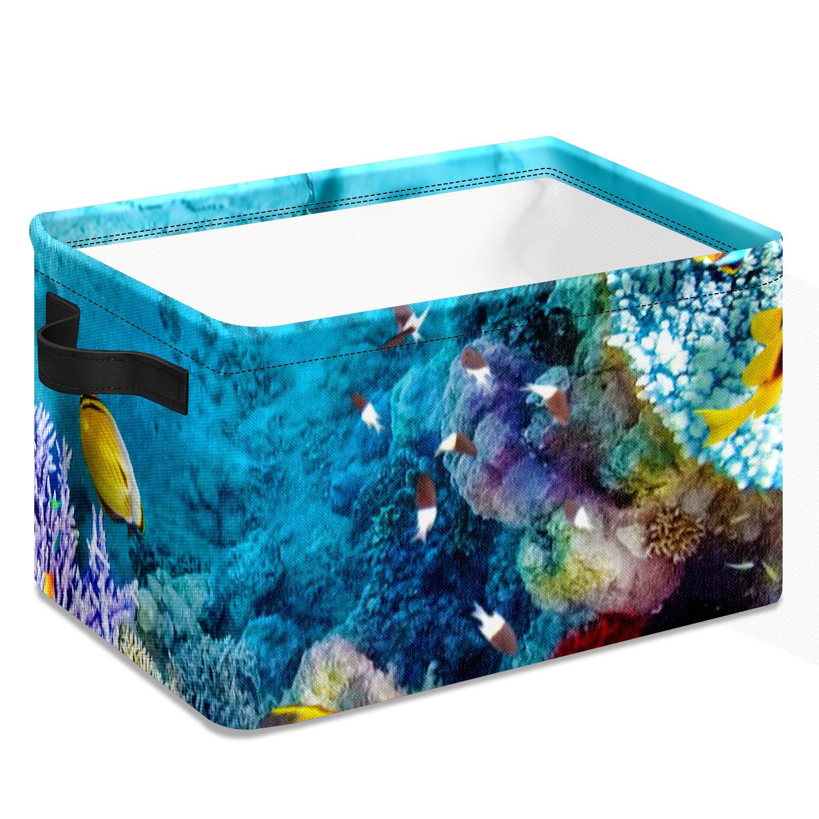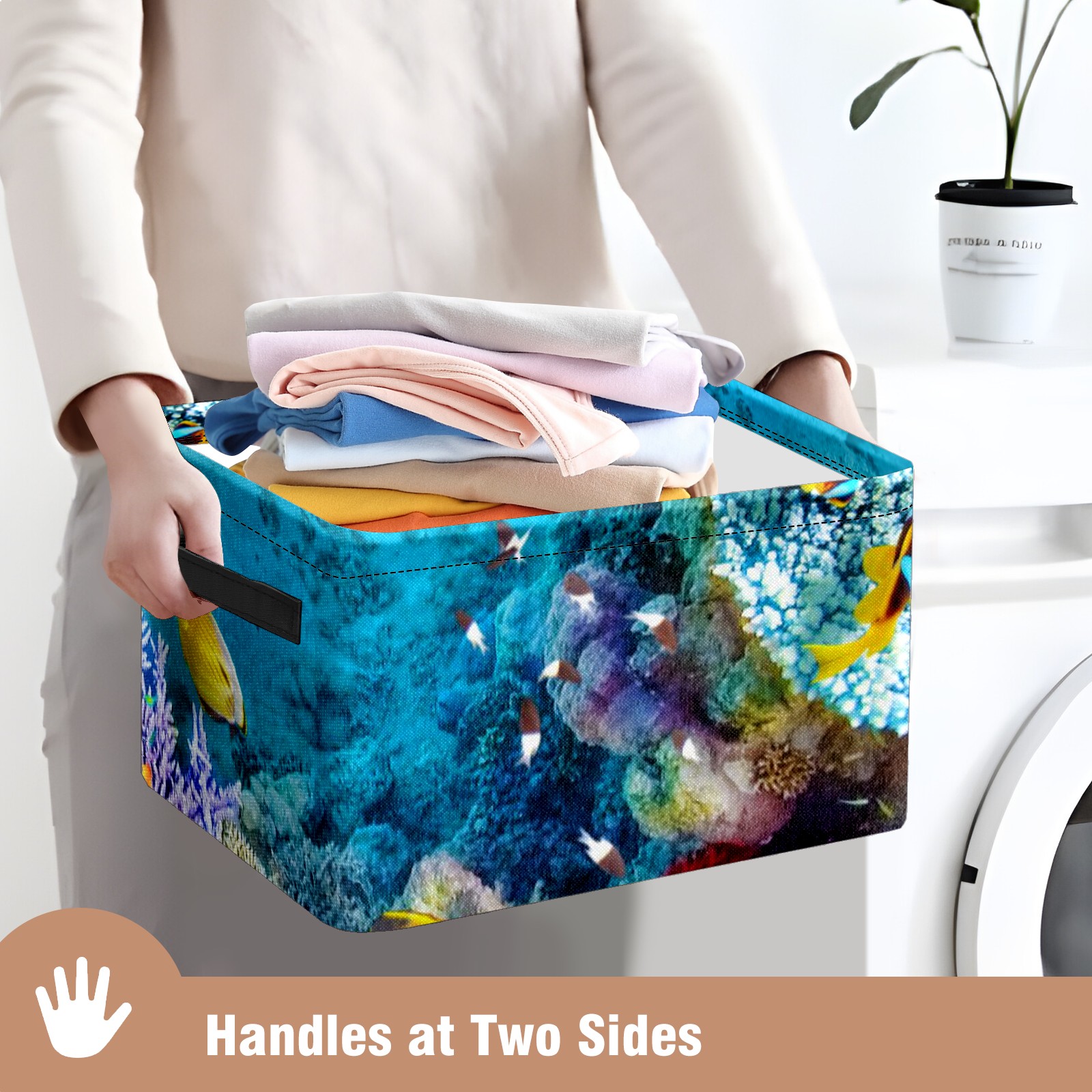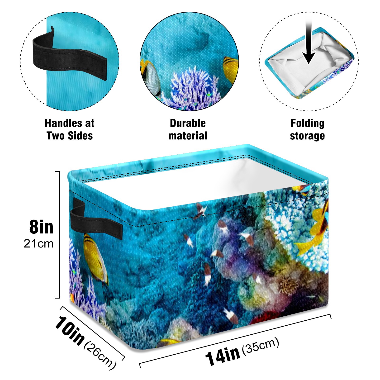 Collapsible 600D Oxford Storage Basket with The Underwater World Coral Reef Fishes Starfish - Metal Frame 10"x14"x8" Reinforced Handles, Multi-Purpose Organizer