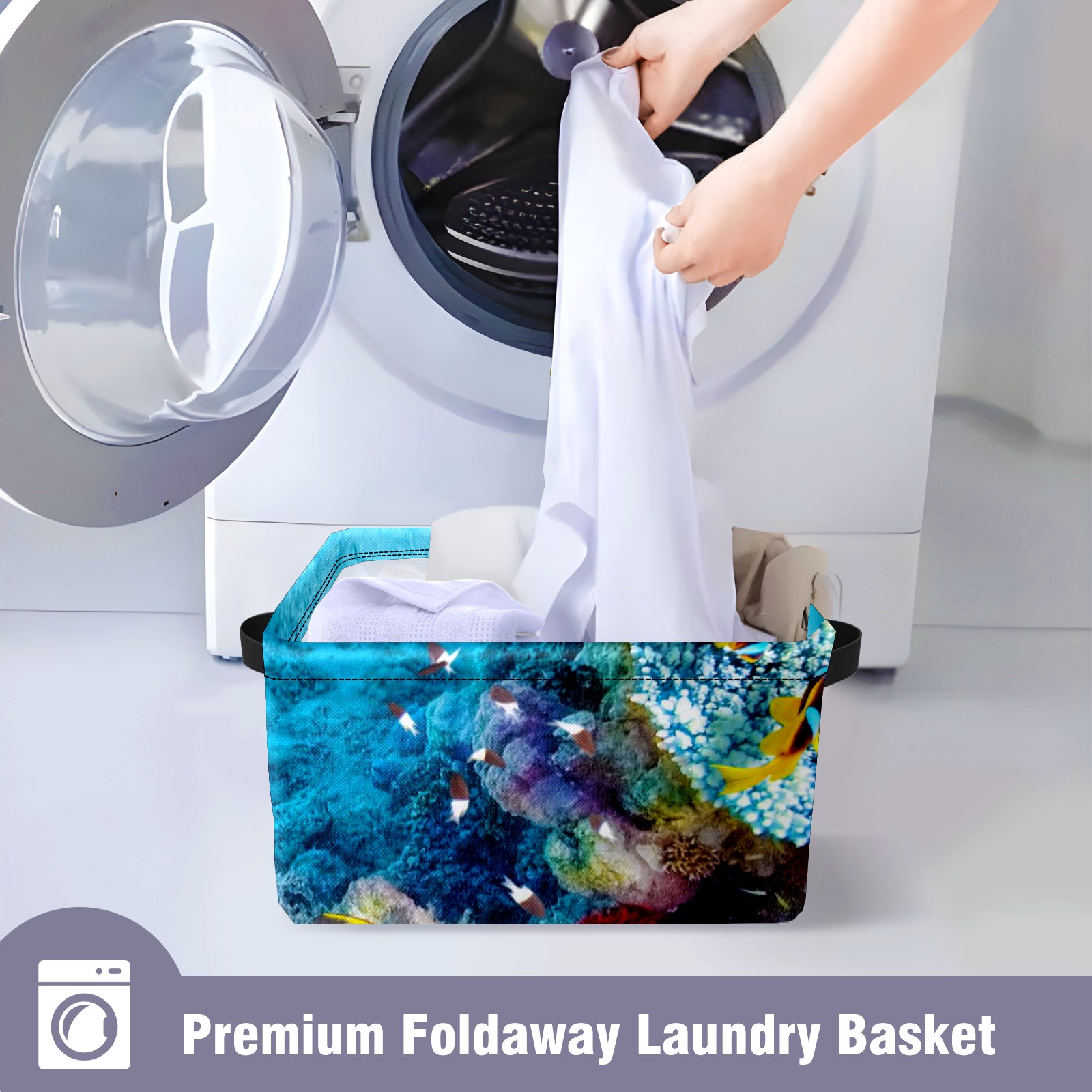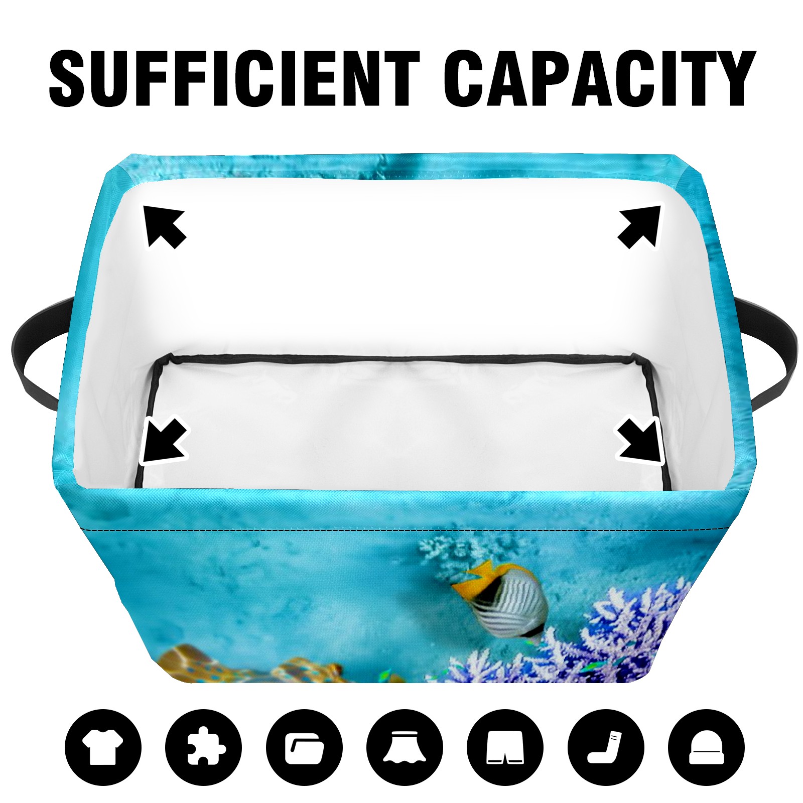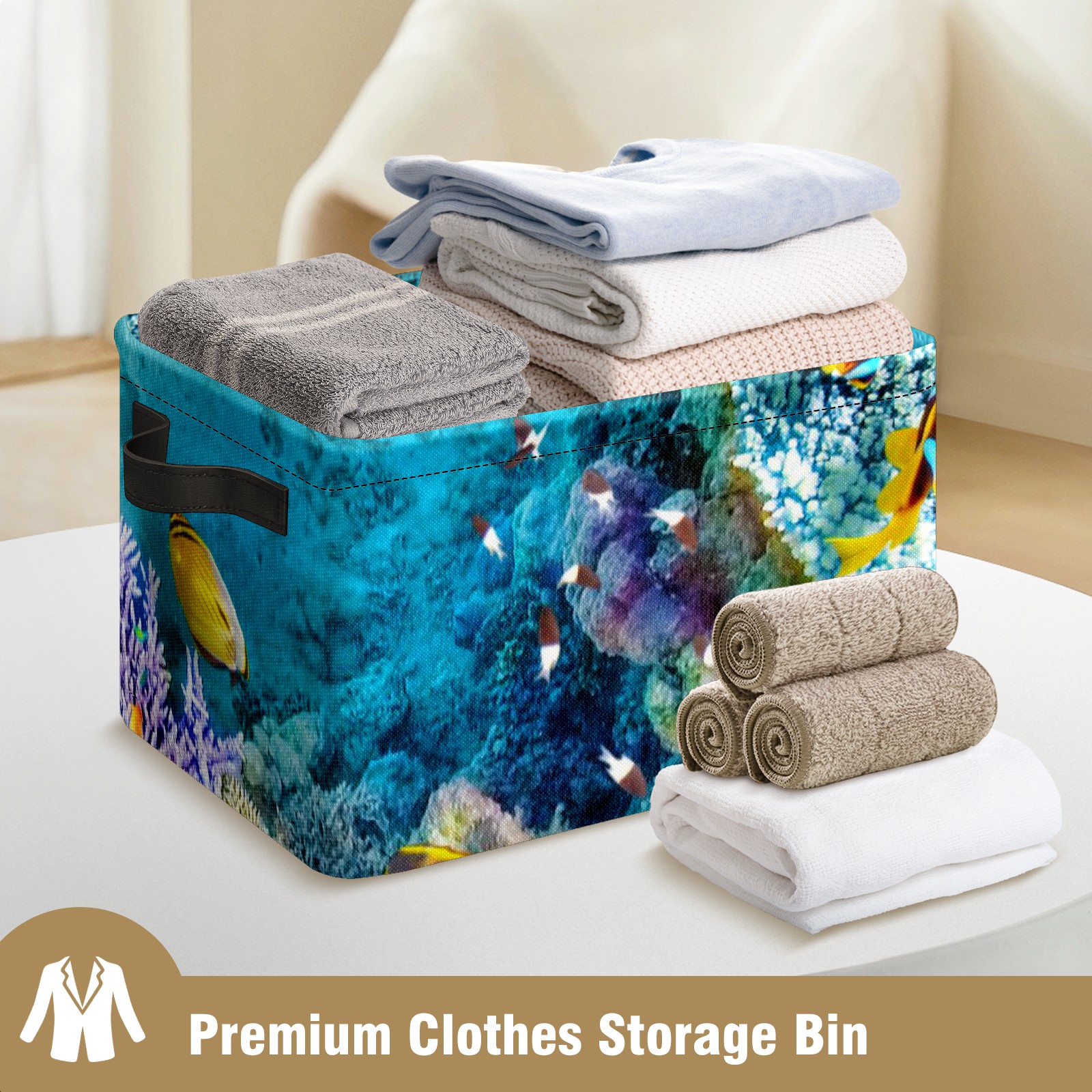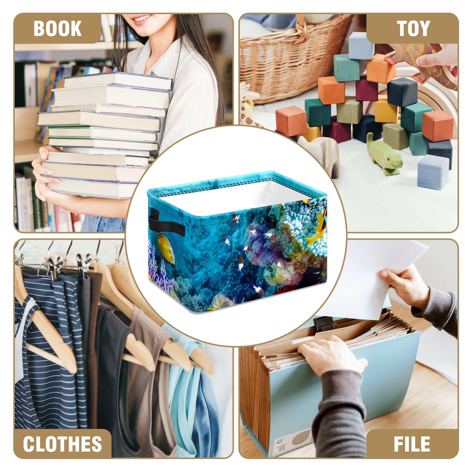 Collapsible 600D Oxford Storage Basket with The Underwater World Coral Reef Fishes Starfish - Metal Frame 10"x14"x8" Reinforced Handles, Multi-Purpose Organizer