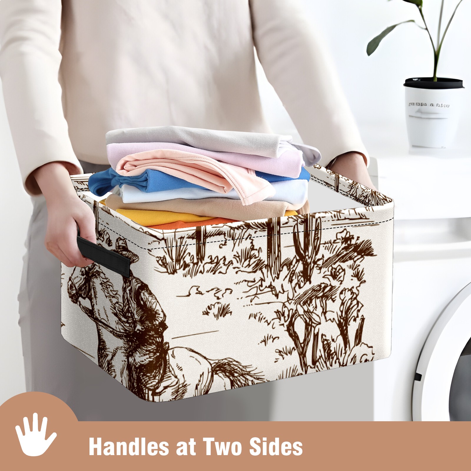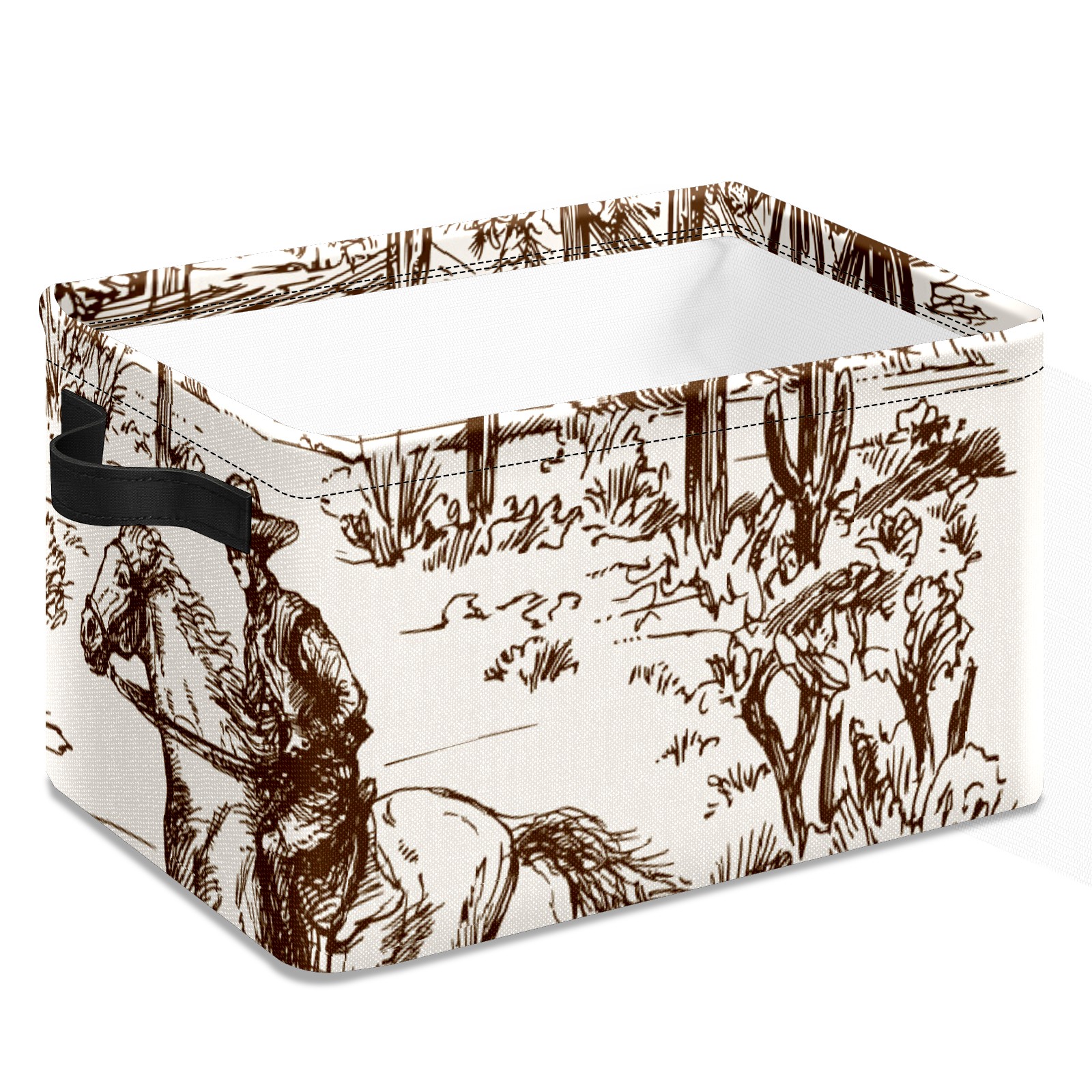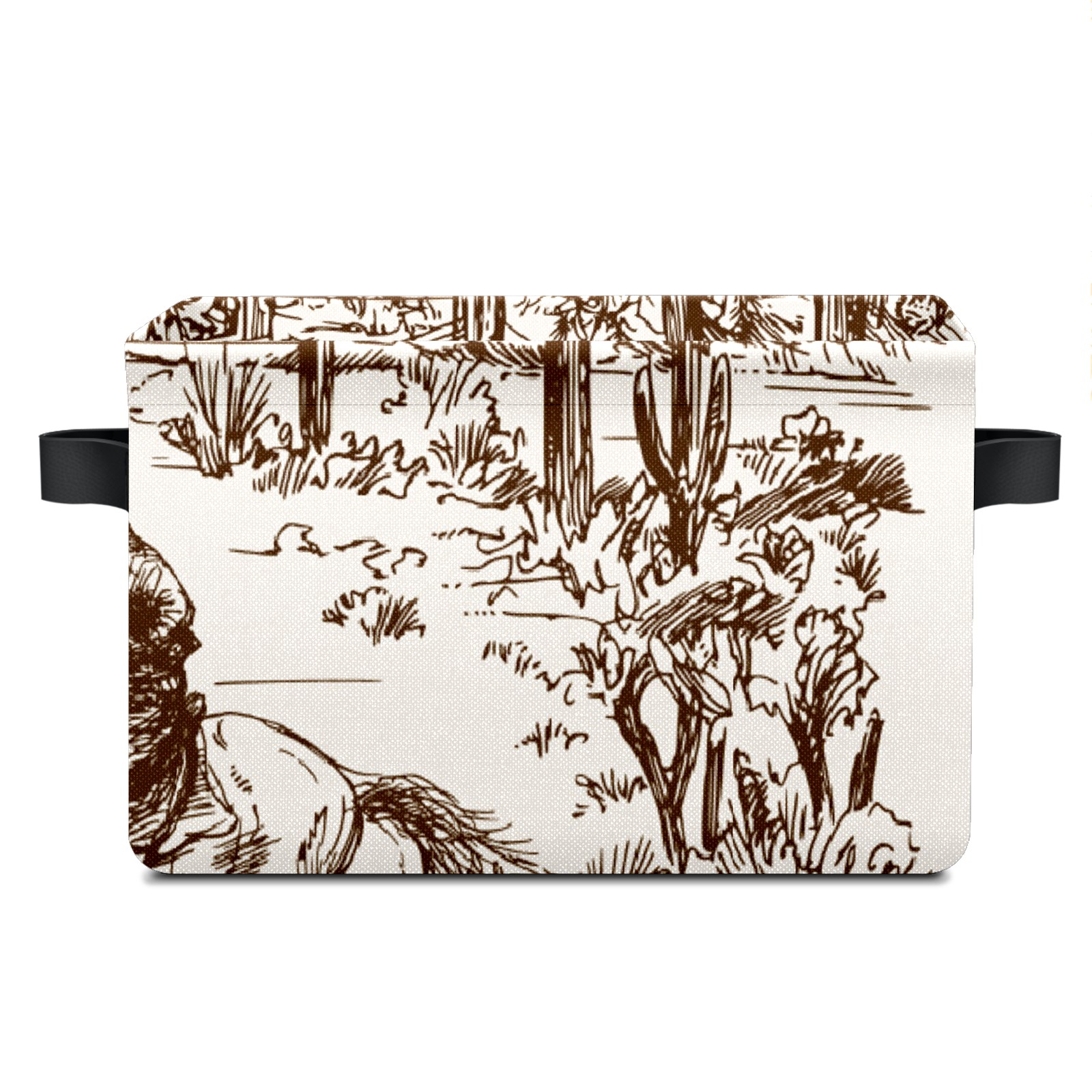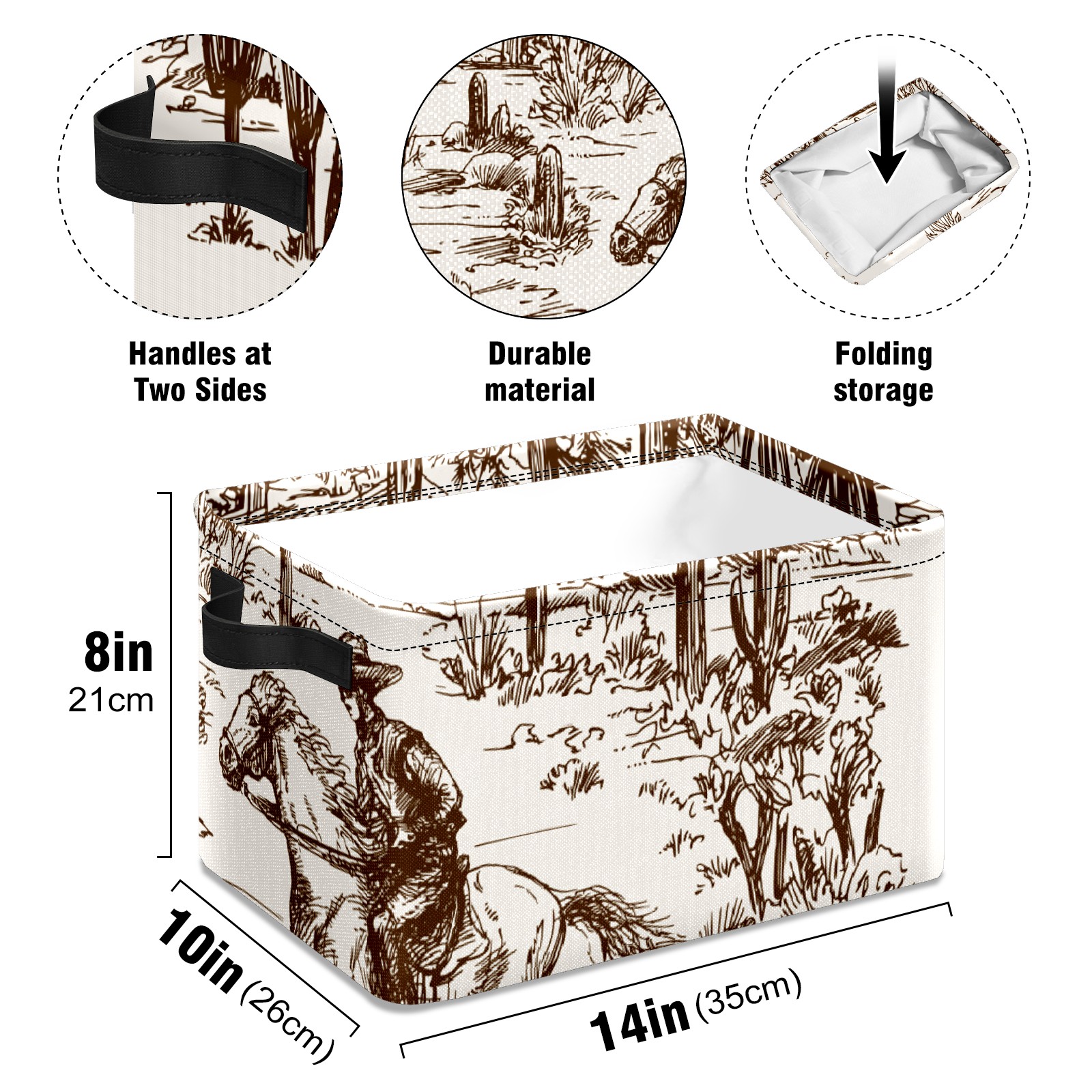 Collapsible 600D Oxford Storage Basket with Wild West Desert With Cowboy - Metal Frame 10"x14"x8" Reinforced Handles, Multi-Purpose Organizer