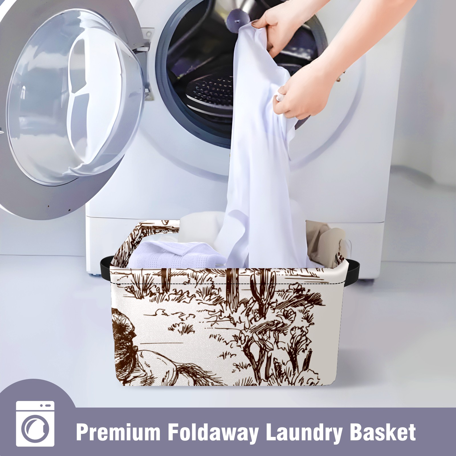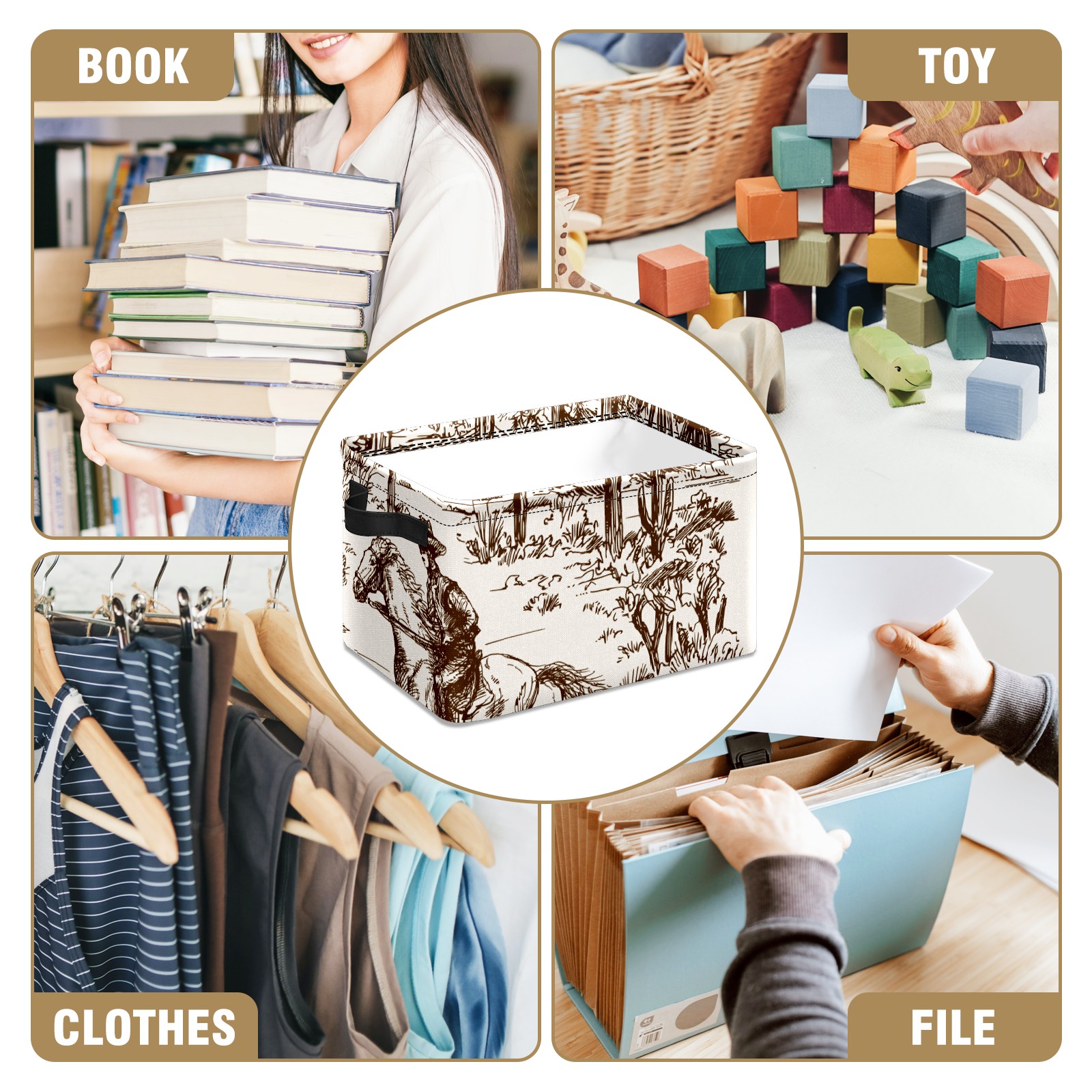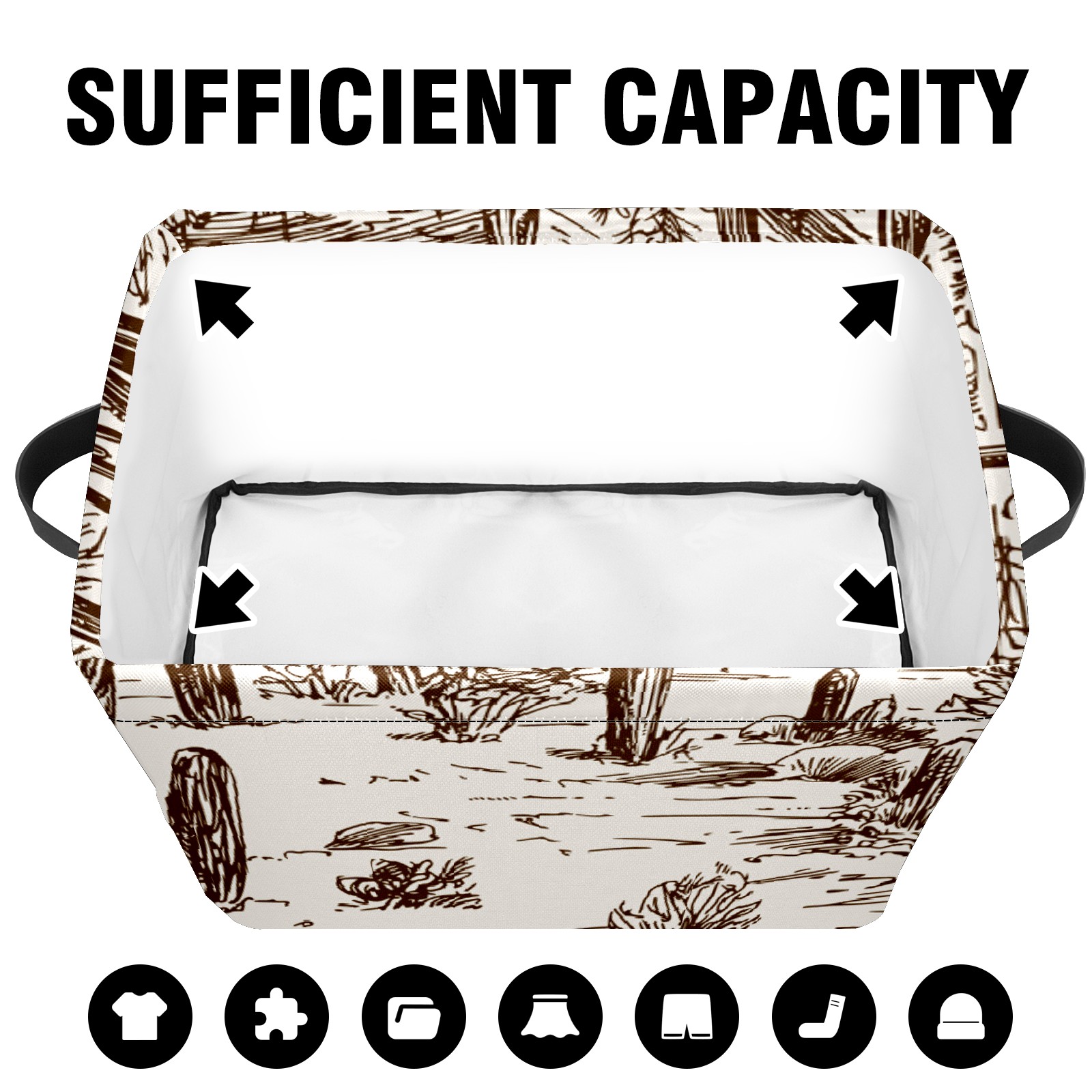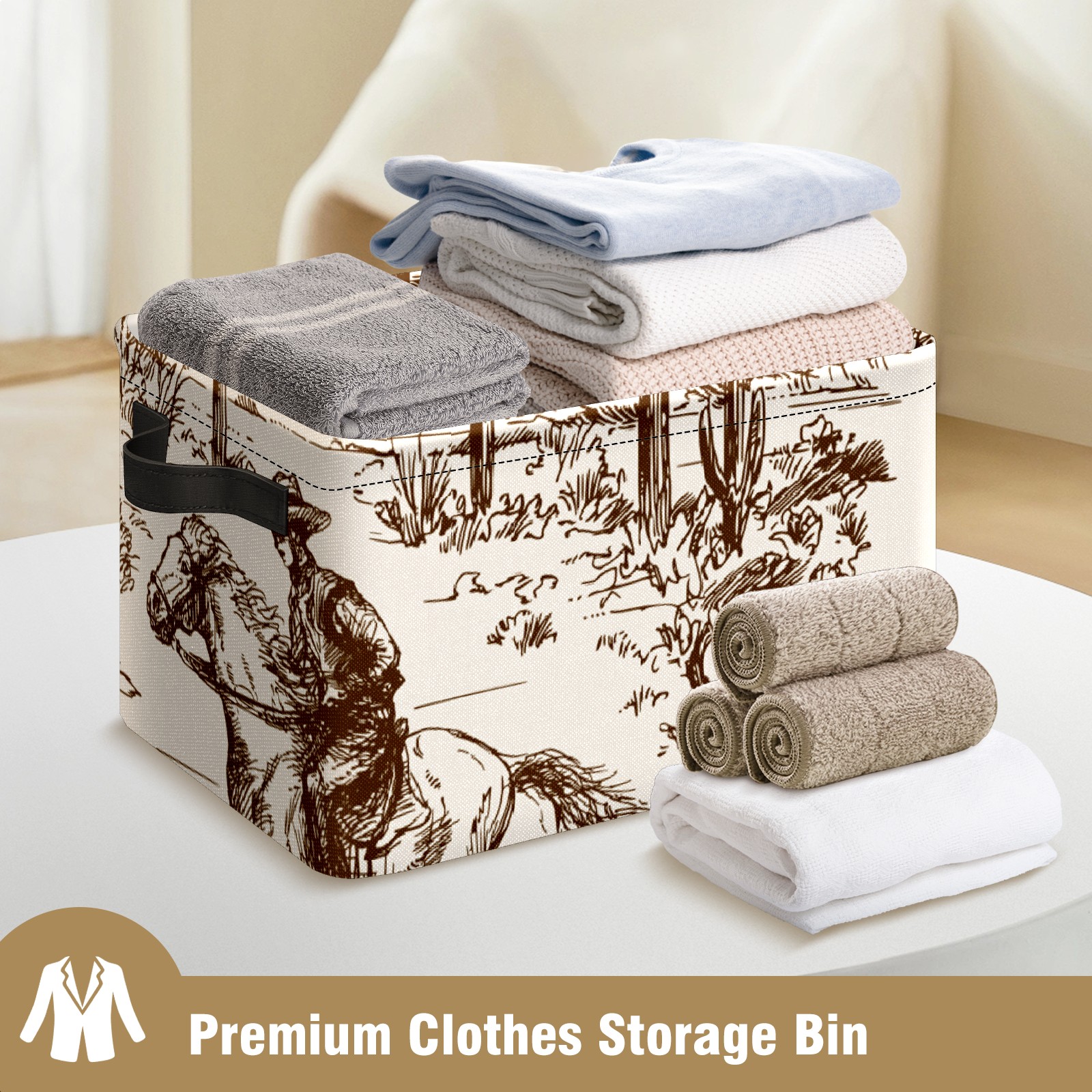 Collapsible 600D Oxford Storage Basket with Wild West Desert With Cowboy - Metal Frame 10"x14"x8" Reinforced Handles, Multi-Purpose Organizer