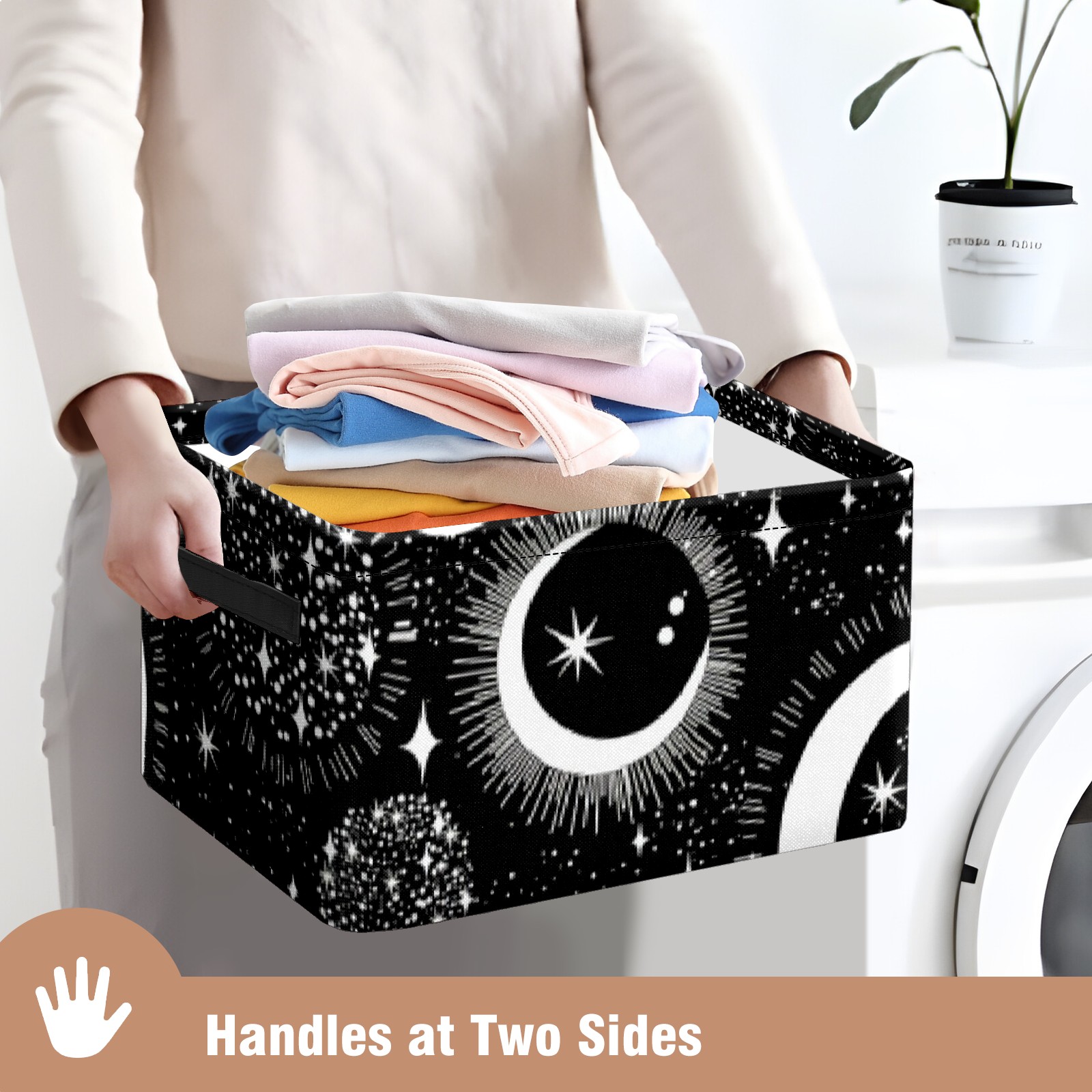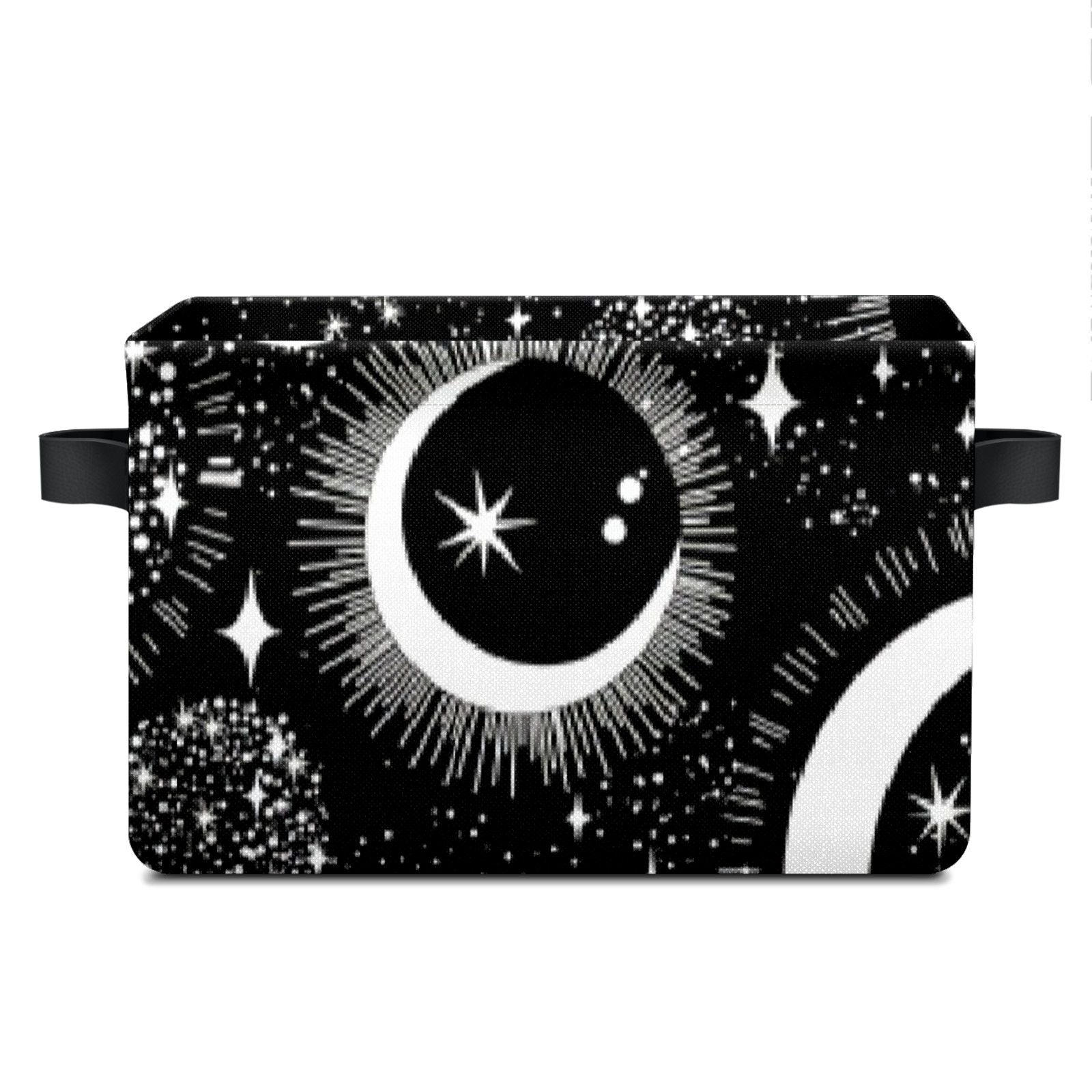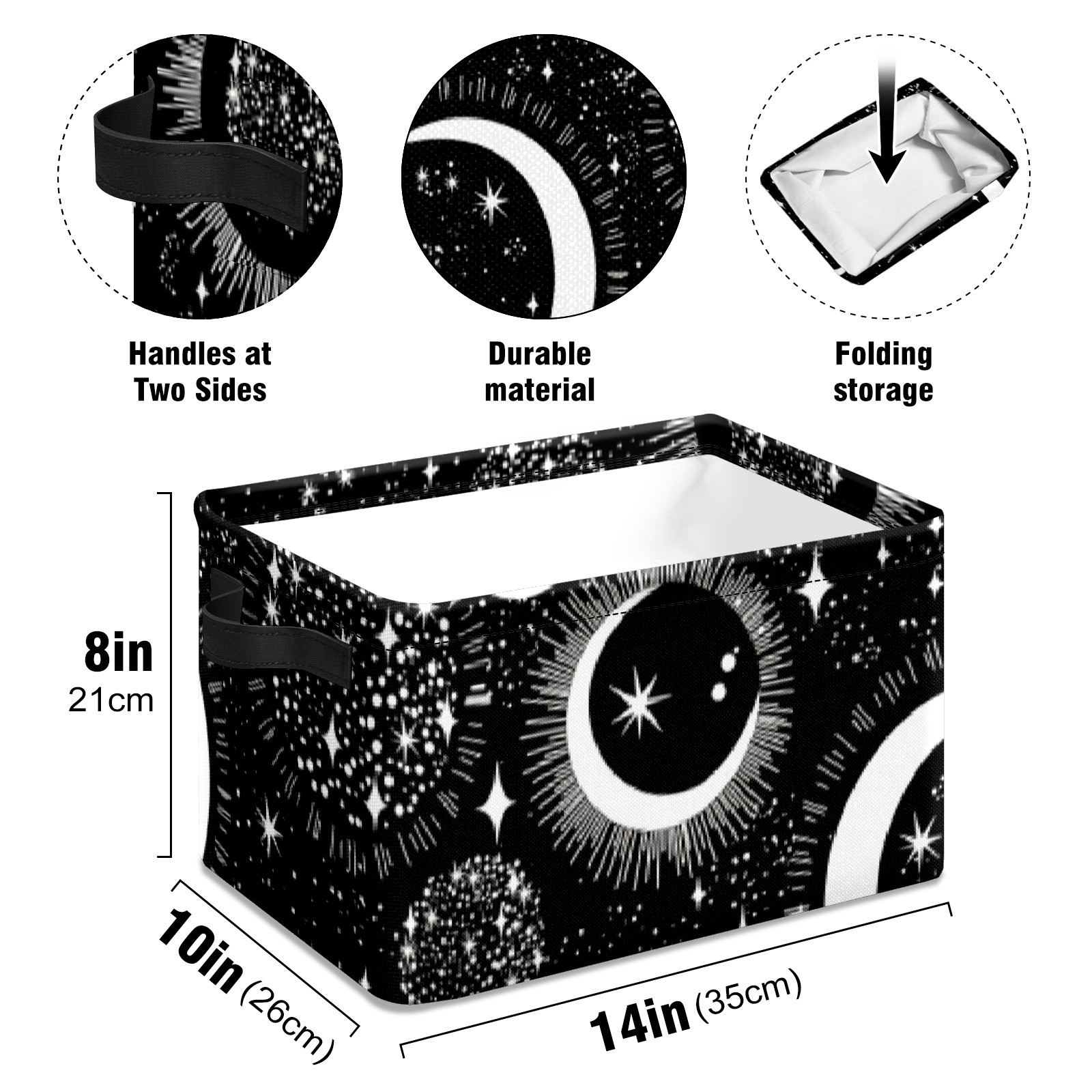 Collapsible 600D Oxford Storage Basket with Gothic Moon Stars Boho - Metal Frame 10"x14"x8" Reinforced Handles, Multi-Purpose Organizer