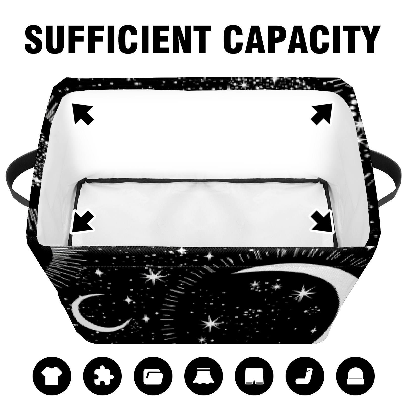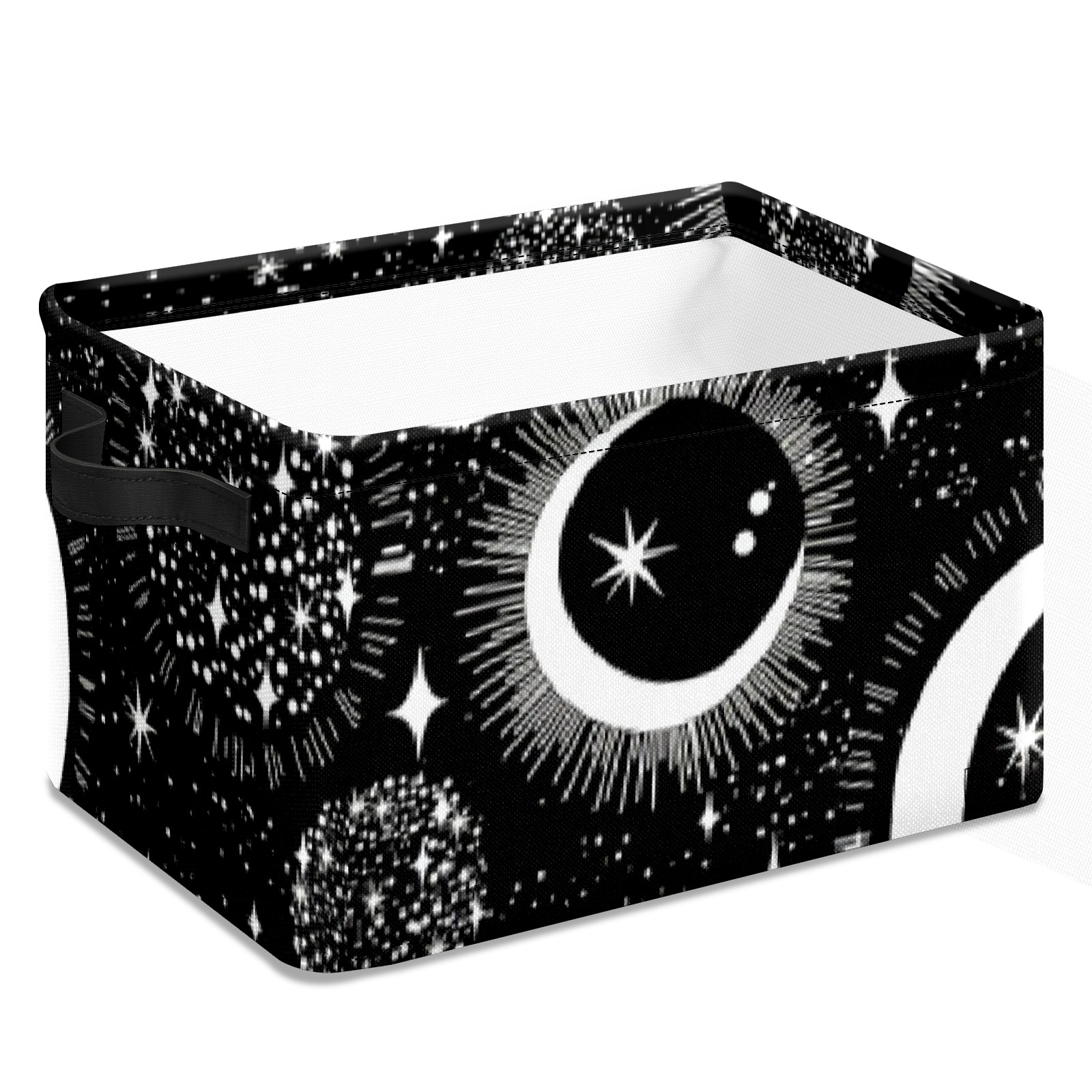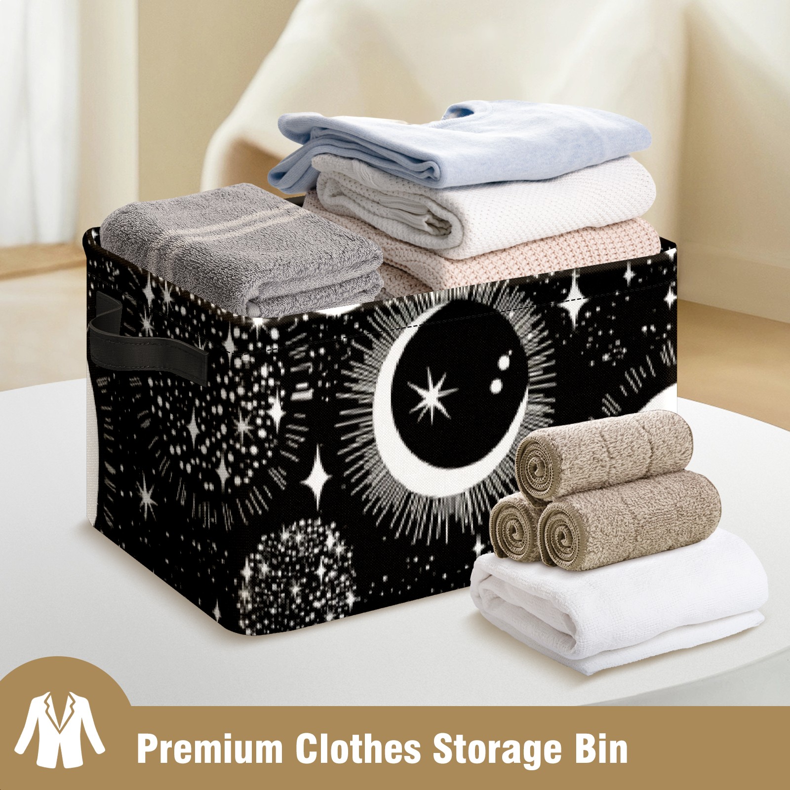 Collapsible 600D Oxford Storage Basket with Gothic Moon Stars Boho - Metal Frame 10"x14"x8" Reinforced Handles, Multi-Purpose Organizer