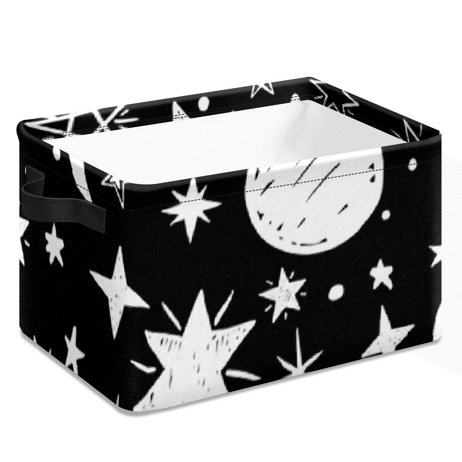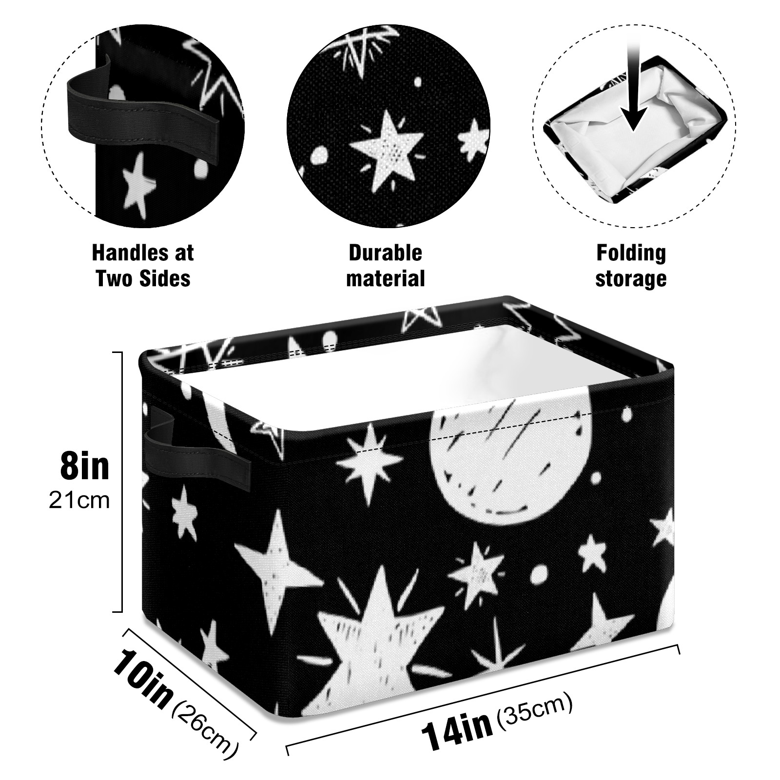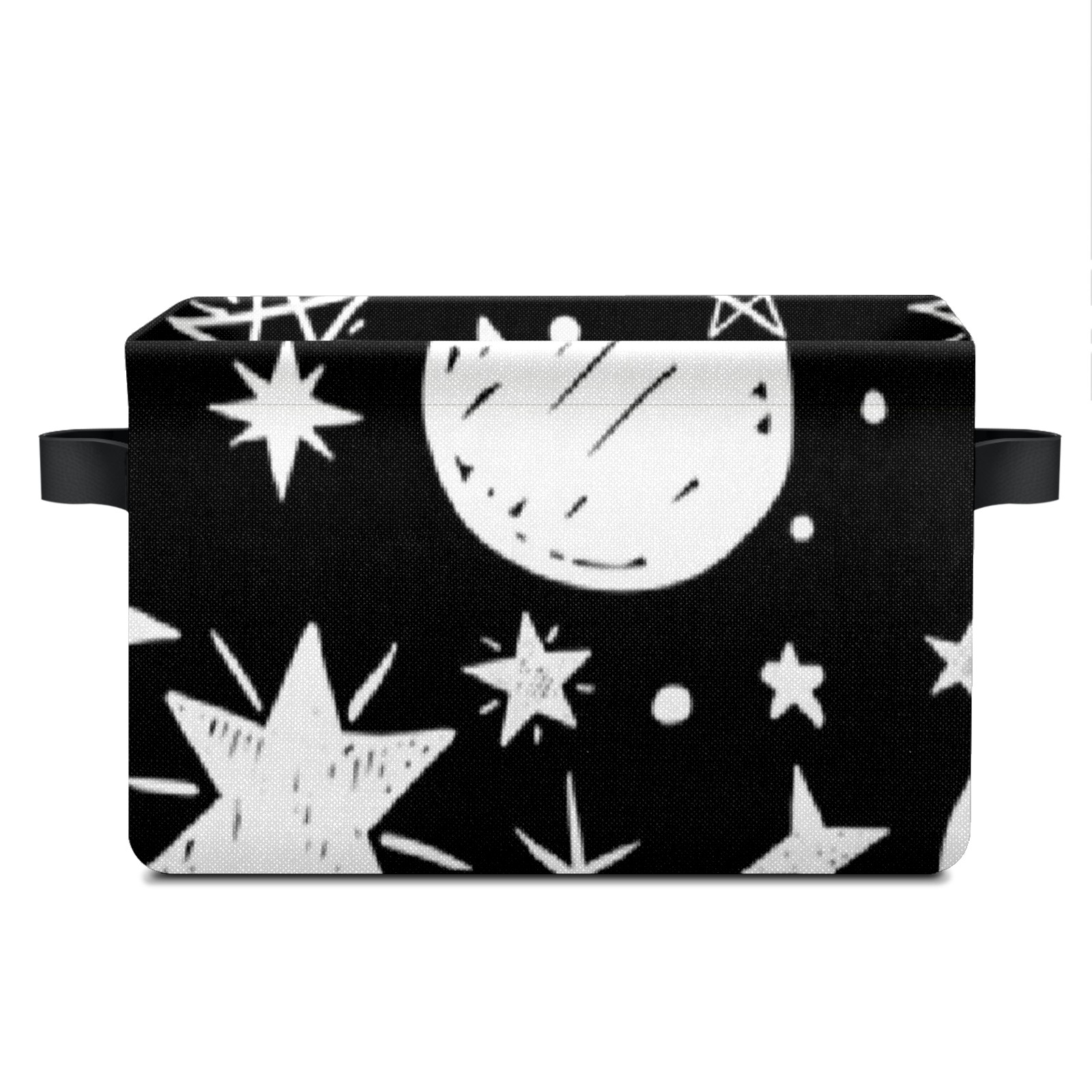 Collapsible 600D Oxford Storage Basket with Gothic Black White Moon Stars - Metal Frame 10"x14"x8" Reinforced Handles, Multi-Purpose Organizer