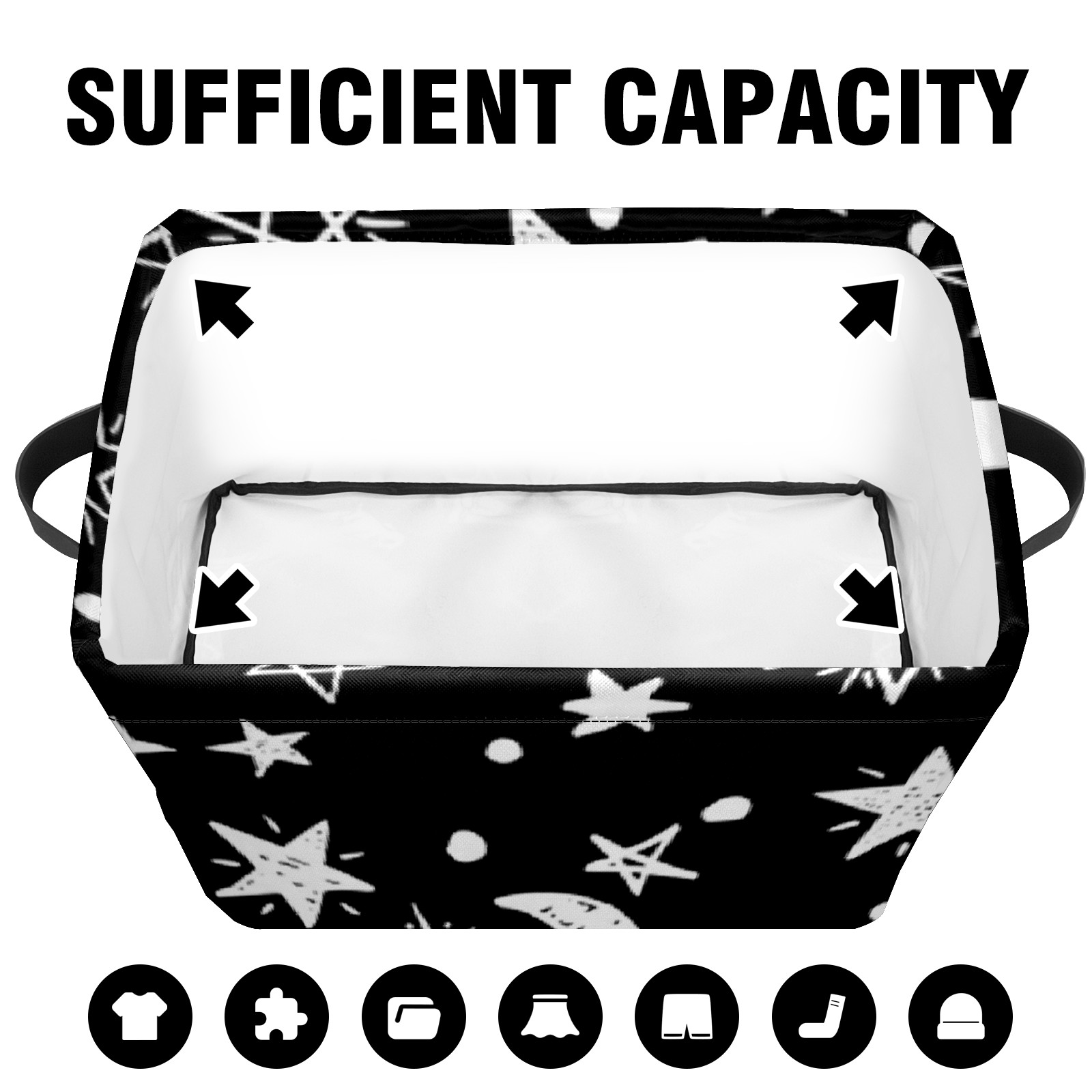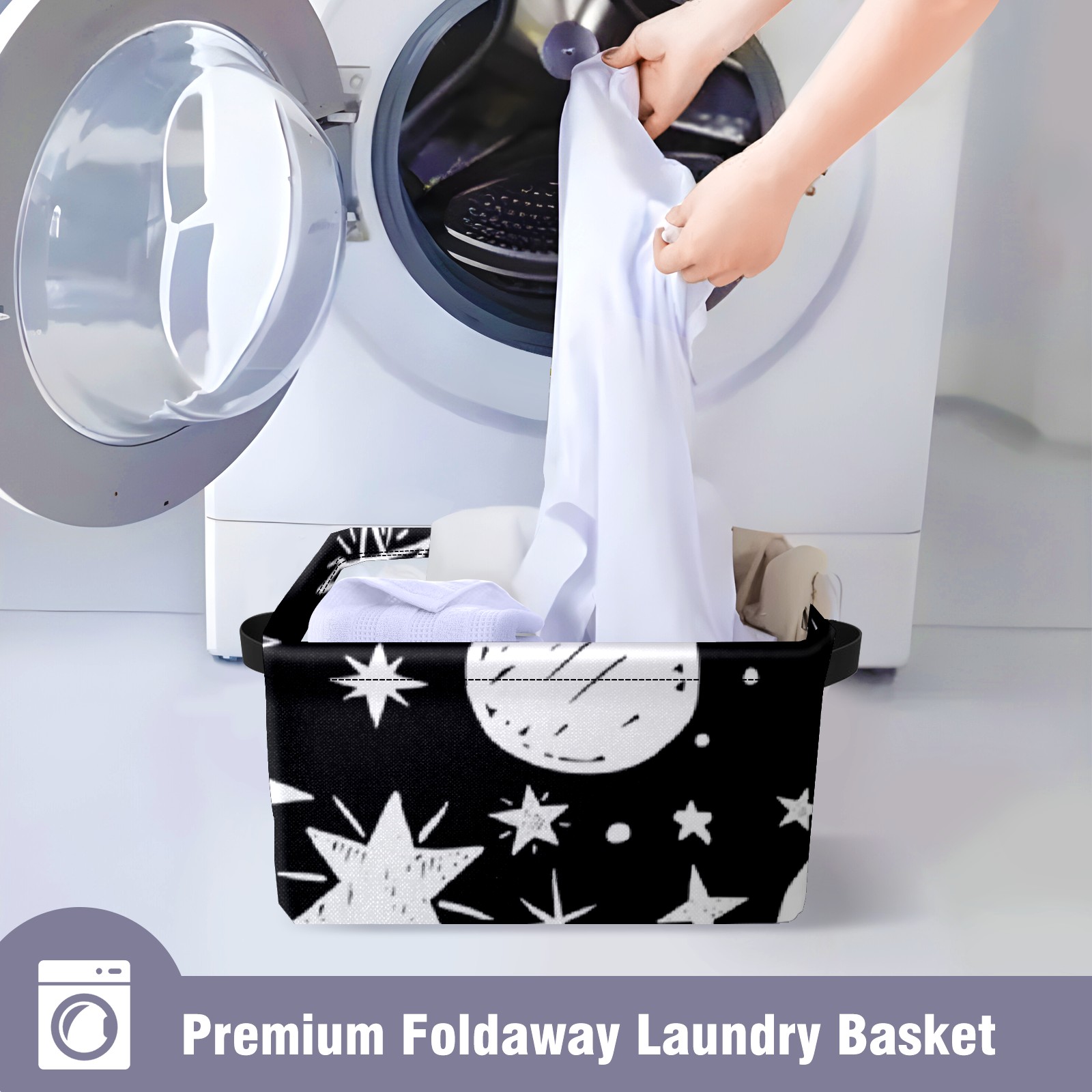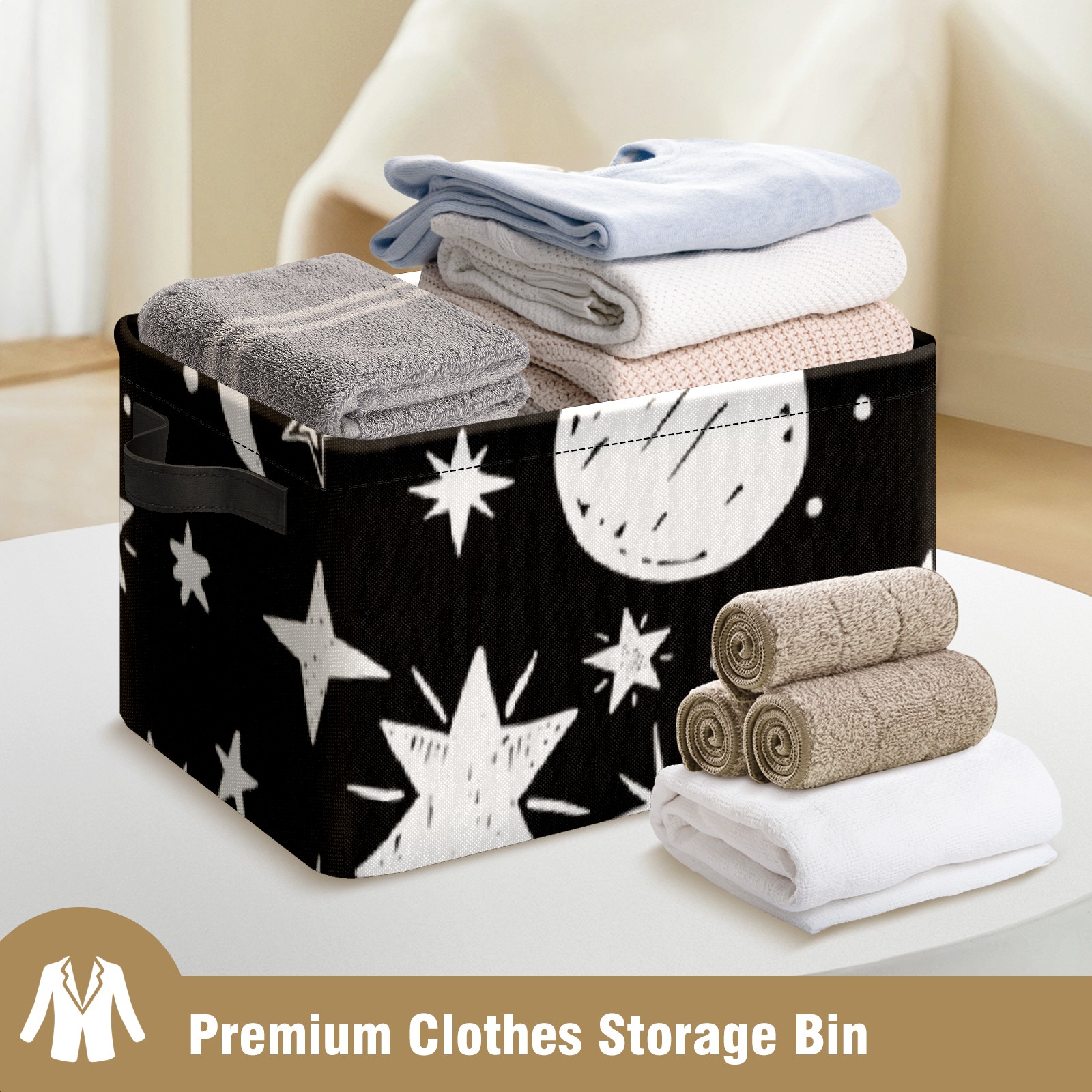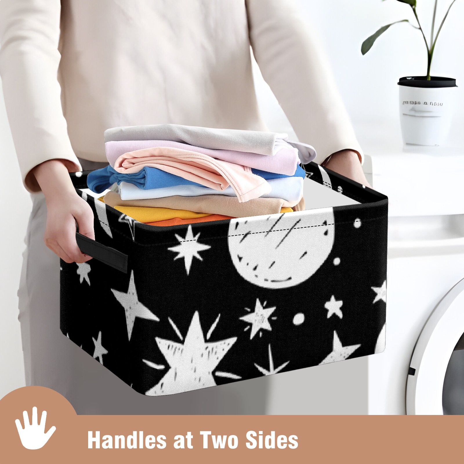 Collapsible 600D Oxford Storage Basket with Gothic Black White Moon Stars - Metal Frame 10"x14"x8" Reinforced Handles, Multi-Purpose Organizer