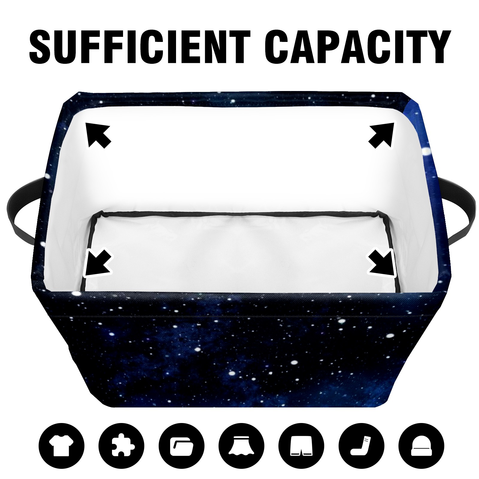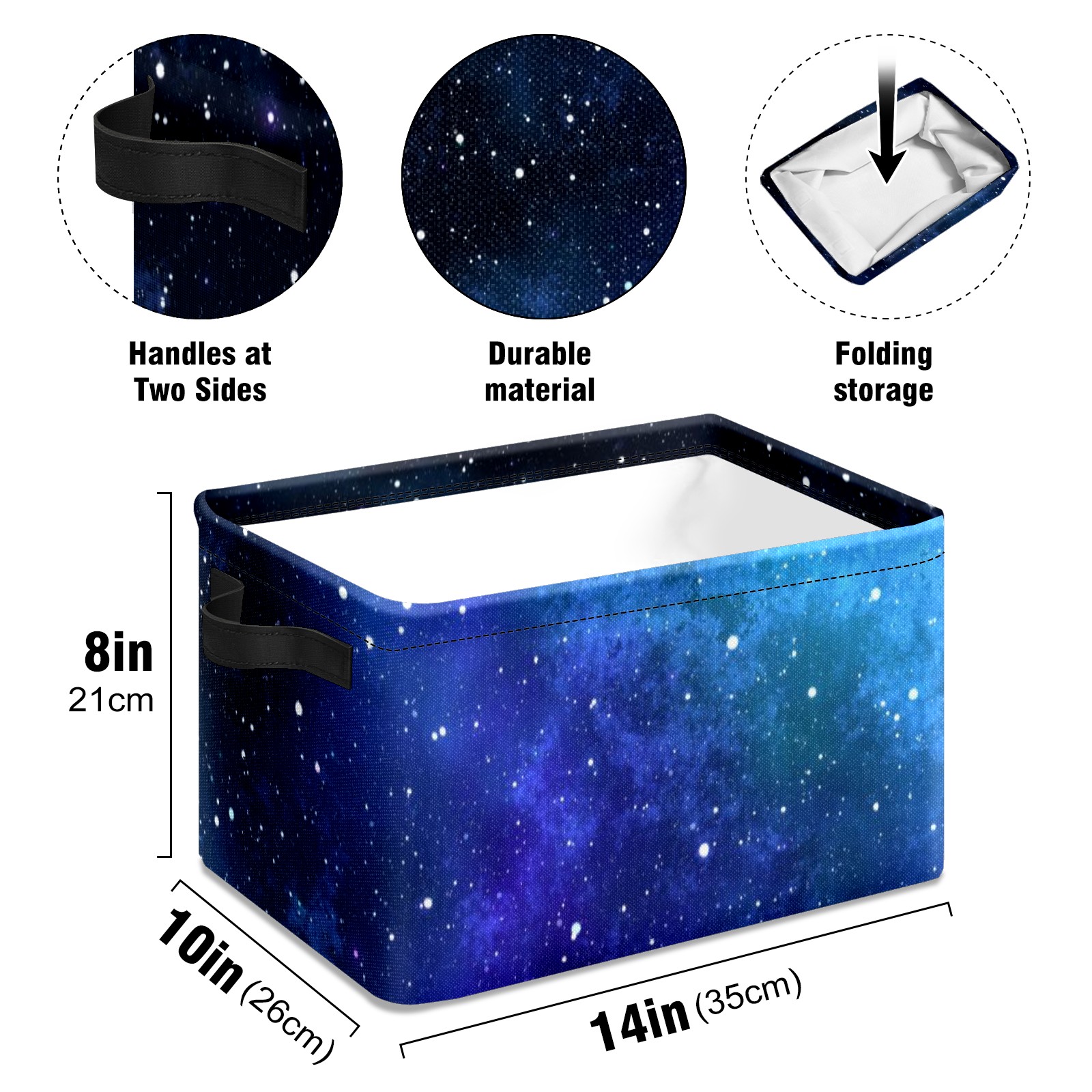 Collapsible 600D Oxford Storage Basket with Purple Blue Night Stars Sky Universe - Metal Frame 10"x14"x8" Reinforced Handles, Multi-Purpose Organizer
