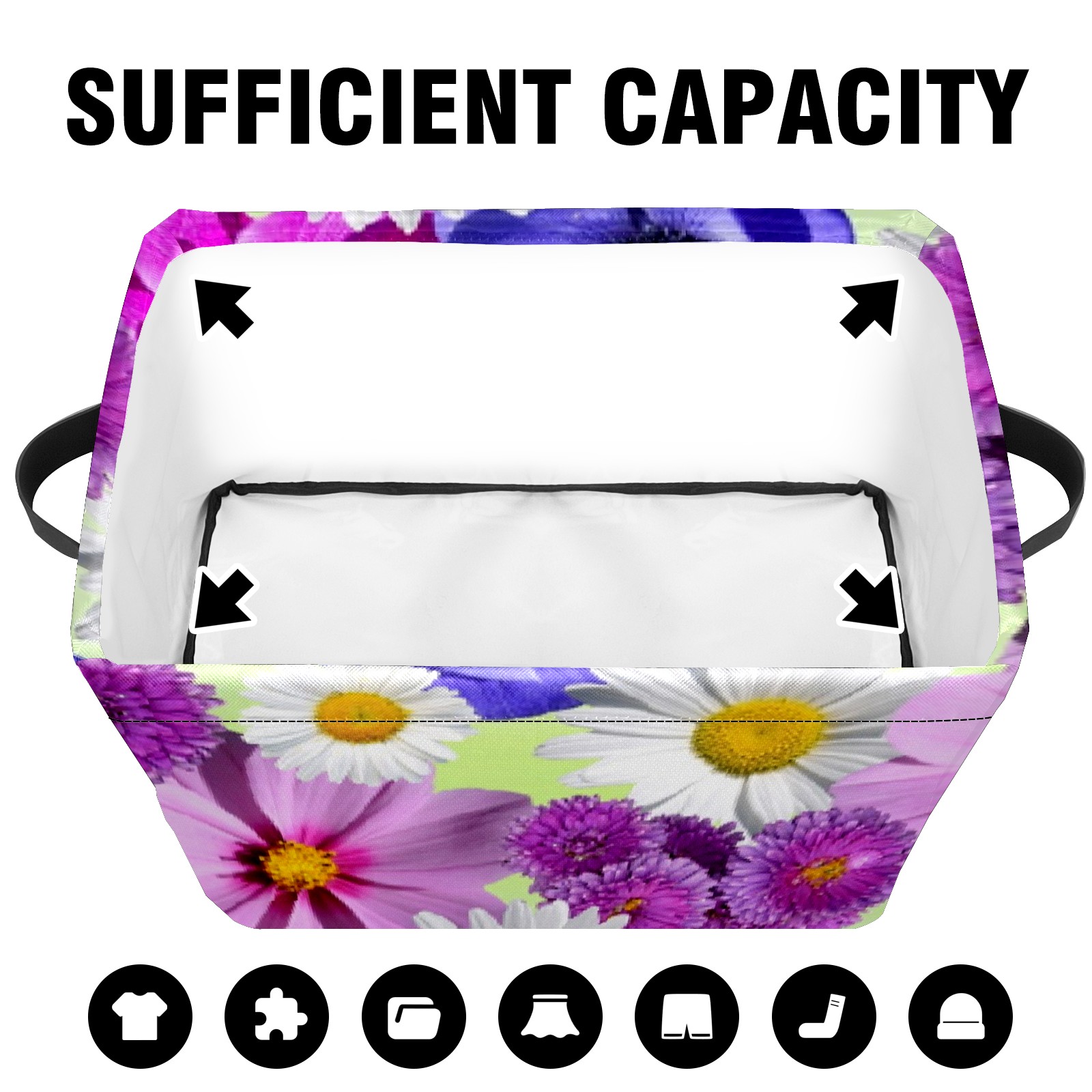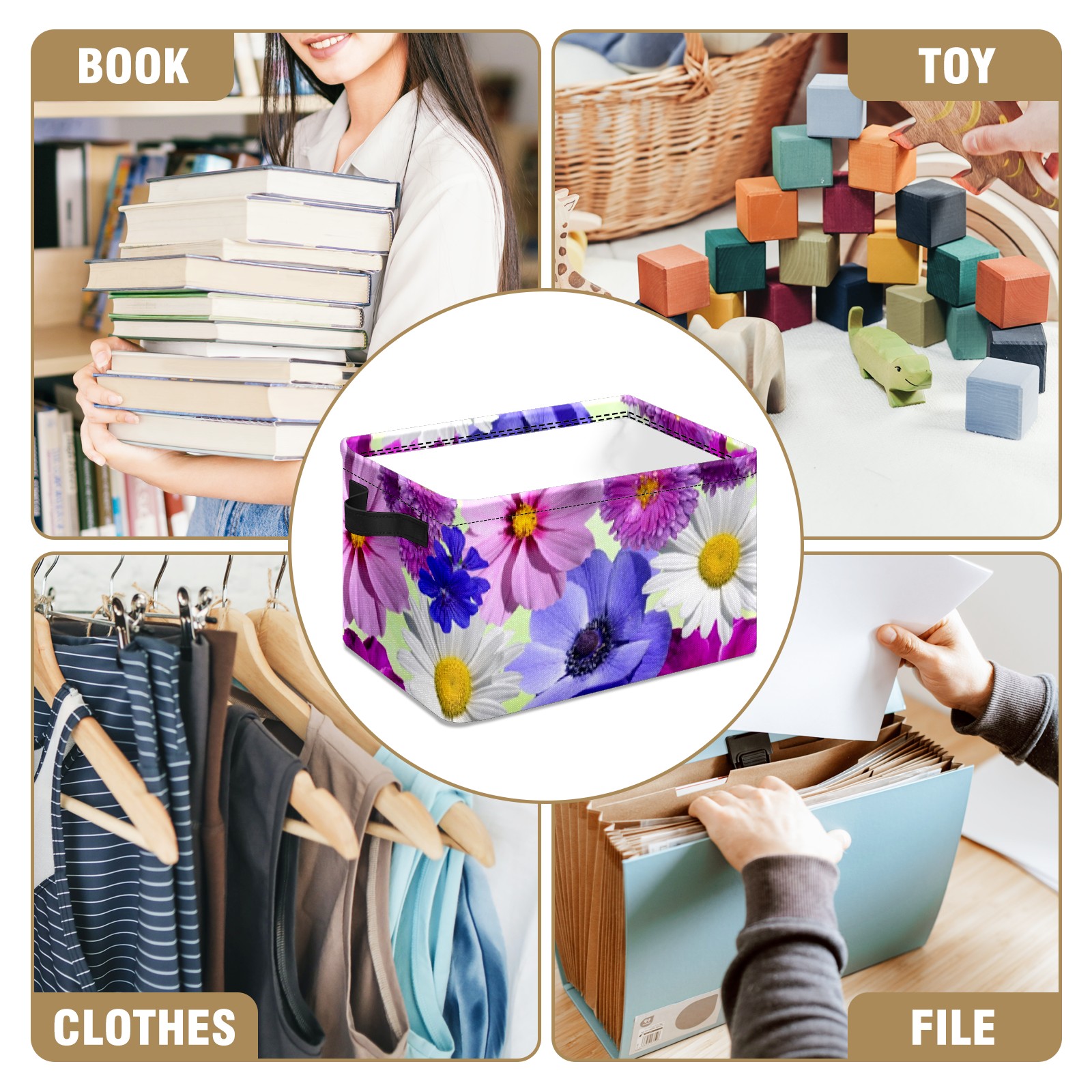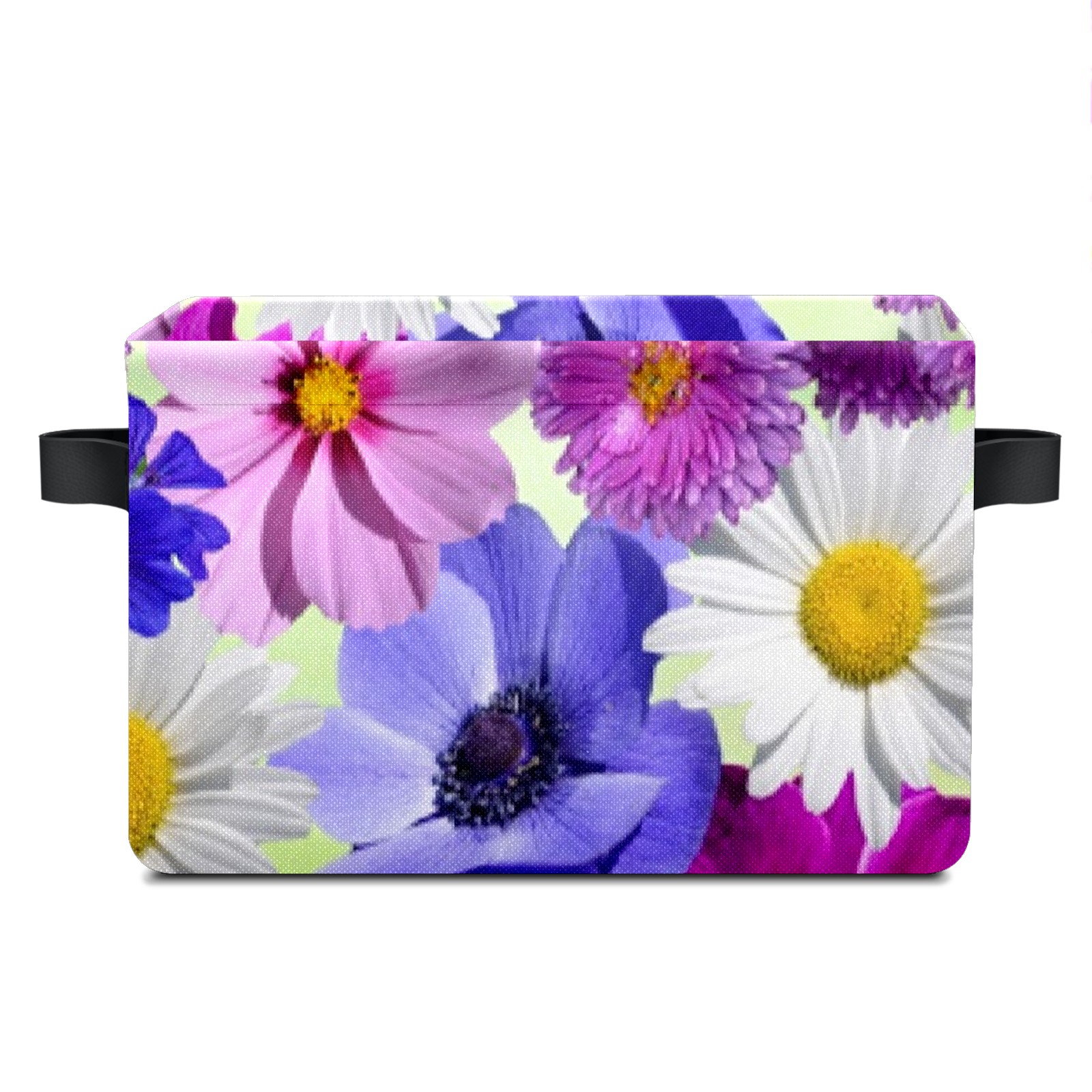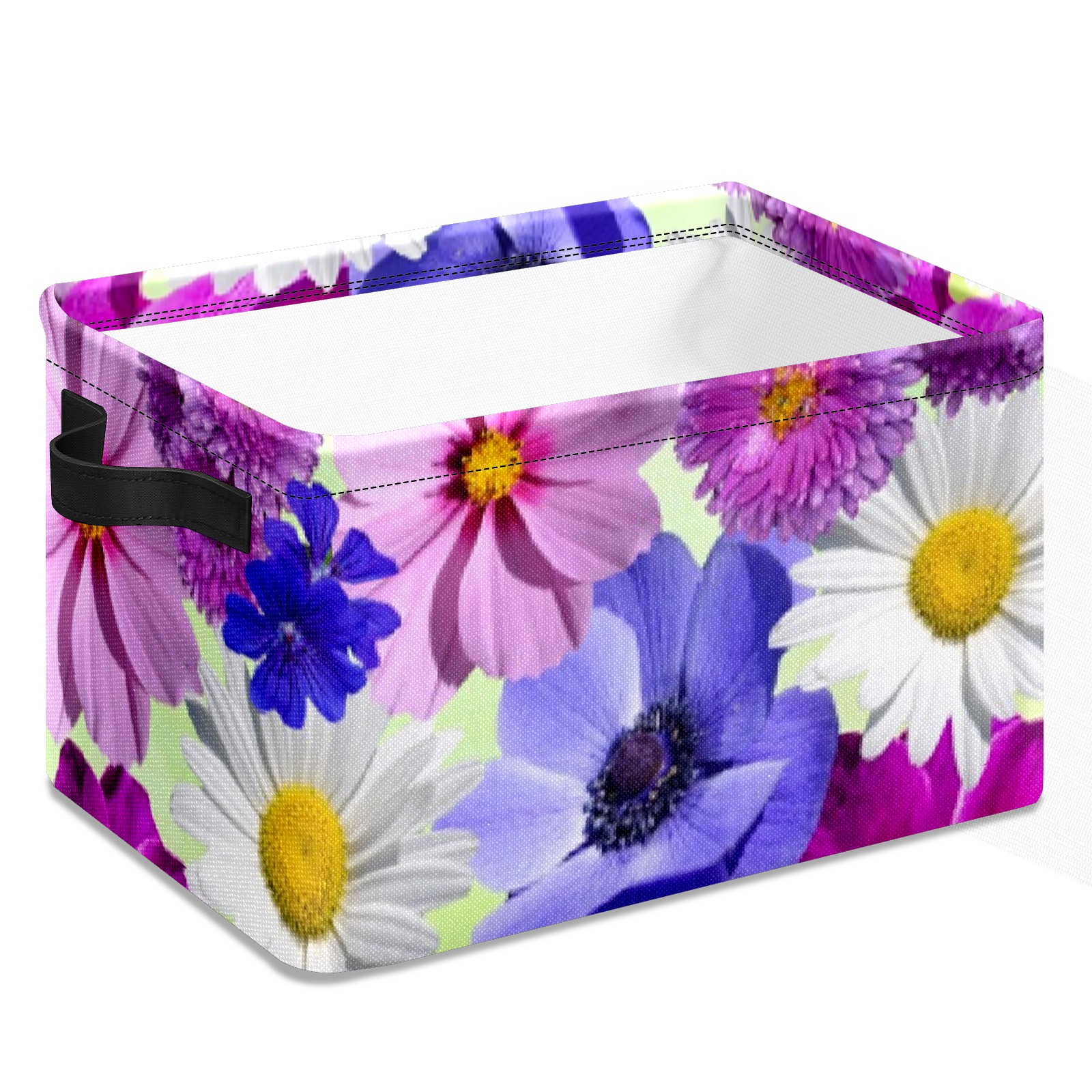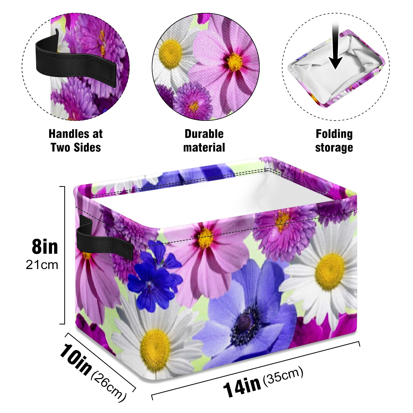 Collapsible 600D Oxford Storage Basket with Blossoms - Metal Frame 10"x14"x8" Reinforced Handles, Multi-Purpose Organizer