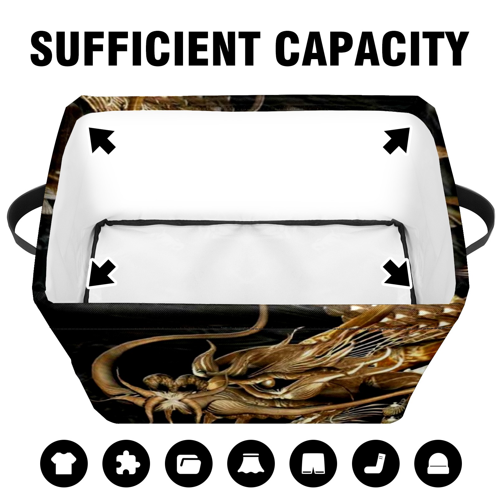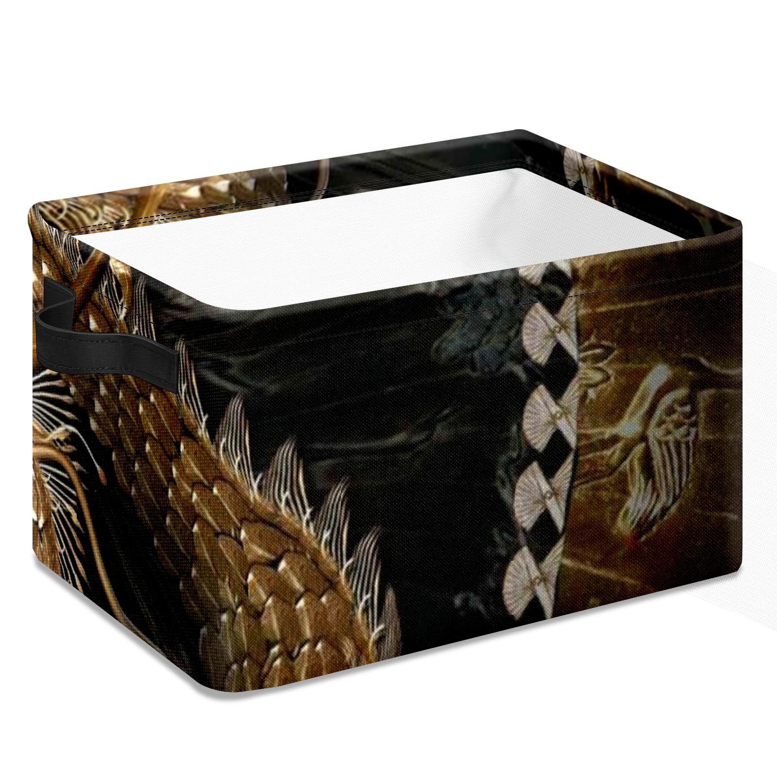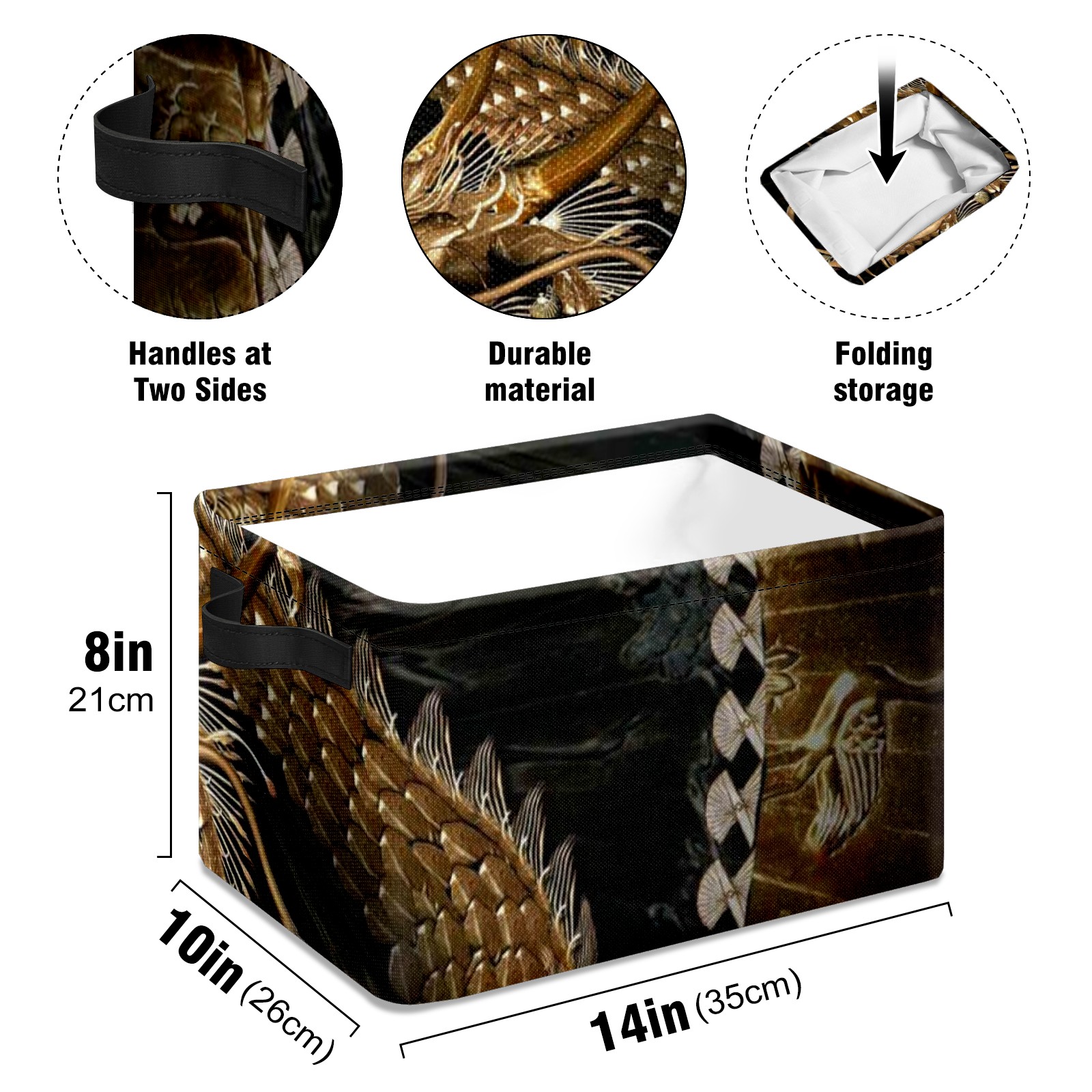 Collapsible 600D Oxford Storage Basket with Chinese Dragon Loong - Metal Frame 10"x14"x8" Reinforced Handles, Multi-Purpose Organizer