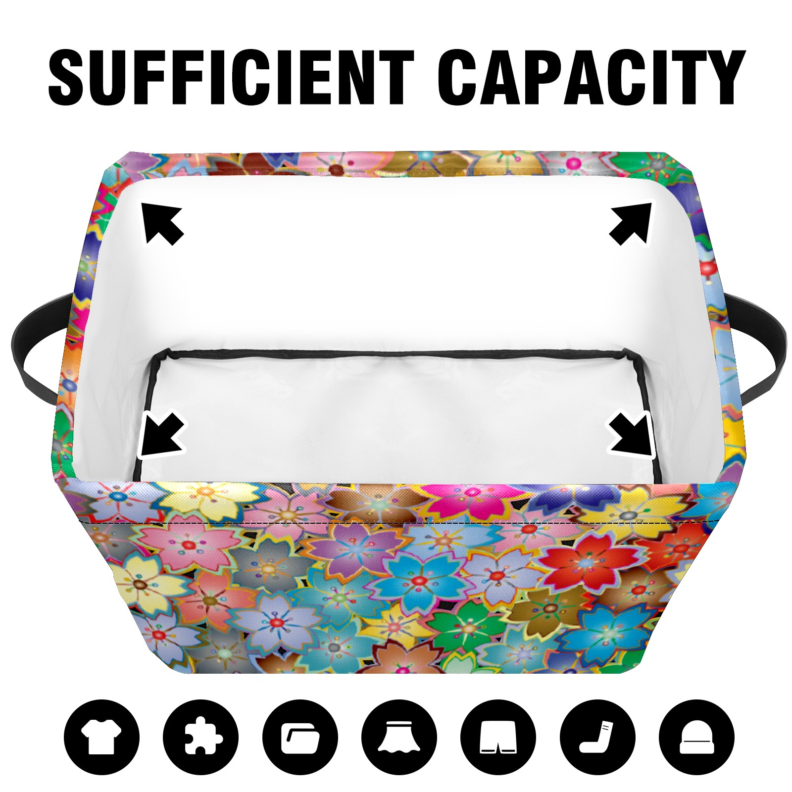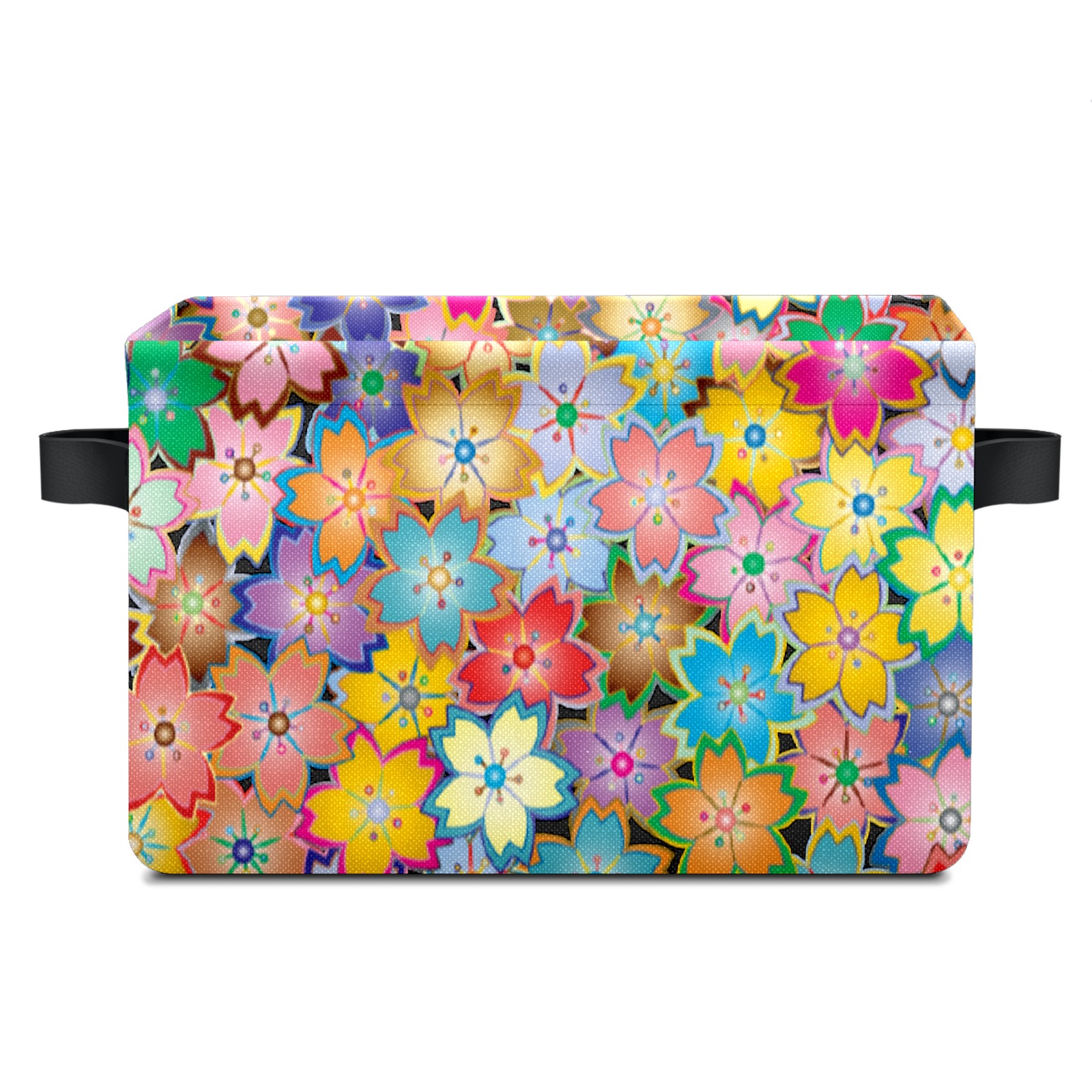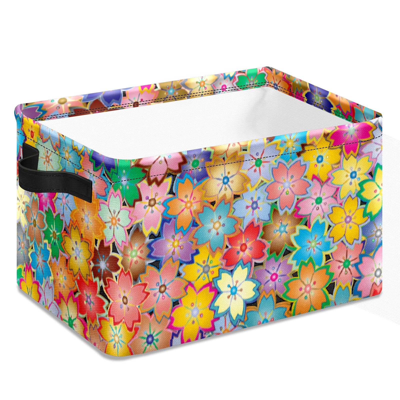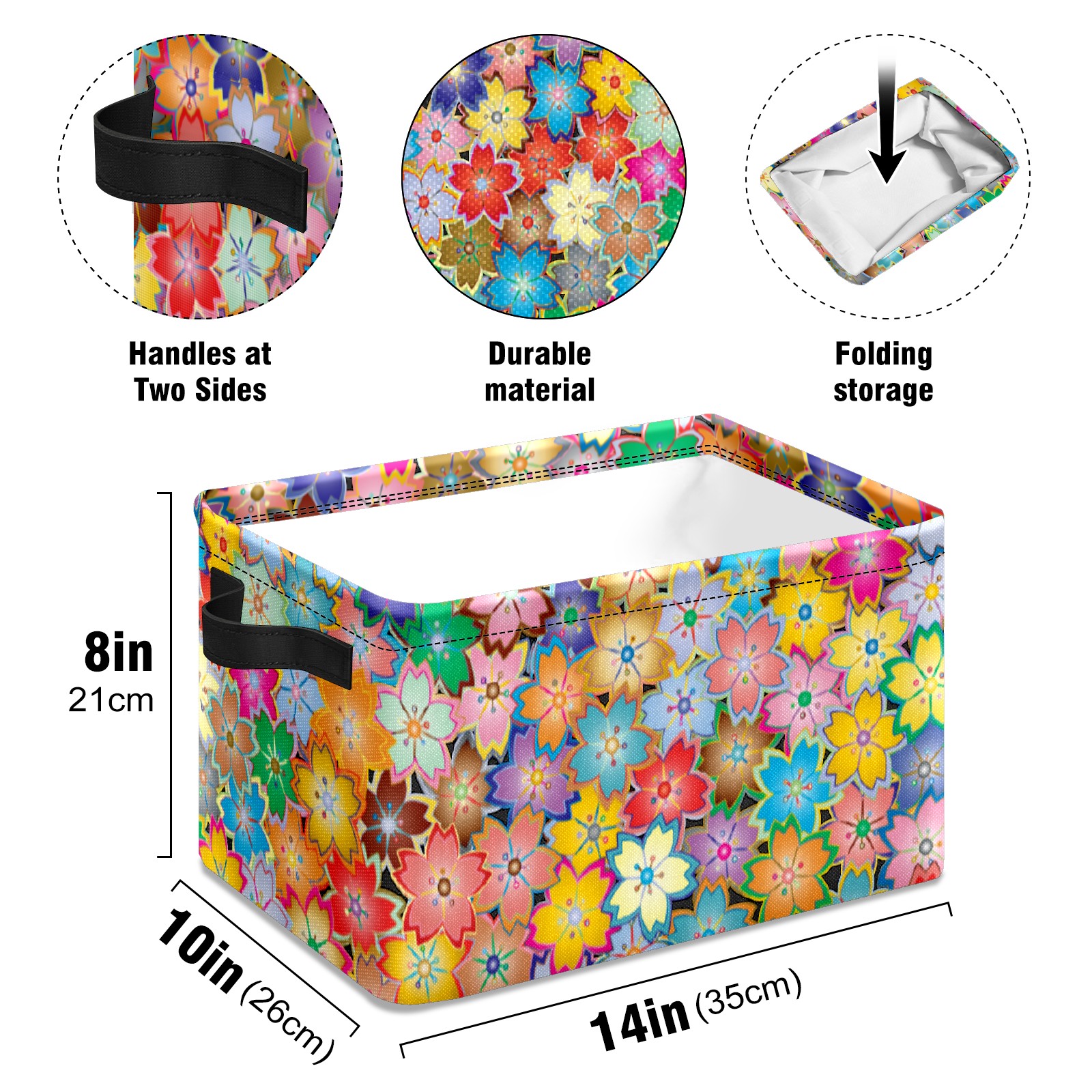 Collapsible 600D Oxford Storage Basket with Floral - Metal Frame 10"x14"x8" Reinforced Handles, Multi-Purpose Organizer
