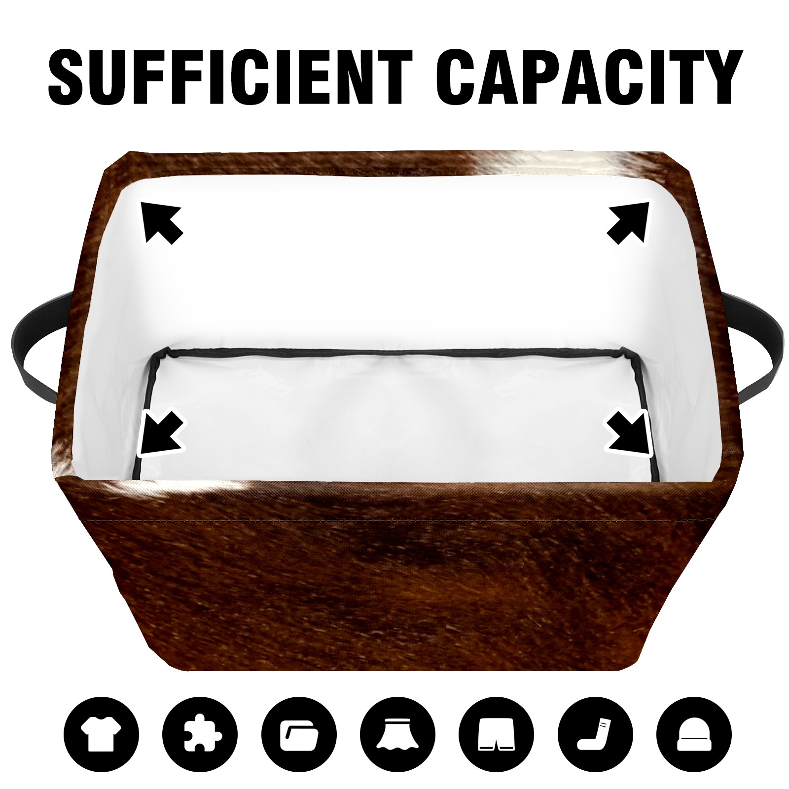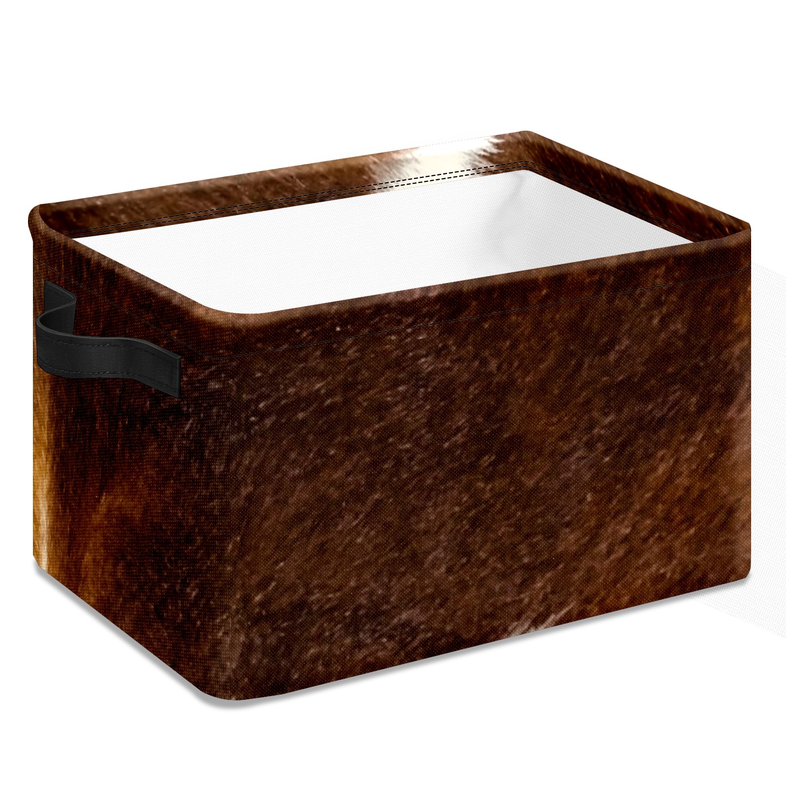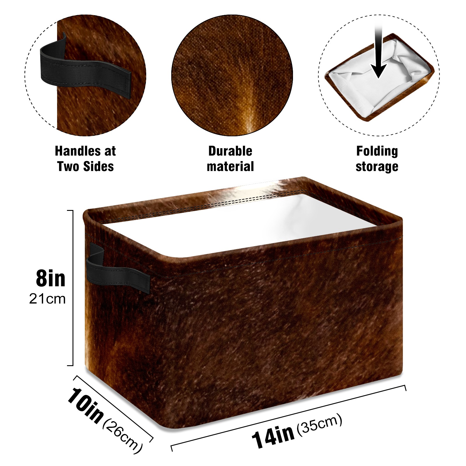 Collapsible 600D Oxford Storage Basket with Brown Cowhide - Metal Frame 10"x14"x8" Reinforced Handles, Multi-Purpose Organizer