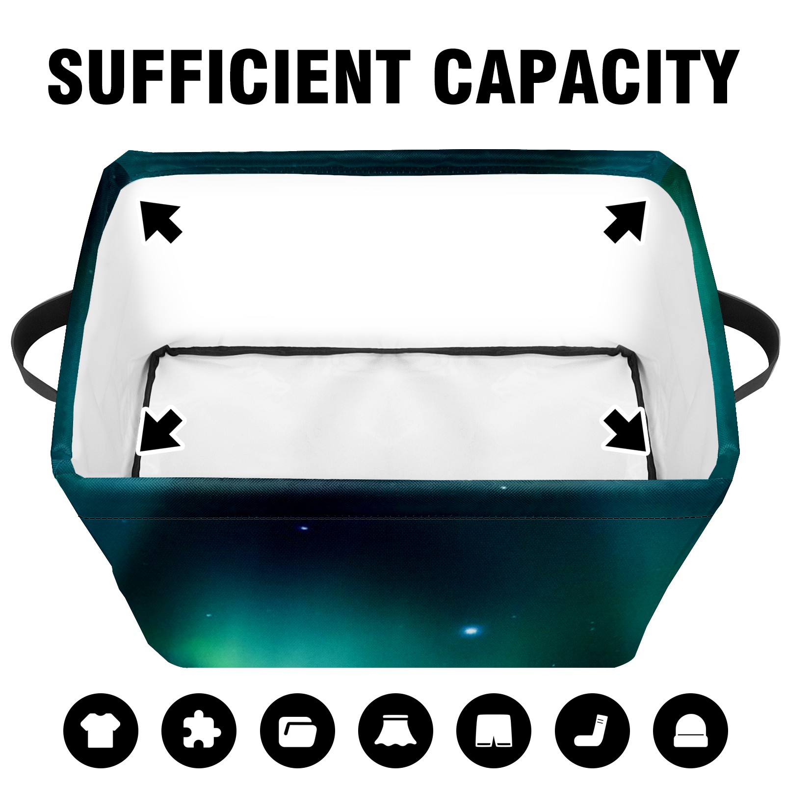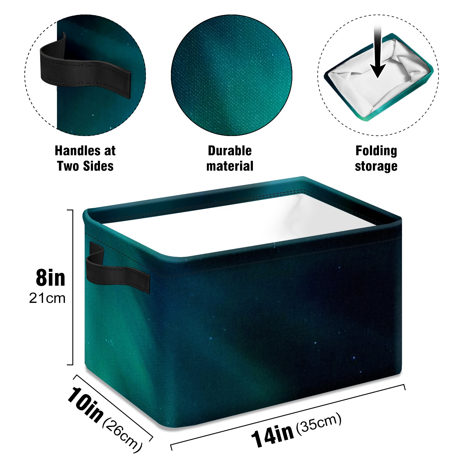 Collapsible 600D Oxford Storage Basket with Starry Sky - Metal Frame 10"x14"x8" Reinforced Handles, Multi-Purpose Organizer