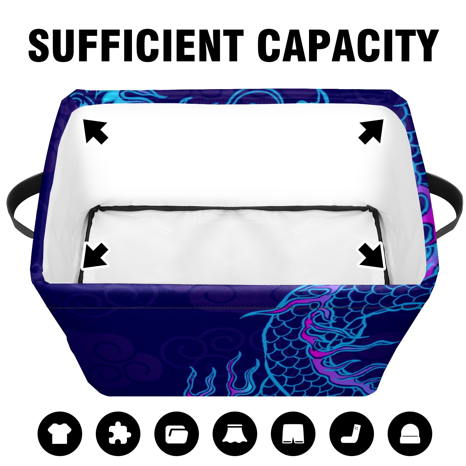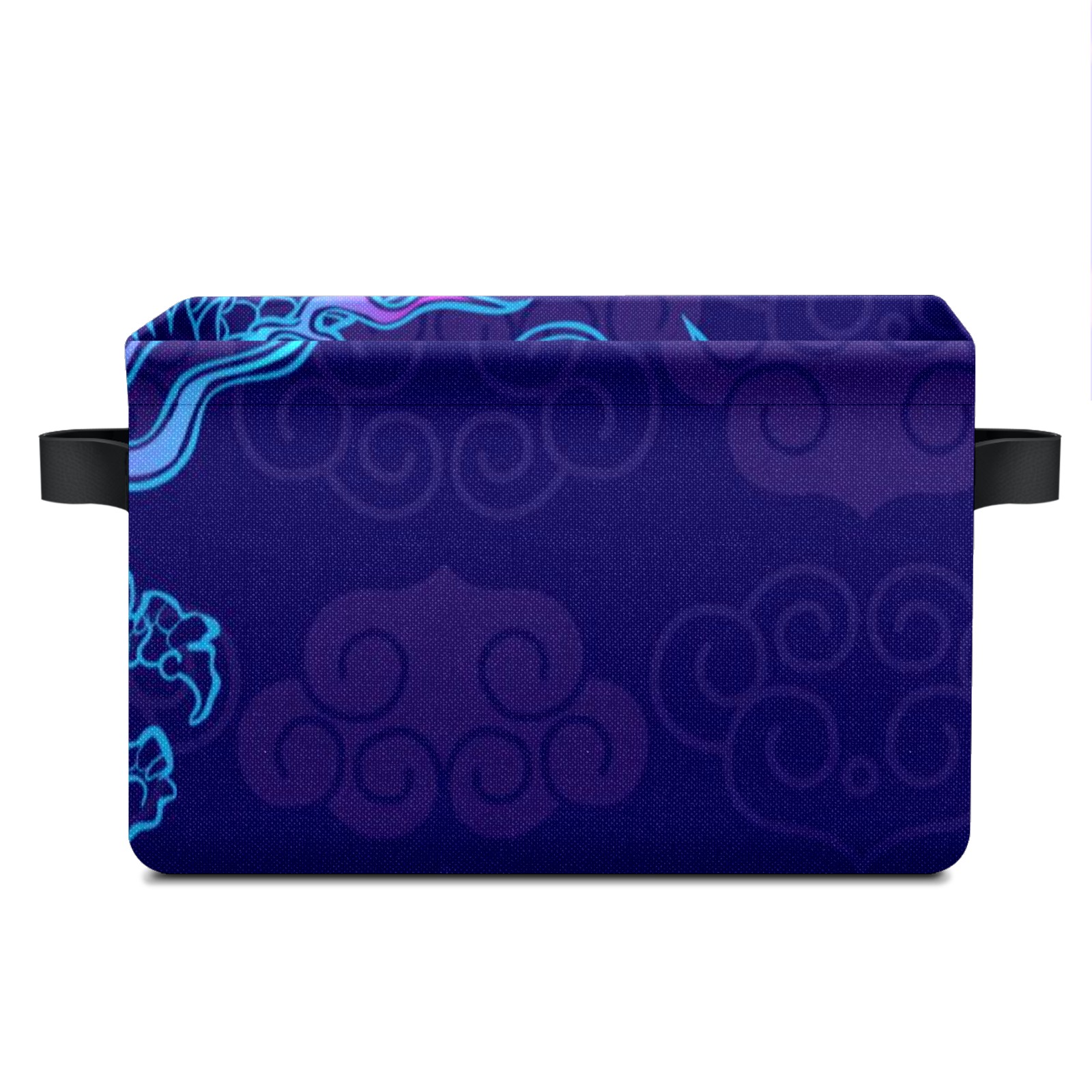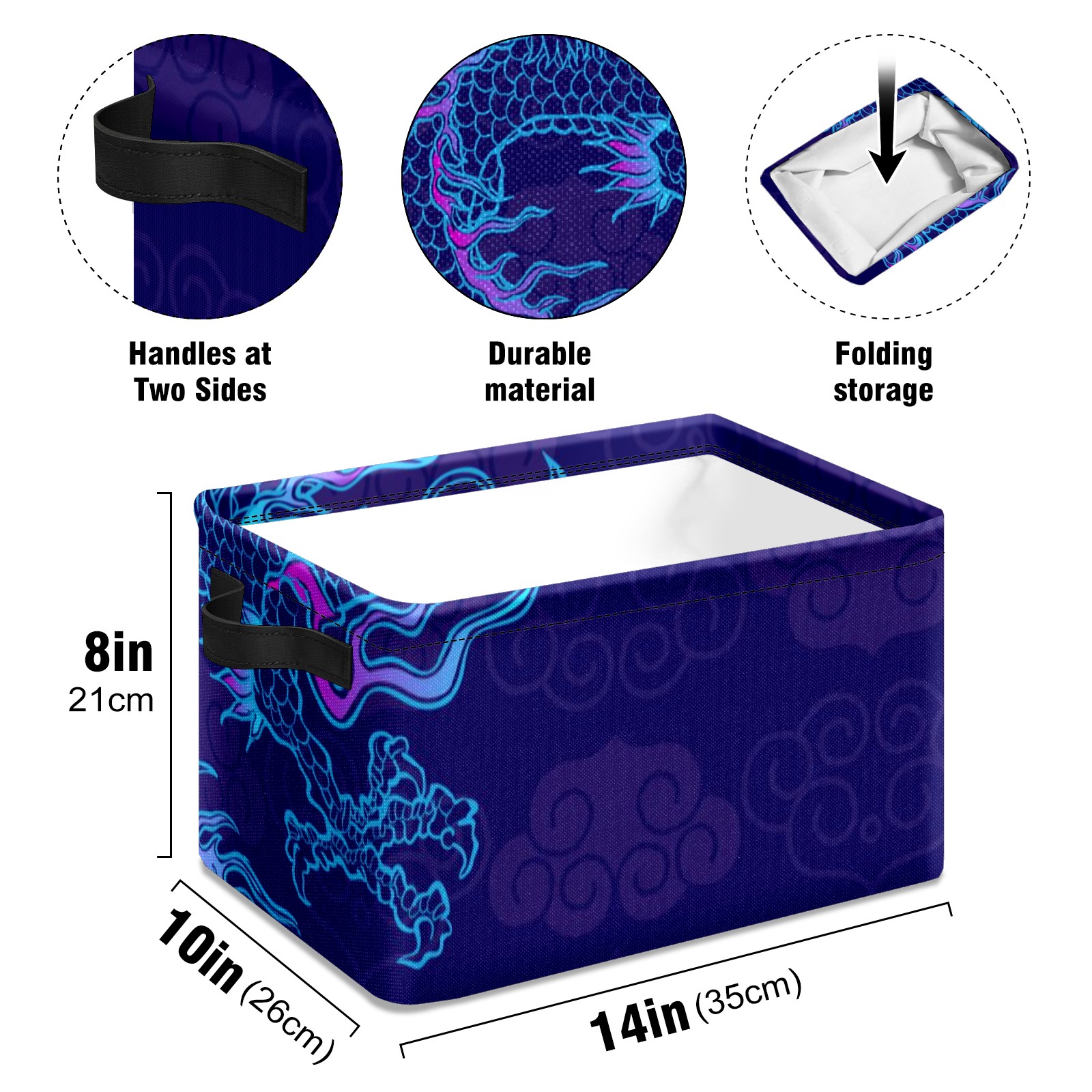Collapsible 600D Oxford Storage Basket with Vintage Blue Chinese Dragon Cloud - Metal Frame 10"x14"x8" Reinforced Handles, Multi-Purpose Organizer