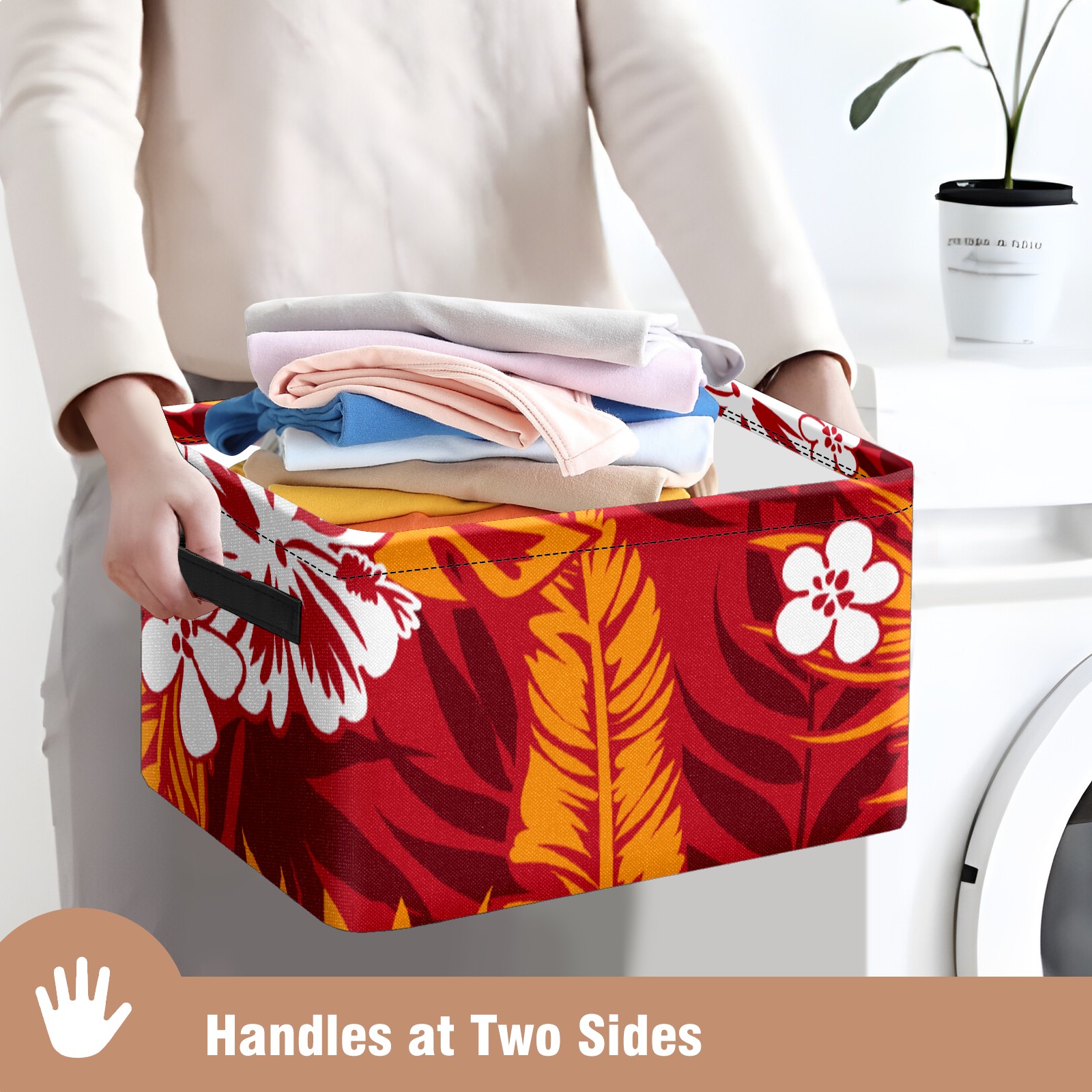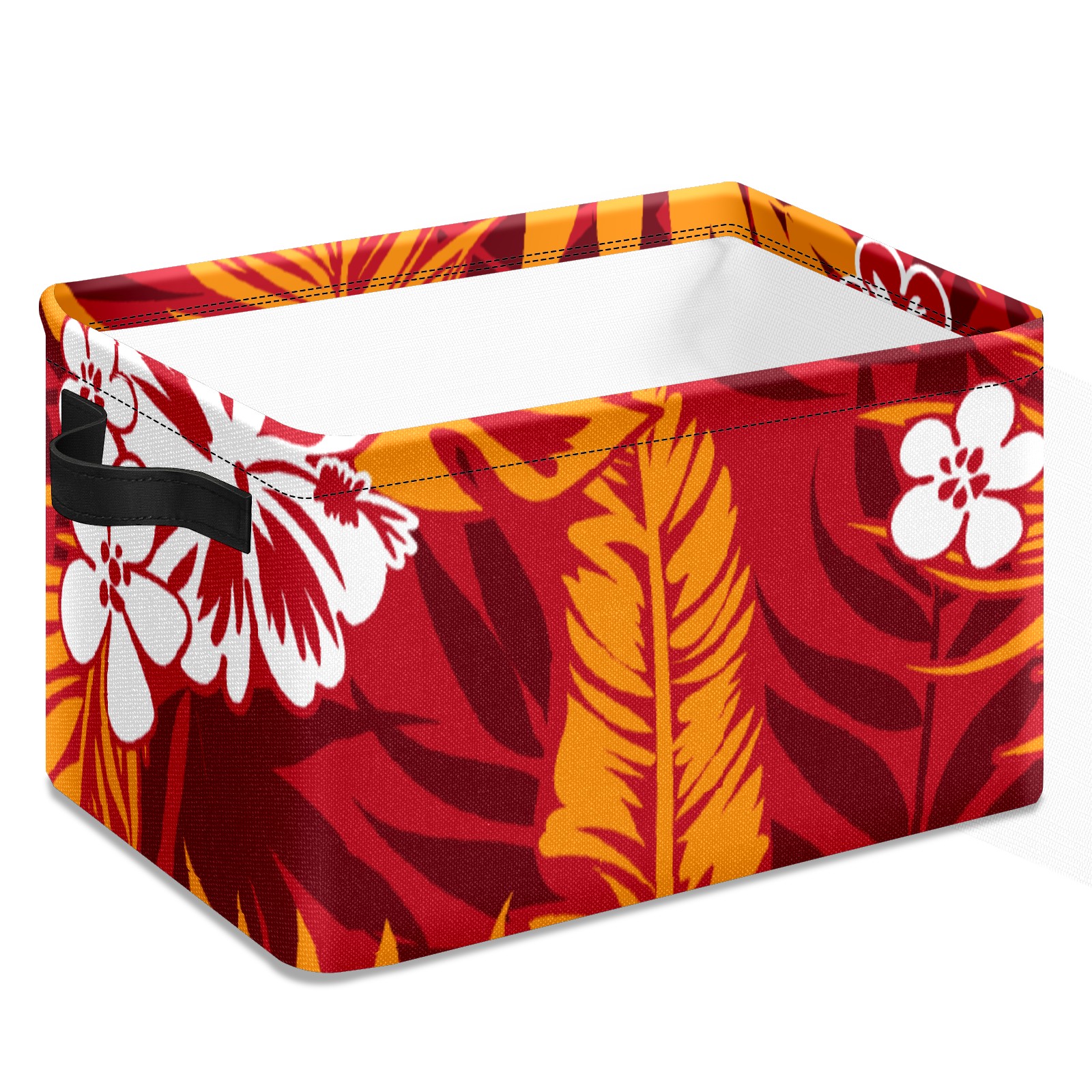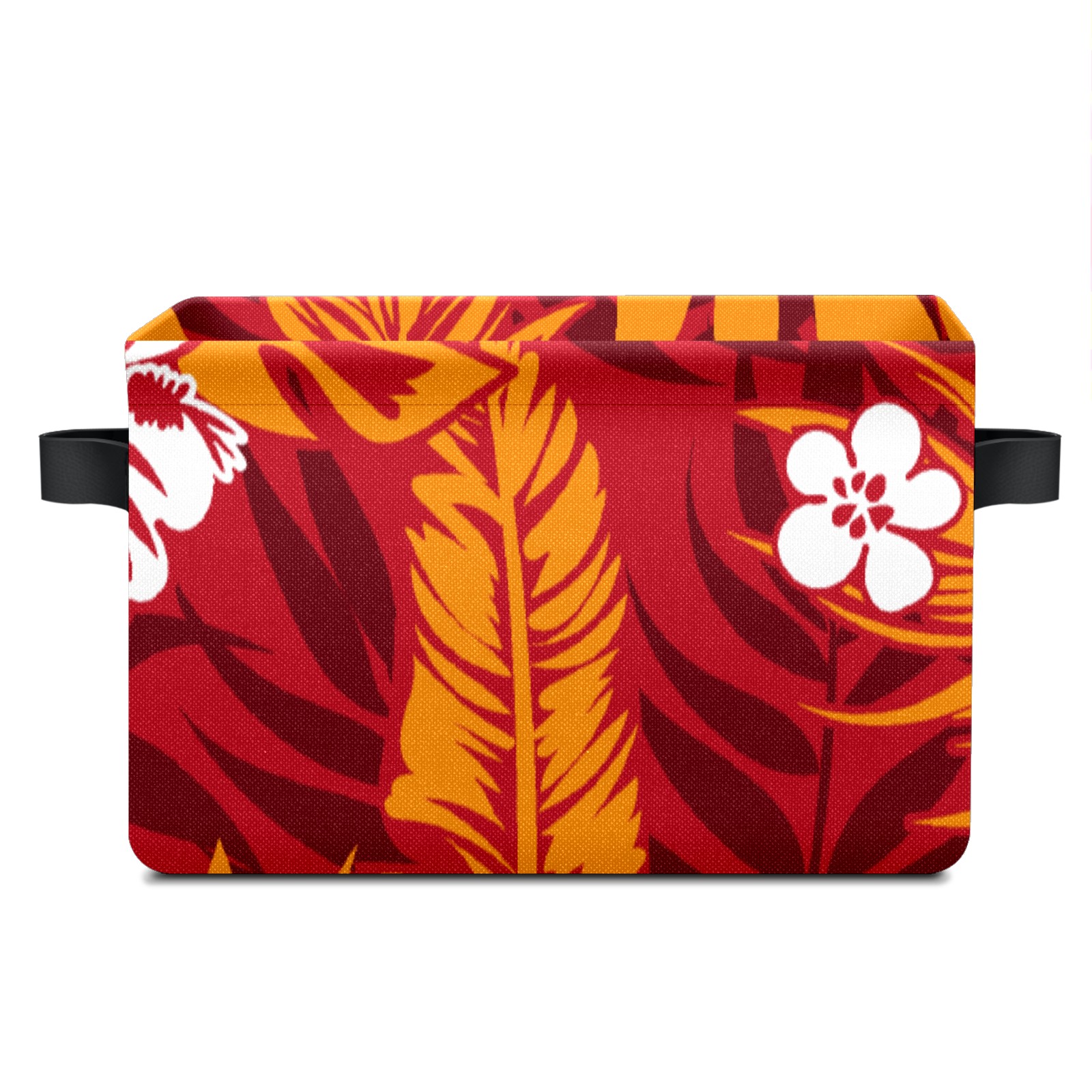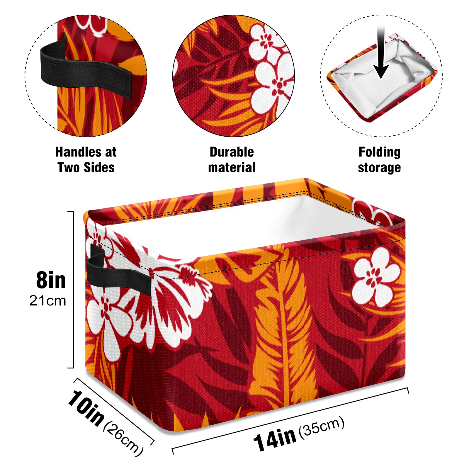 Collapsible 600D Oxford Storage Basket with Flowers - Metal Frame 10"x14"x8" Reinforced Handles, Multi-Purpose Organizer