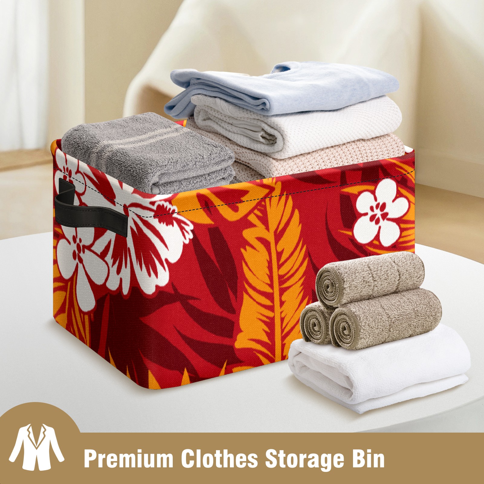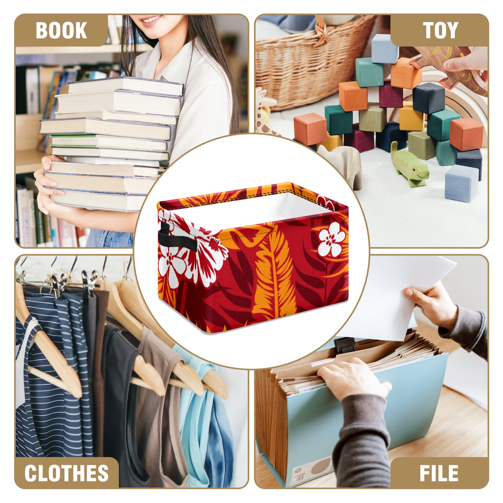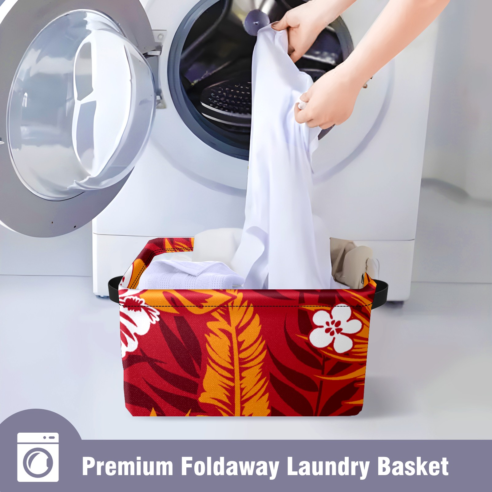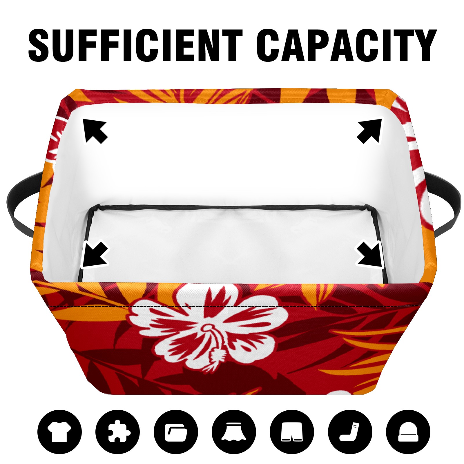 Collapsible 600D Oxford Storage Basket with Flowers - Metal Frame 10"x14"x8" Reinforced Handles, Multi-Purpose Organizer