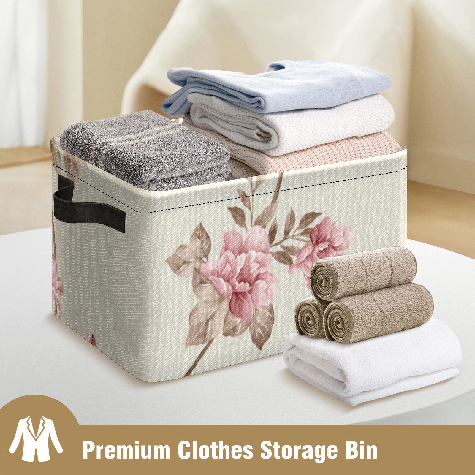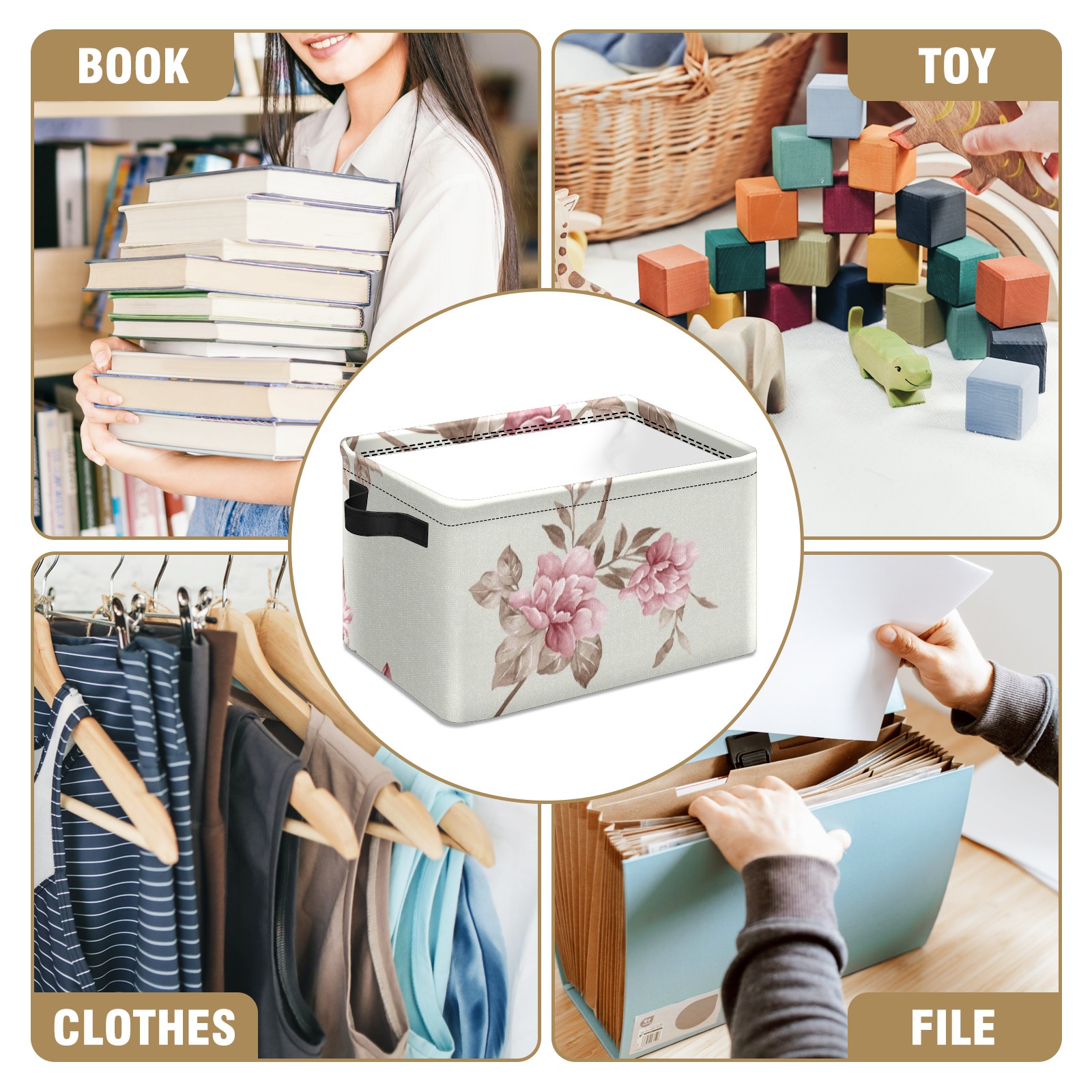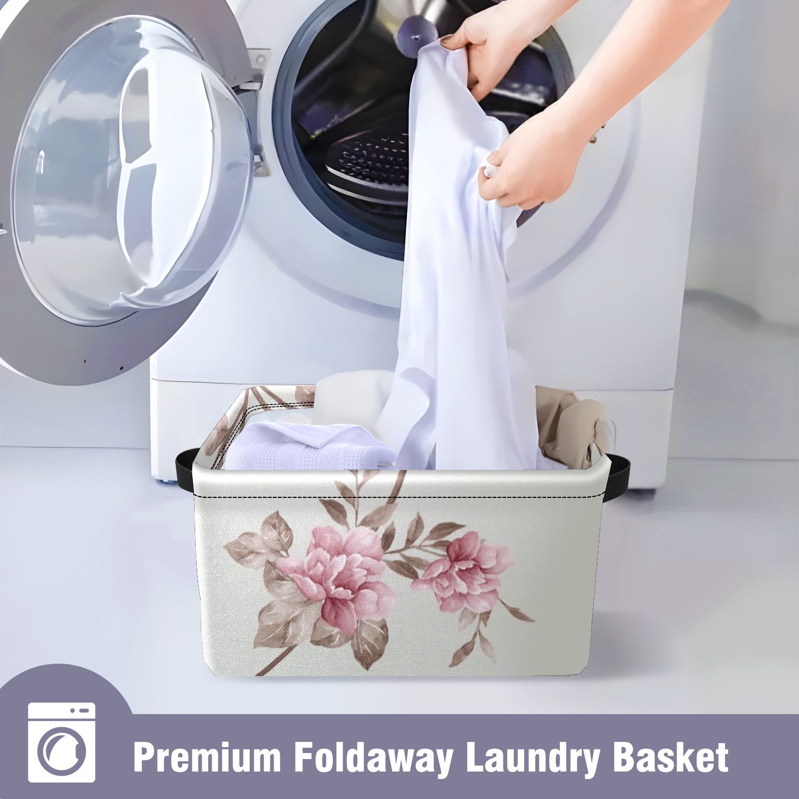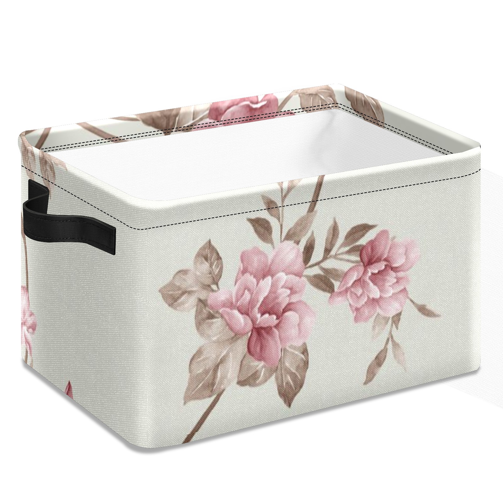 Collapsible 600D Oxford Storage Basket with Rose Flower - Metal Frame 10"x14"x8" Reinforced Handles, Multi-Purpose Organizer