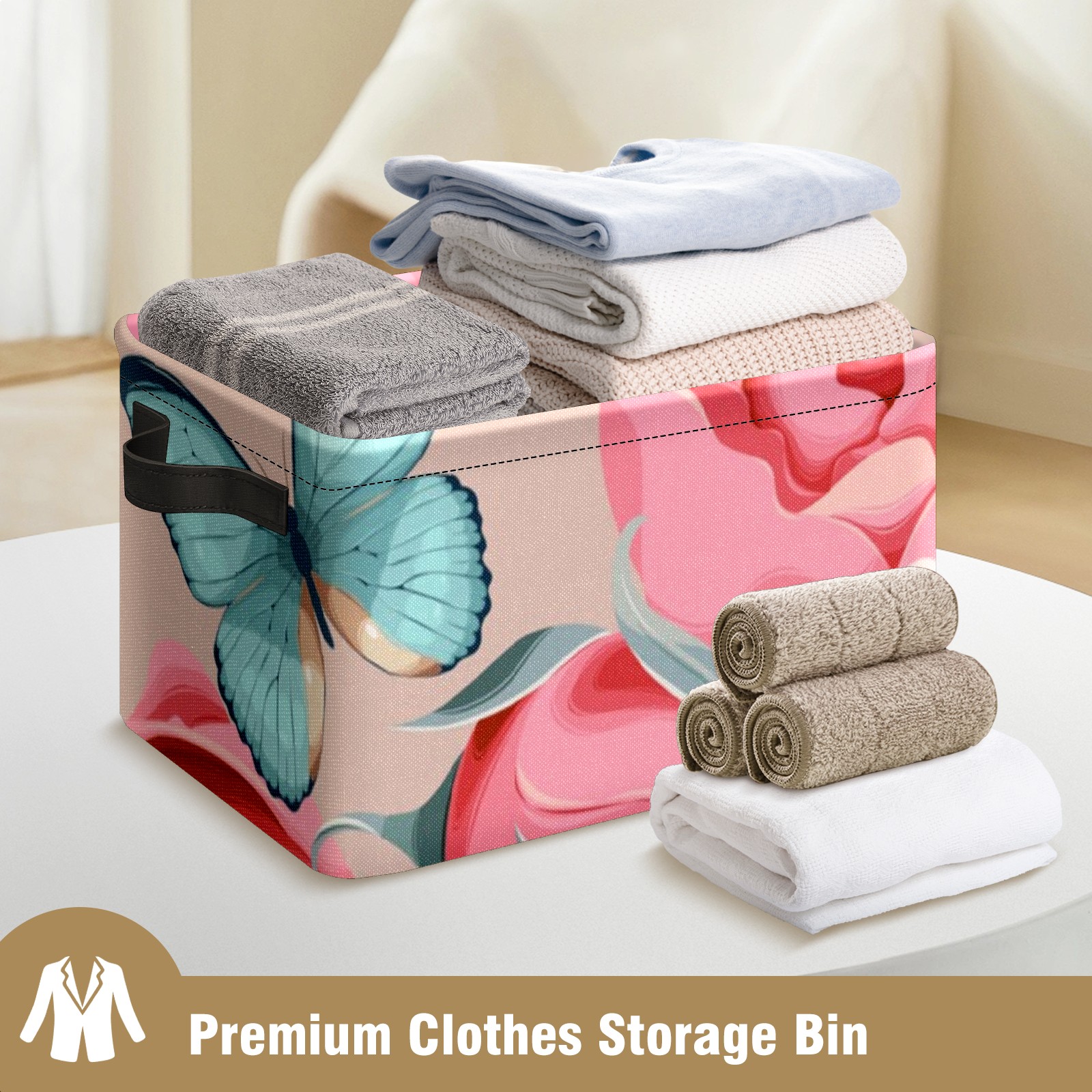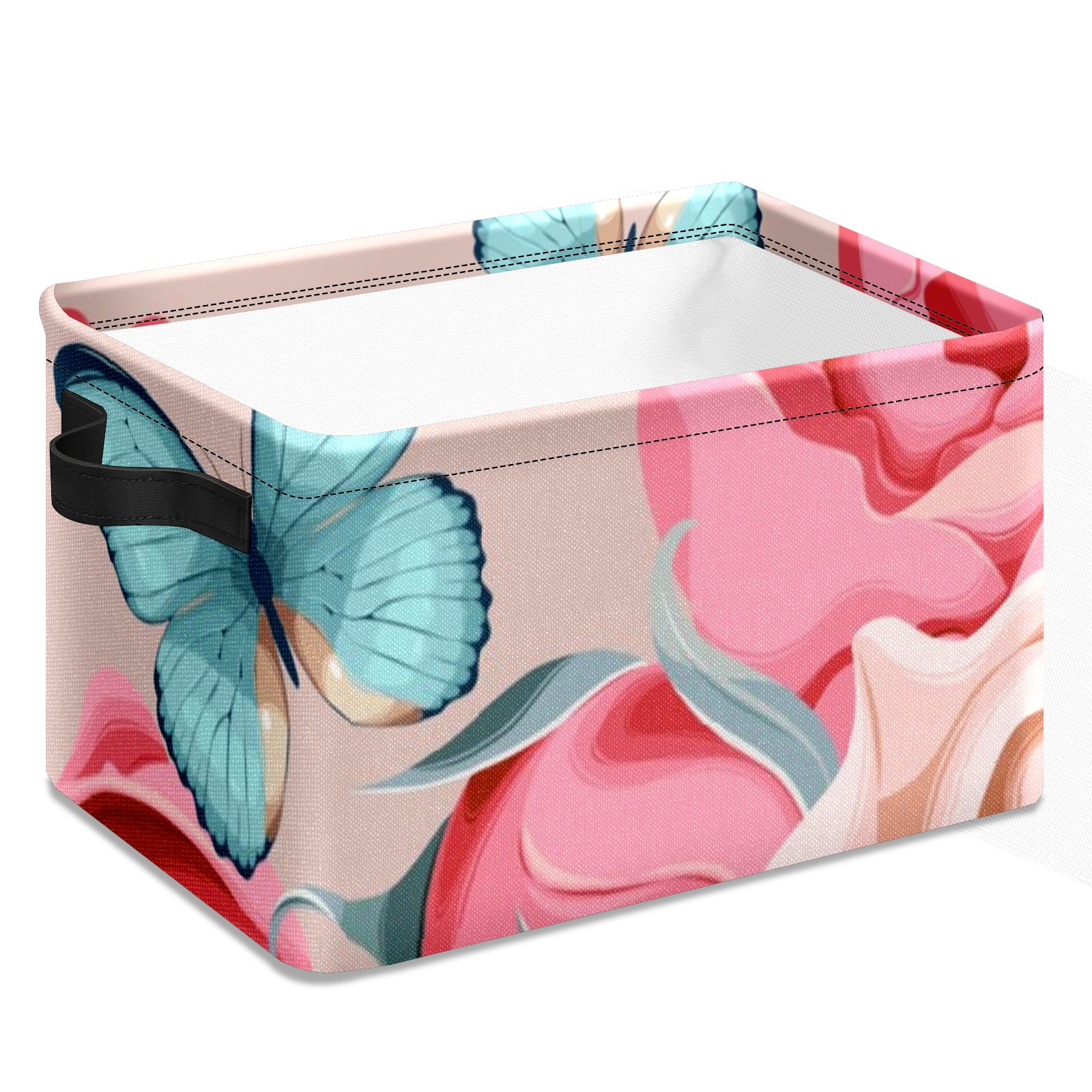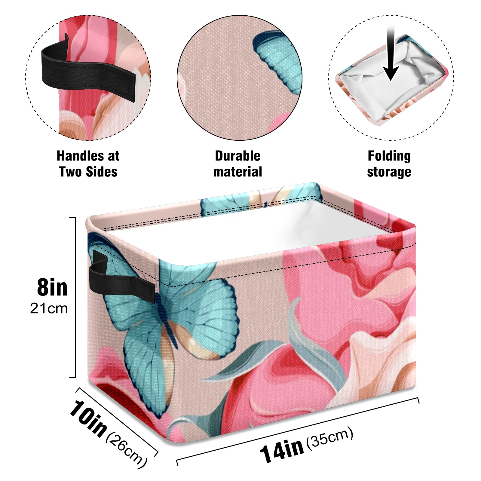 Collapsible 600D Oxford Storage Basket with Butterfly - Metal Frame 10"x14"x8" Reinforced Handles, Multi-Purpose Organizer