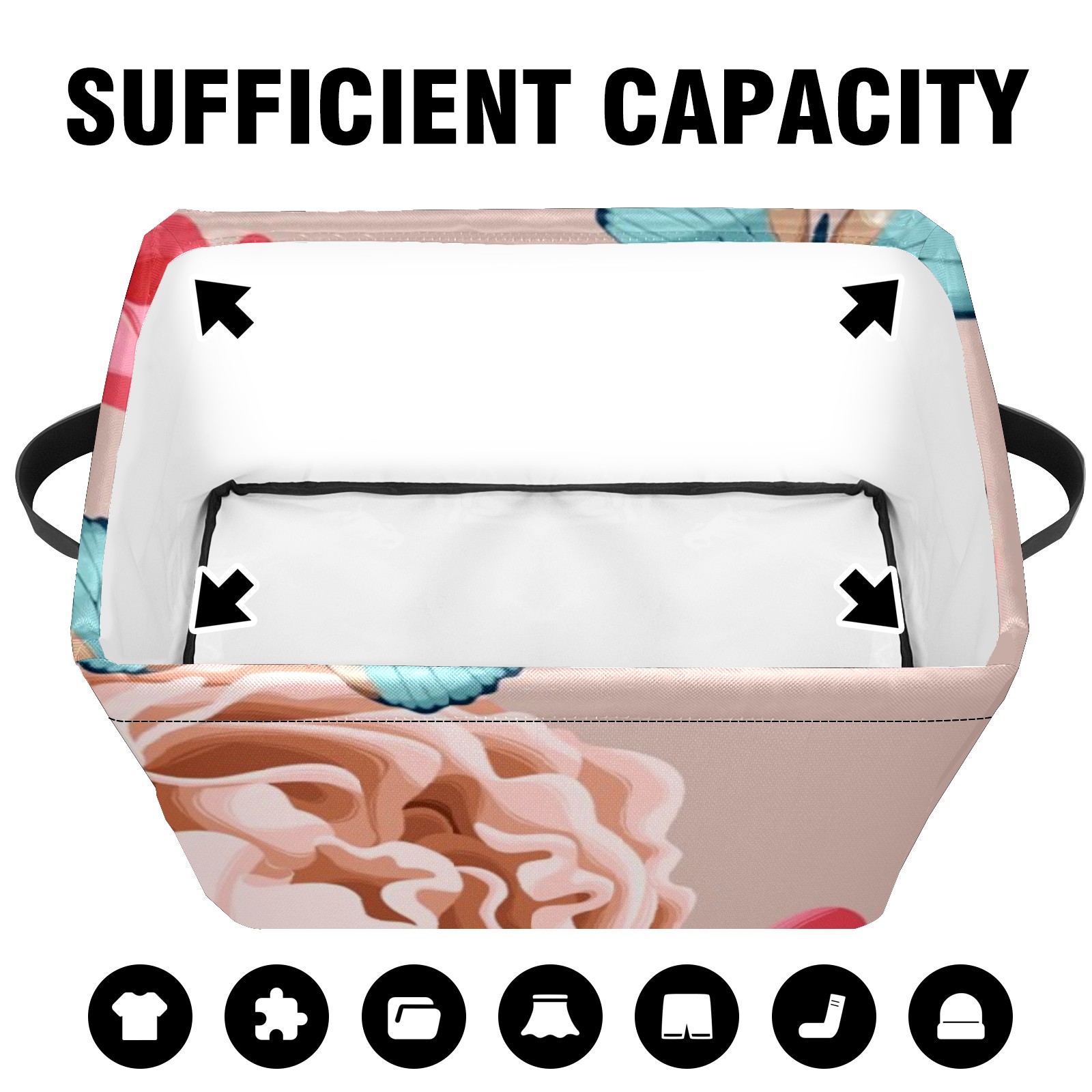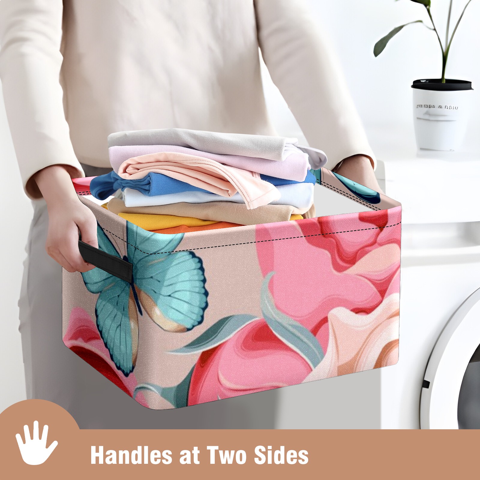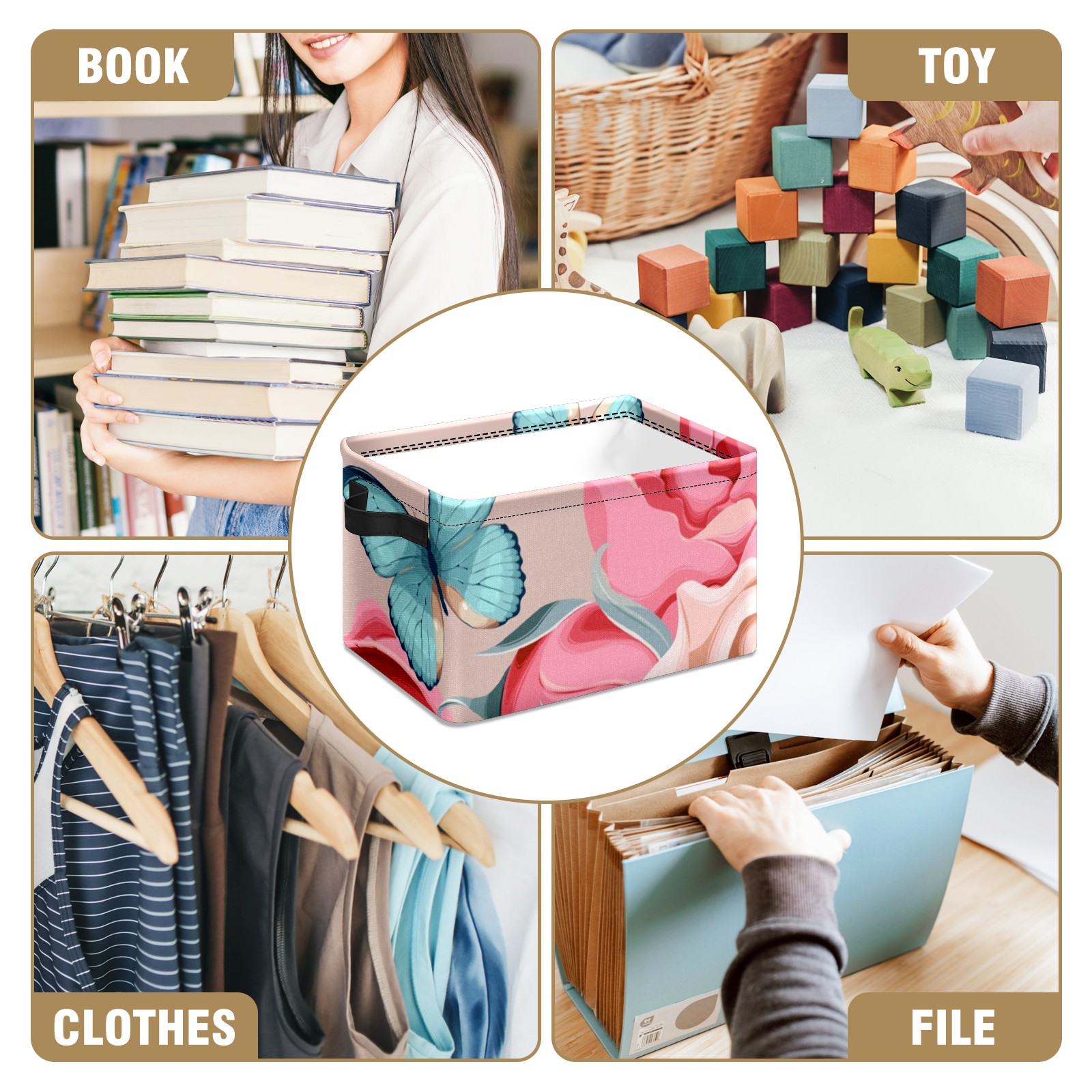 Collapsible 600D Oxford Storage Basket with Butterfly - Metal Frame 10"x14"x8" Reinforced Handles, Multi-Purpose Organizer