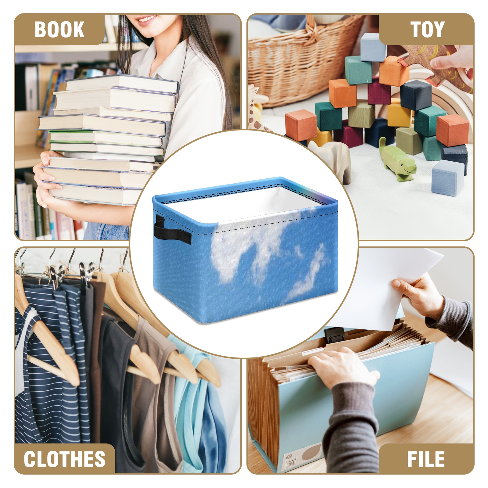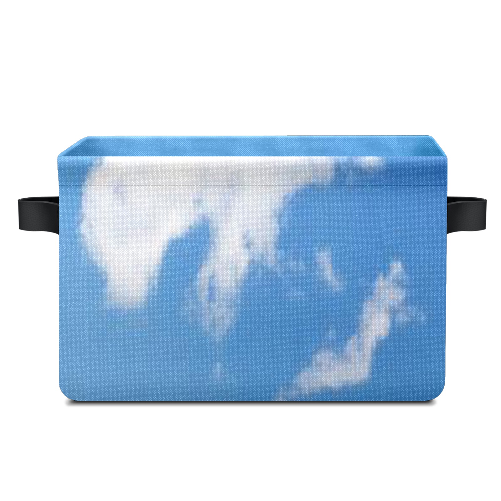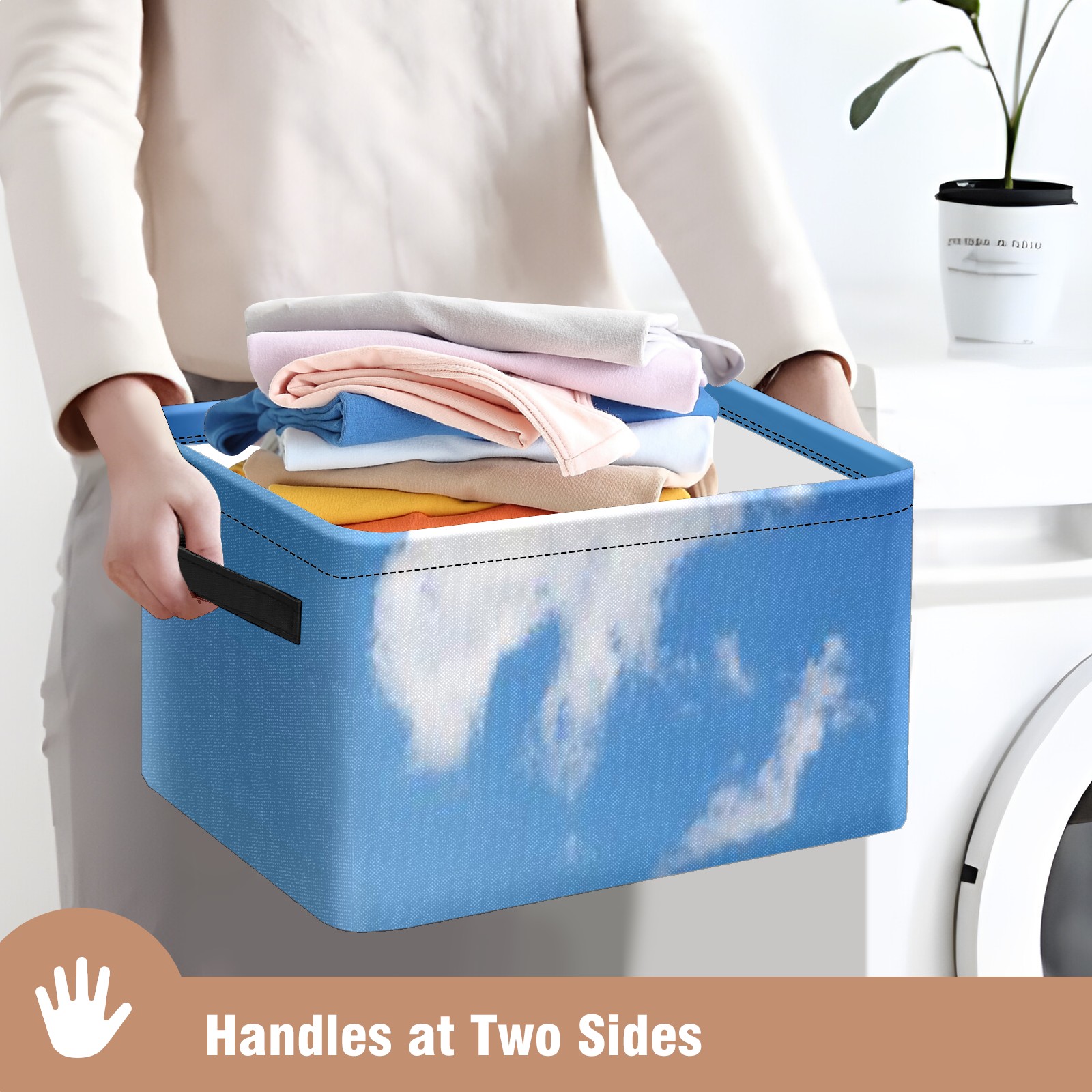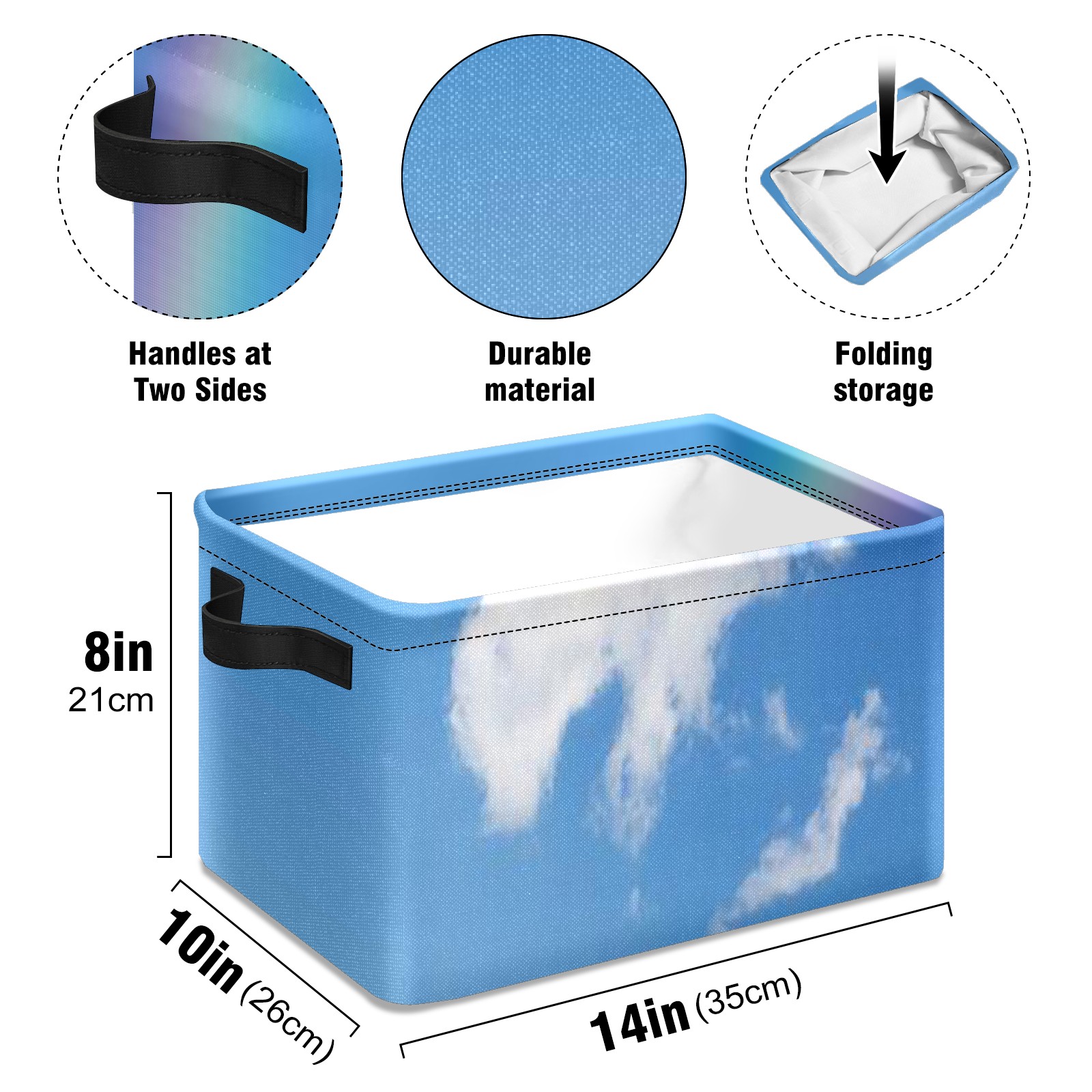 Collapsible 600D Oxford Storage Basket with Blue Sky - Metal Frame 10"x14"x8" Reinforced Handles, Multi-Purpose Organizer