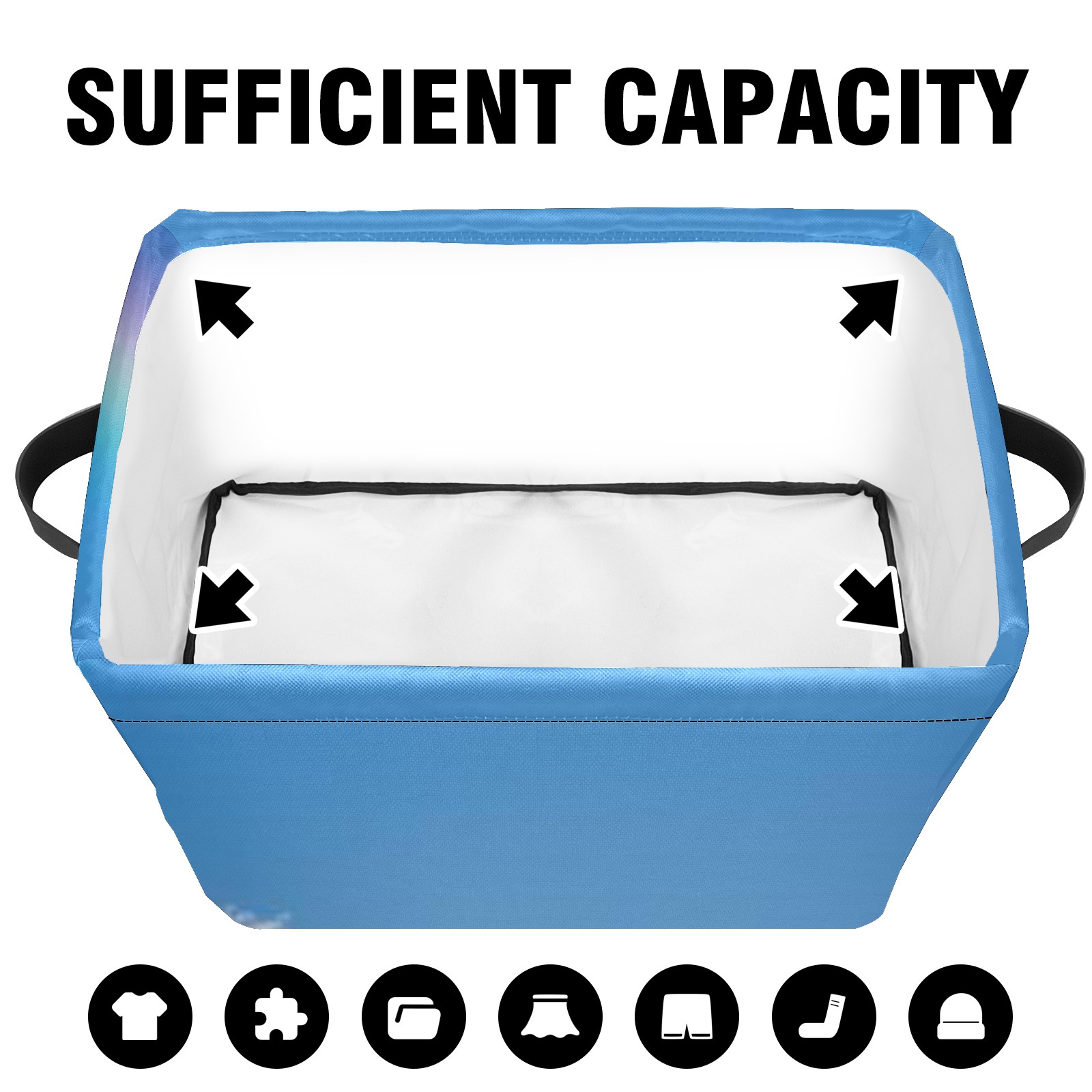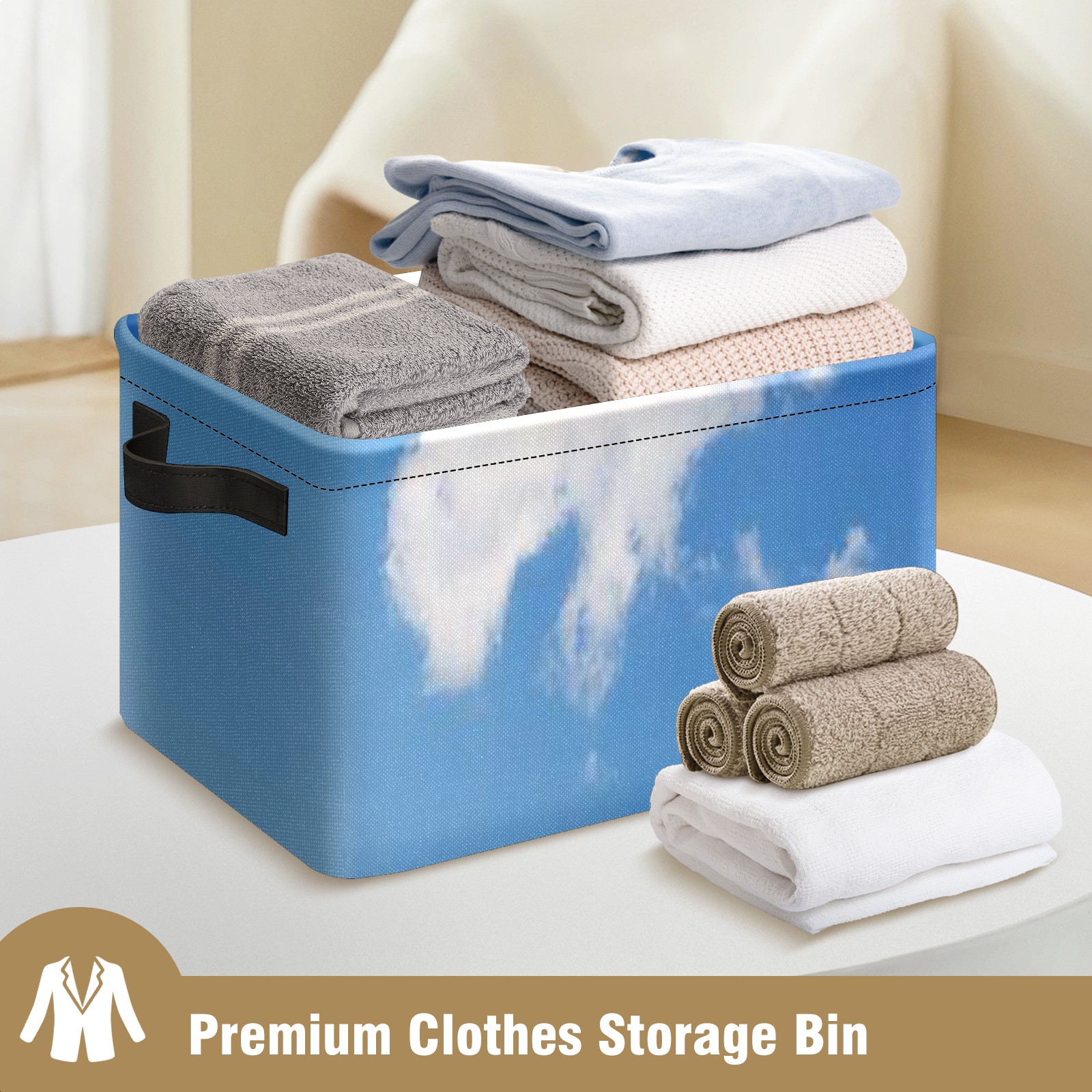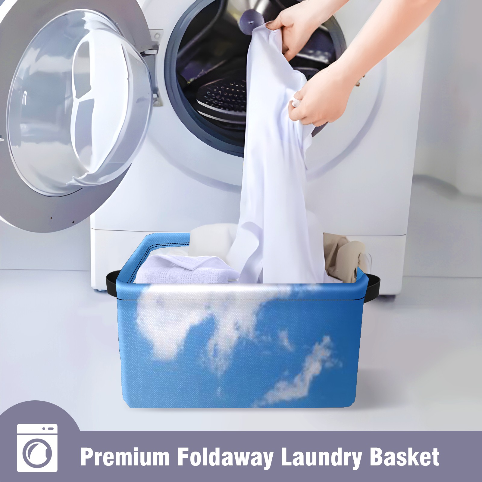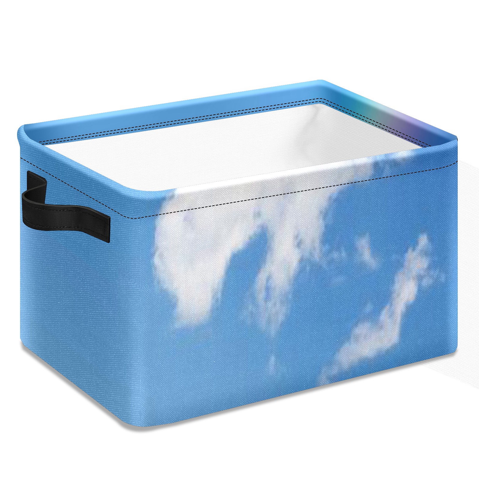 Collapsible 600D Oxford Storage Basket with Blue Sky - Metal Frame 10"x14"x8" Reinforced Handles, Multi-Purpose Organizer