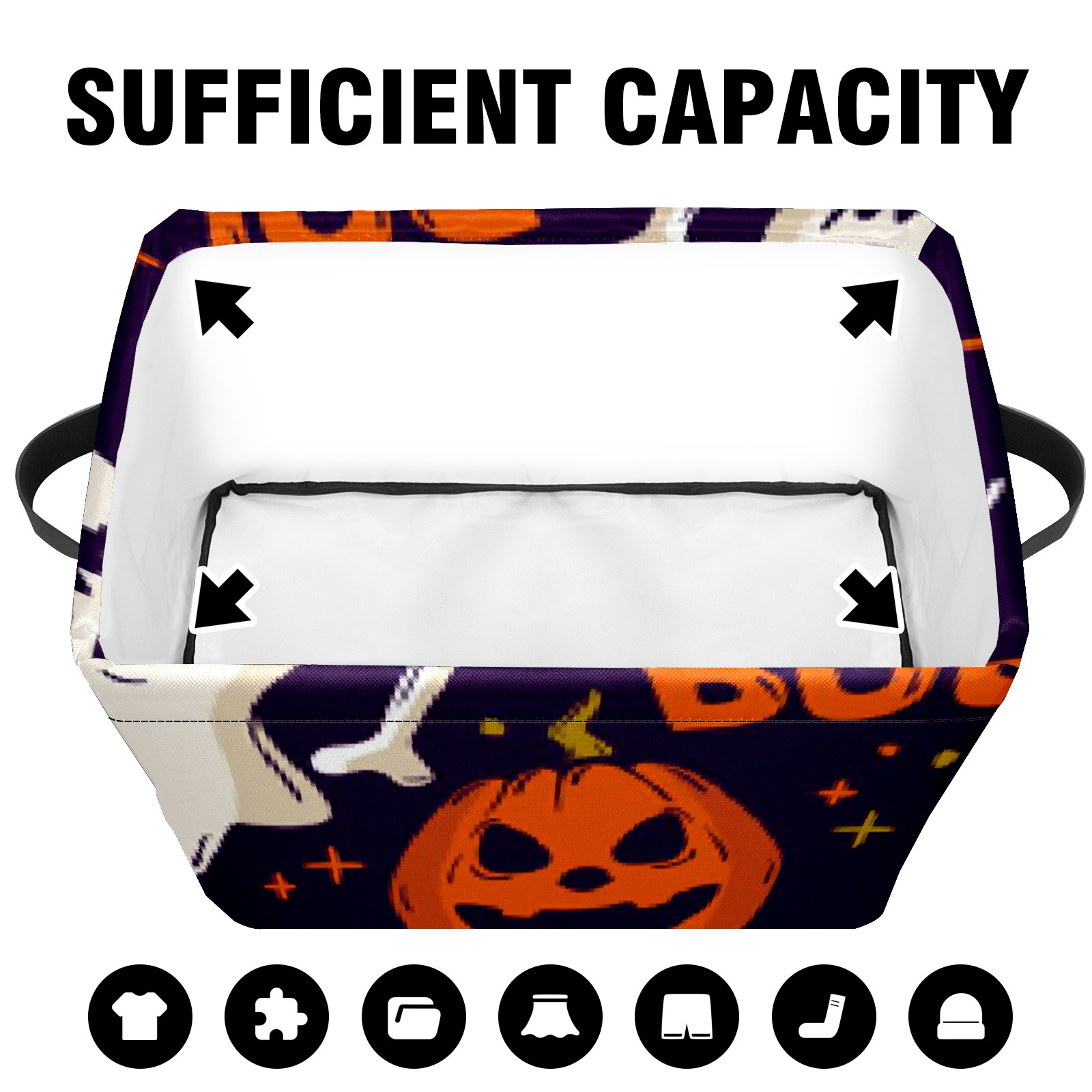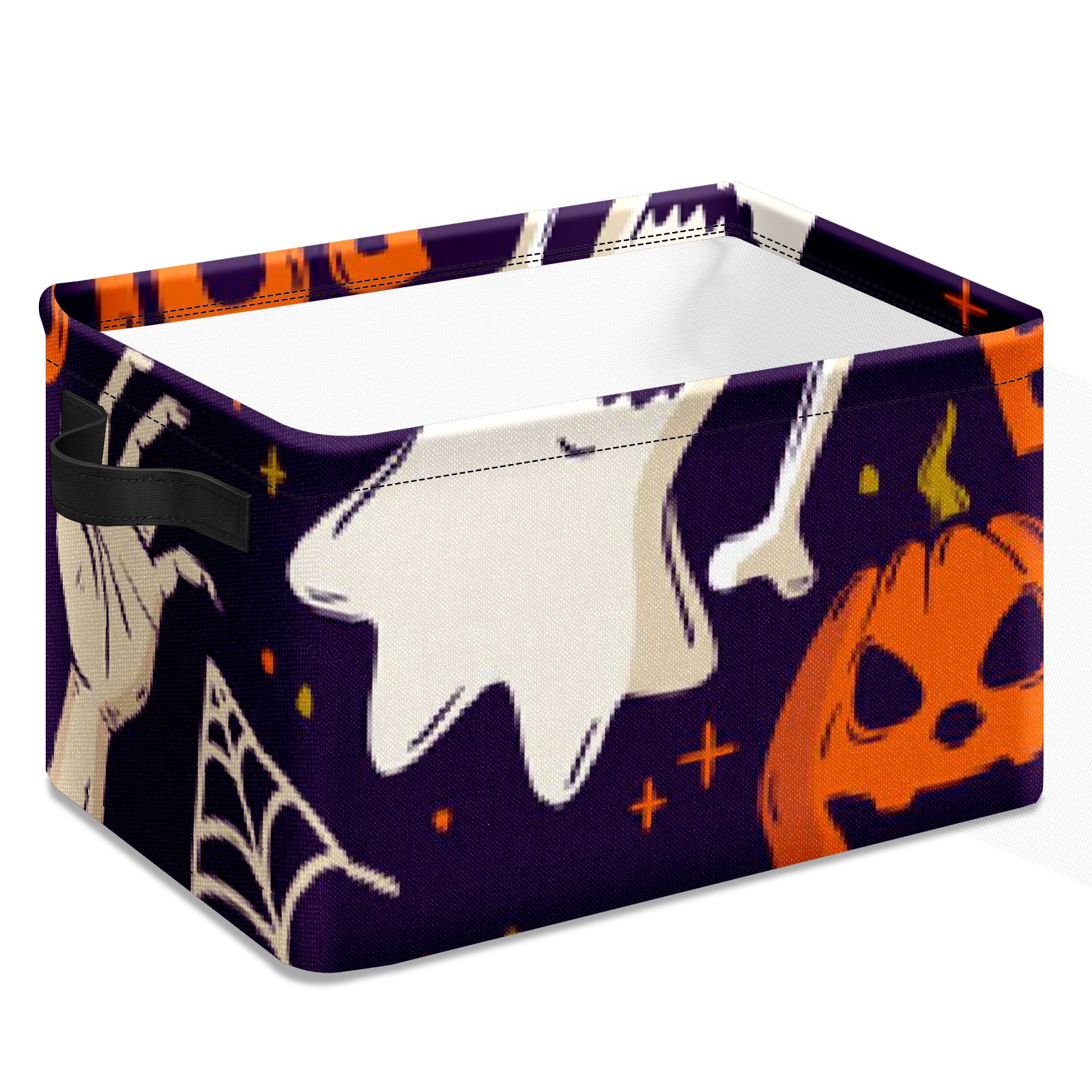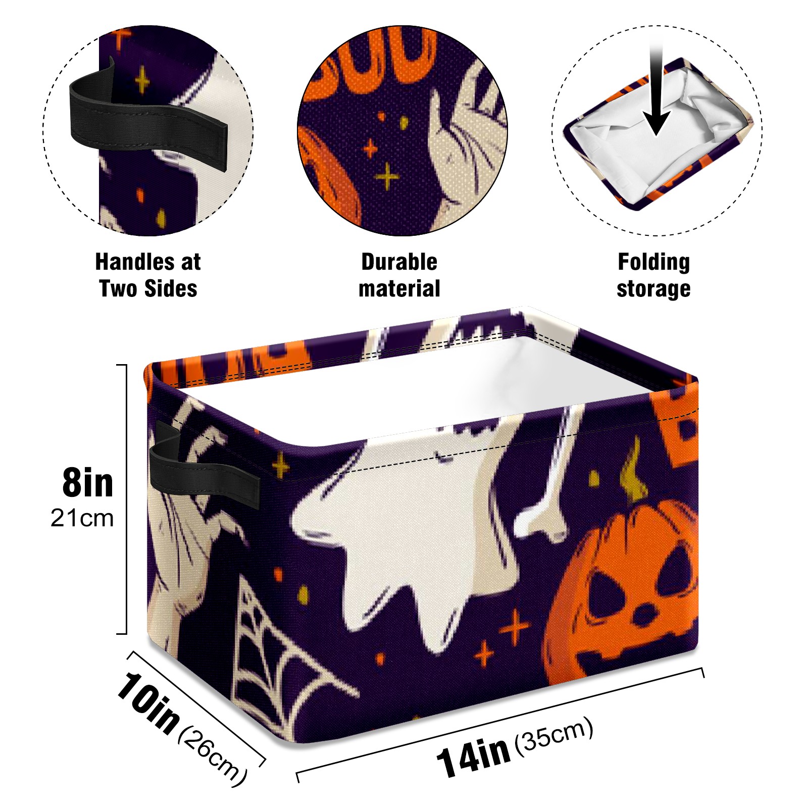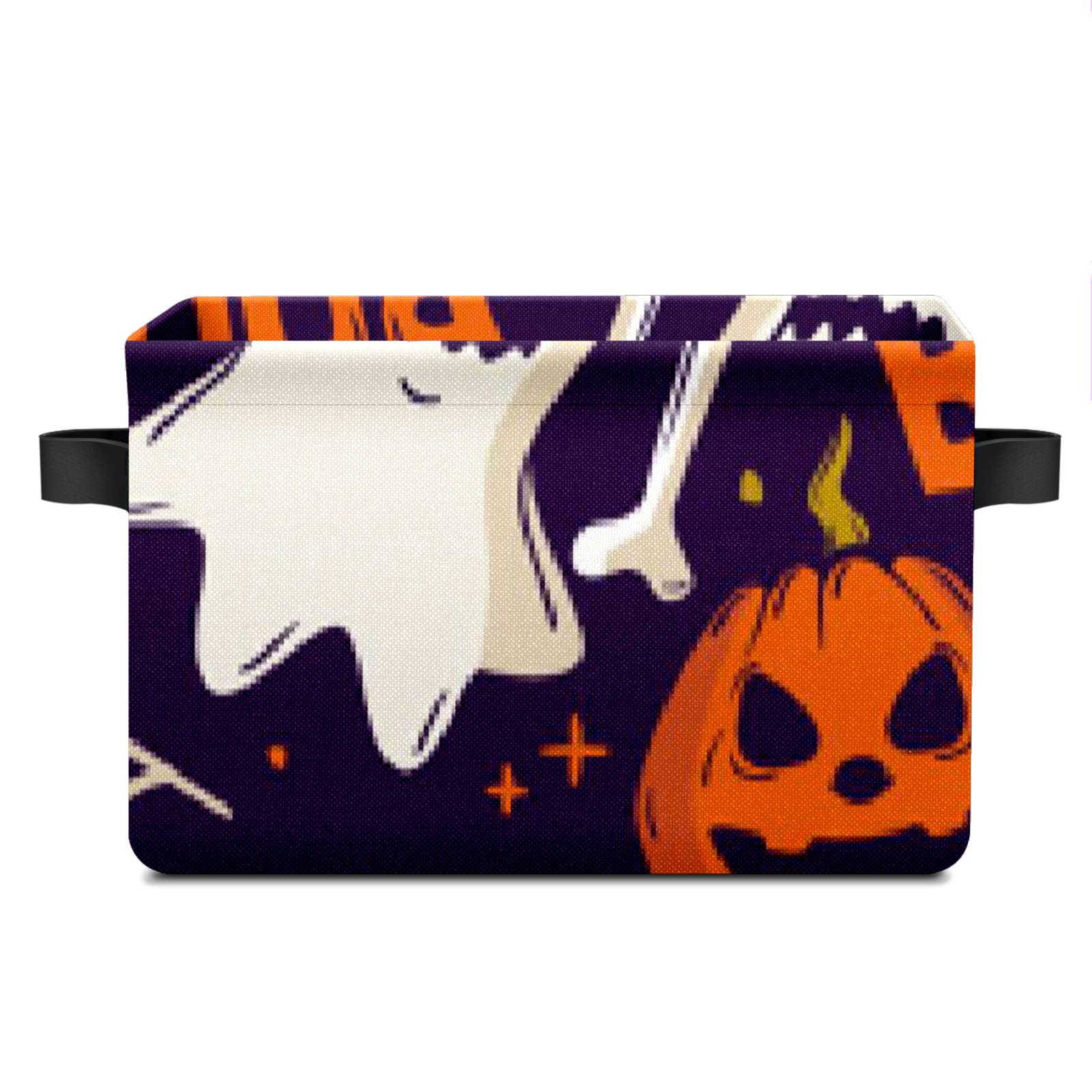 Collapsible 600D Oxford Storage Basket with Pumpkin Ghost - Metal Frame 10"x14"x8" Reinforced Handles, Multi-Purpose Organizer