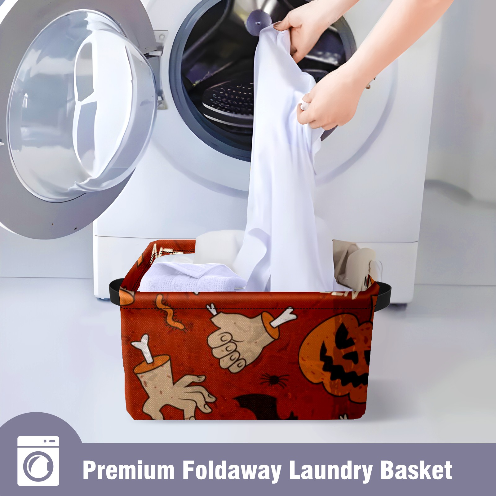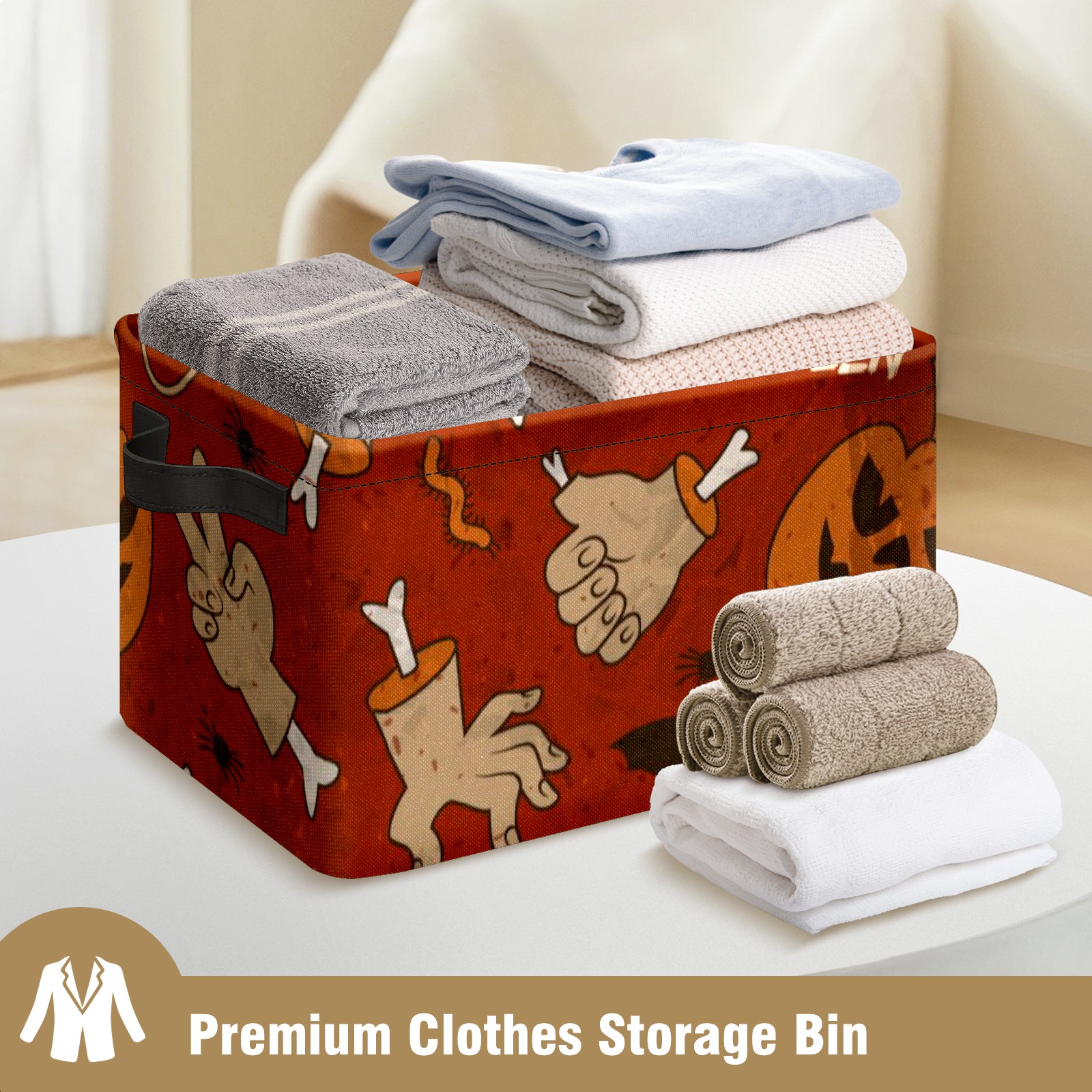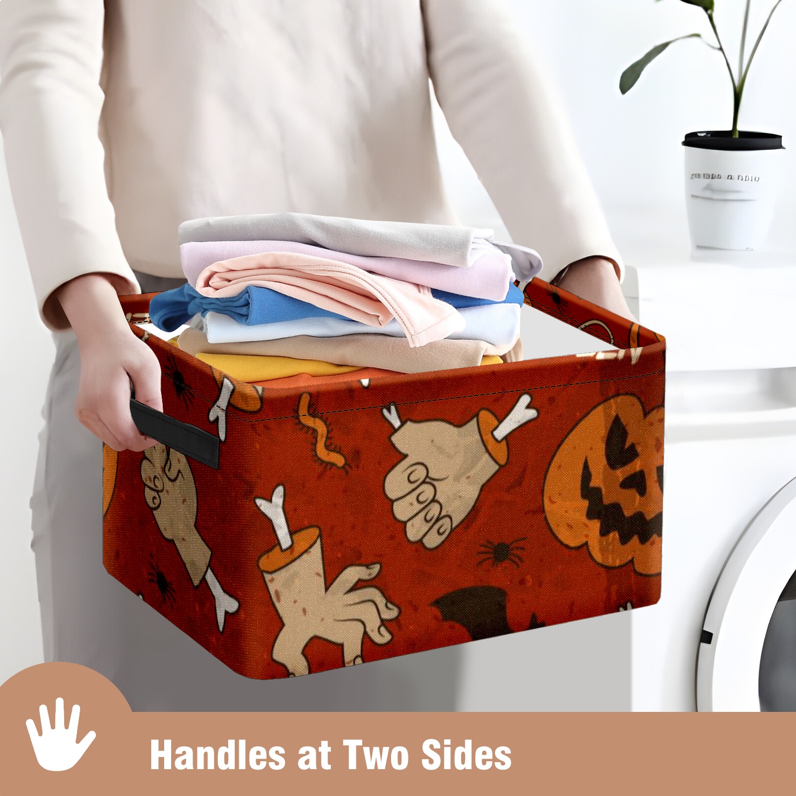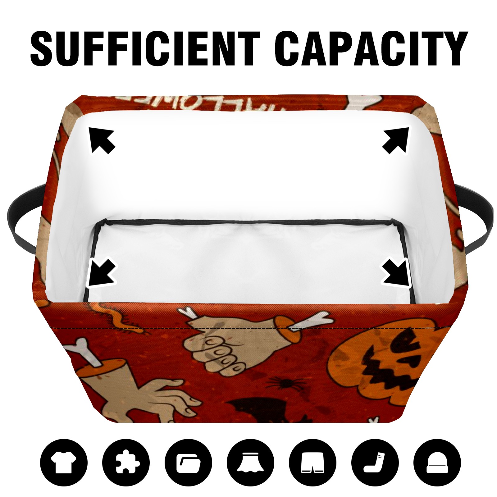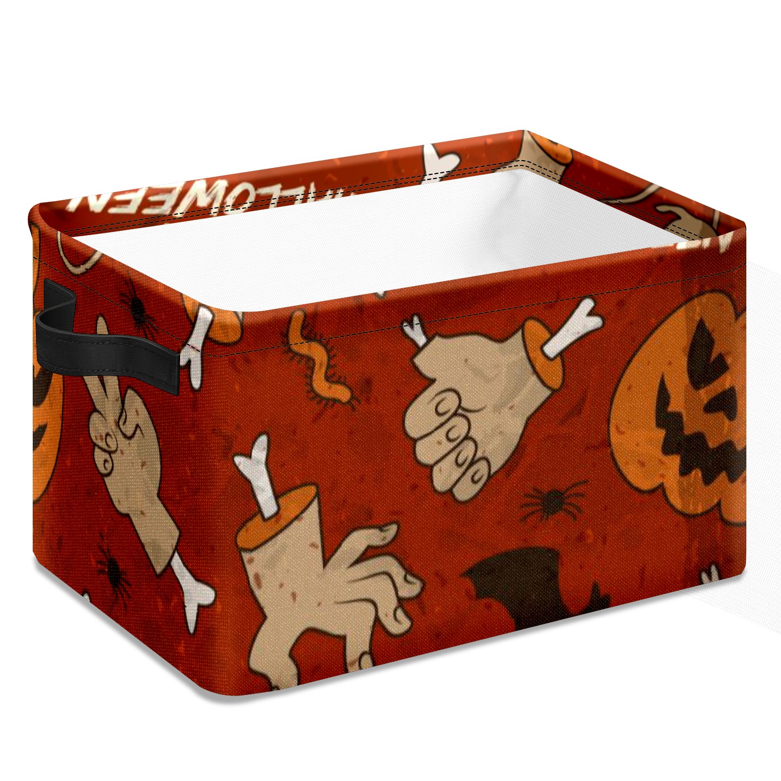 Collapsible 600D Oxford Storage Basket with Pumpkin - Metal Frame 10"x14"x8" Reinforced Handles, Multi-Purpose Organizer
