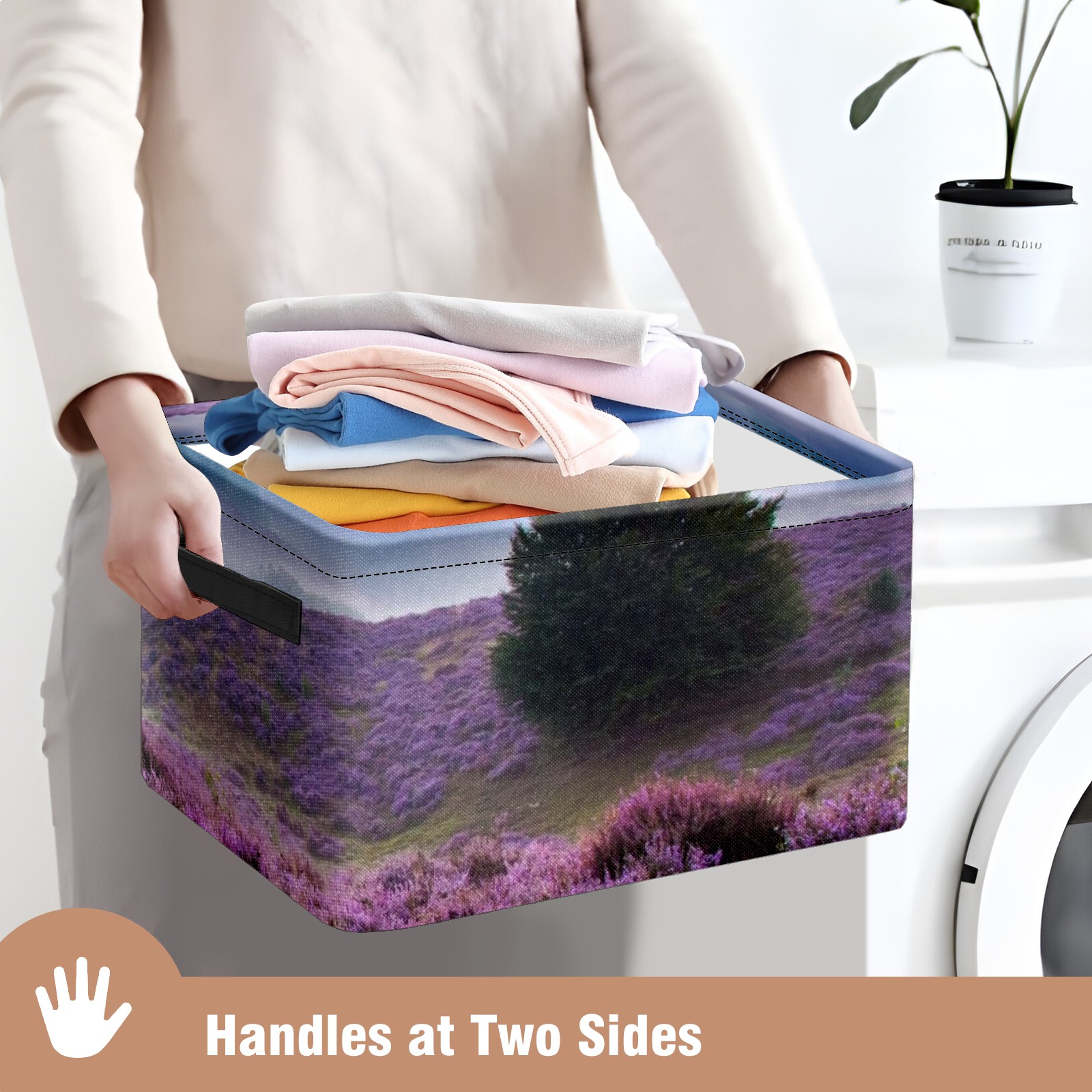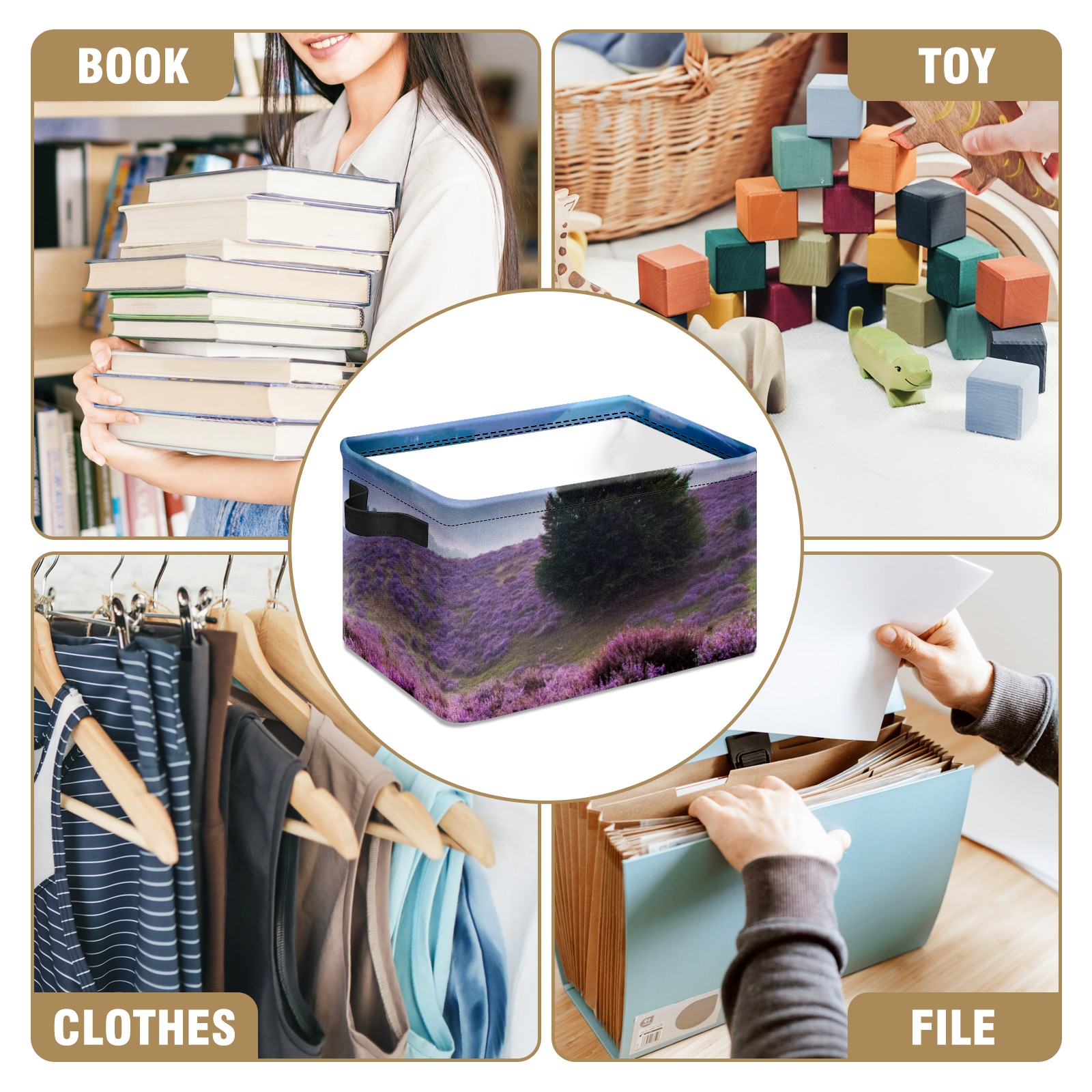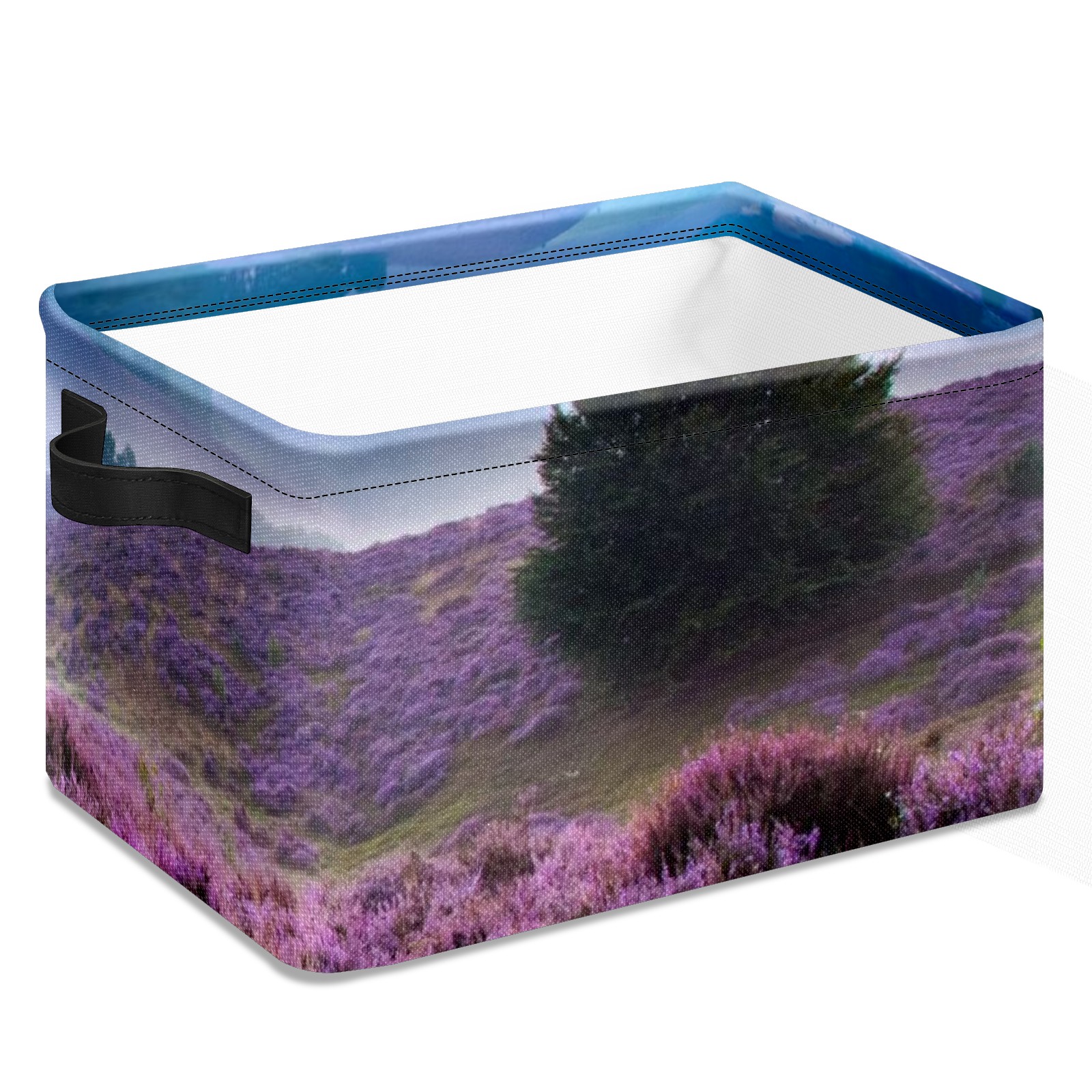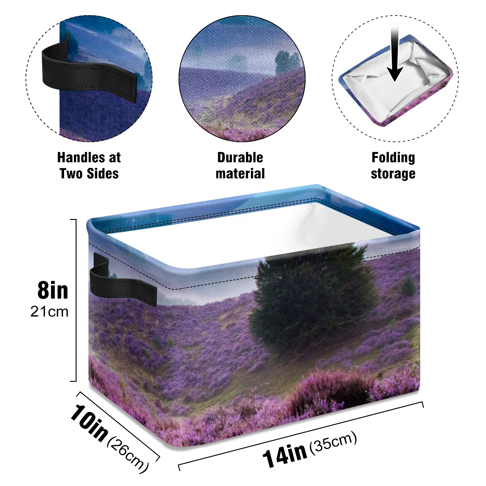 Collapsible 600D Oxford Storage Basket with Lavender Farm Field Purple Foggy Sunset - Metal Frame 10"x14"x8" Reinforced Handles, Multi-Purpose Organizer